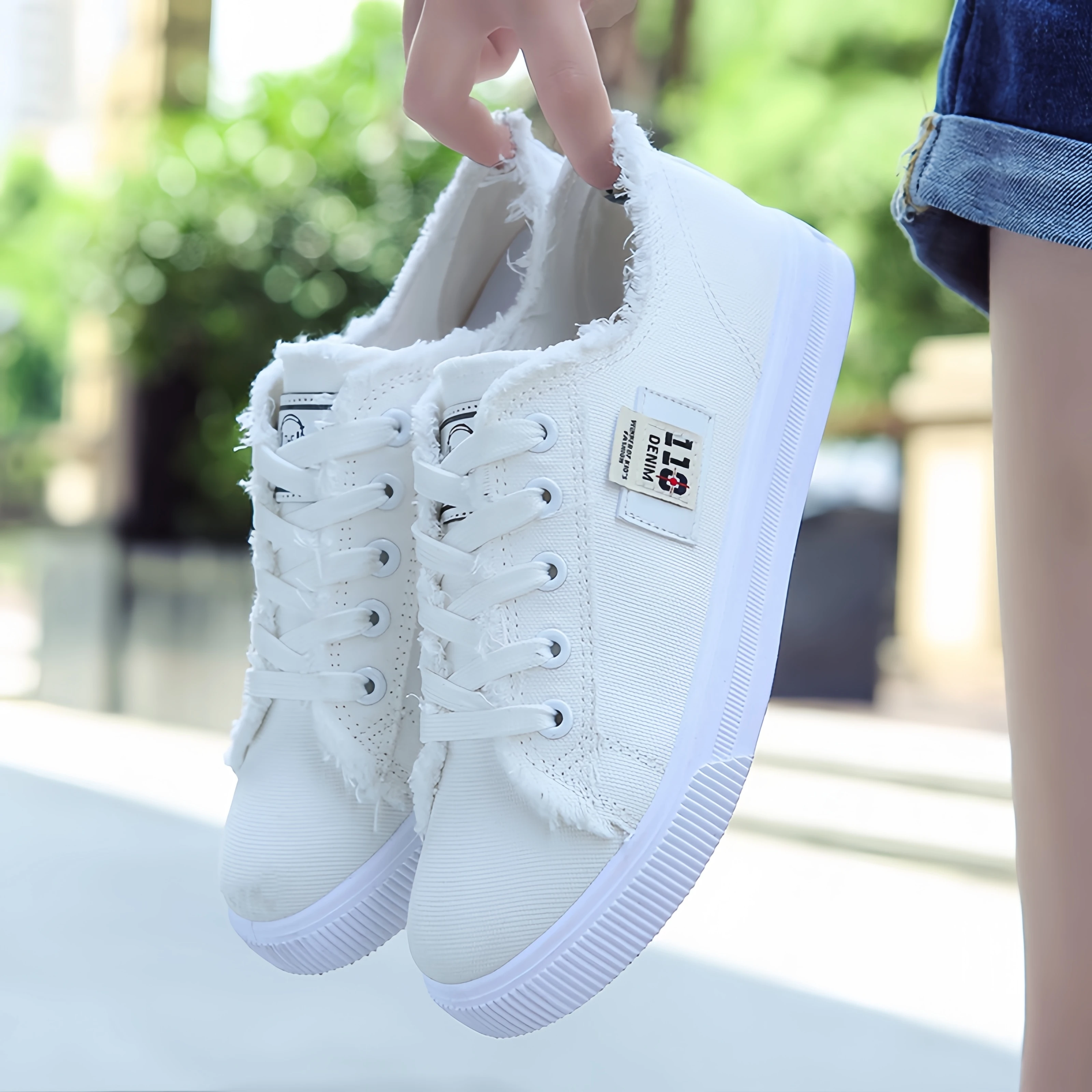 Custom Logo Canvas Trendy Shoes Women's Fashion Lace up White Black Canvas Sneakers Shoes for Ladies