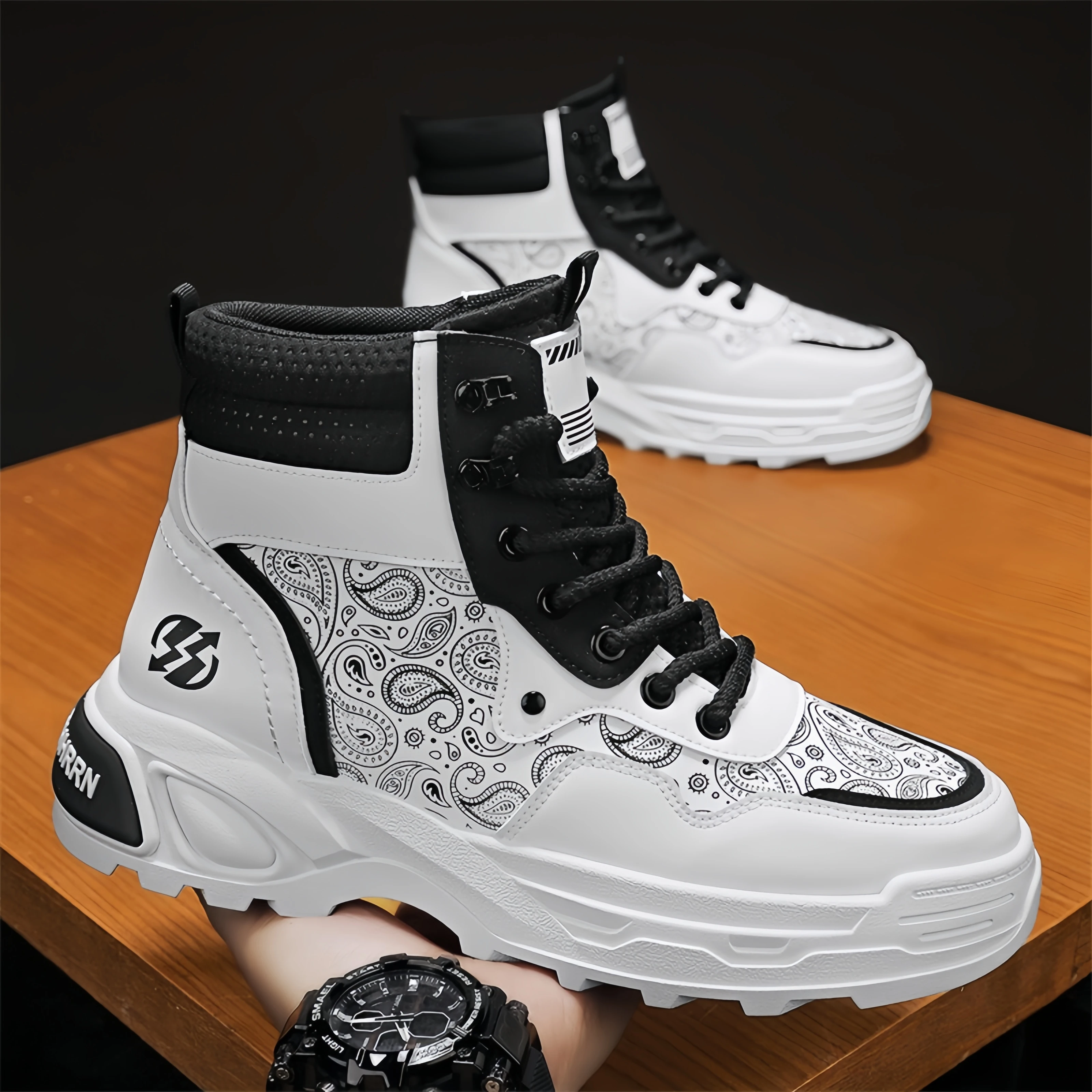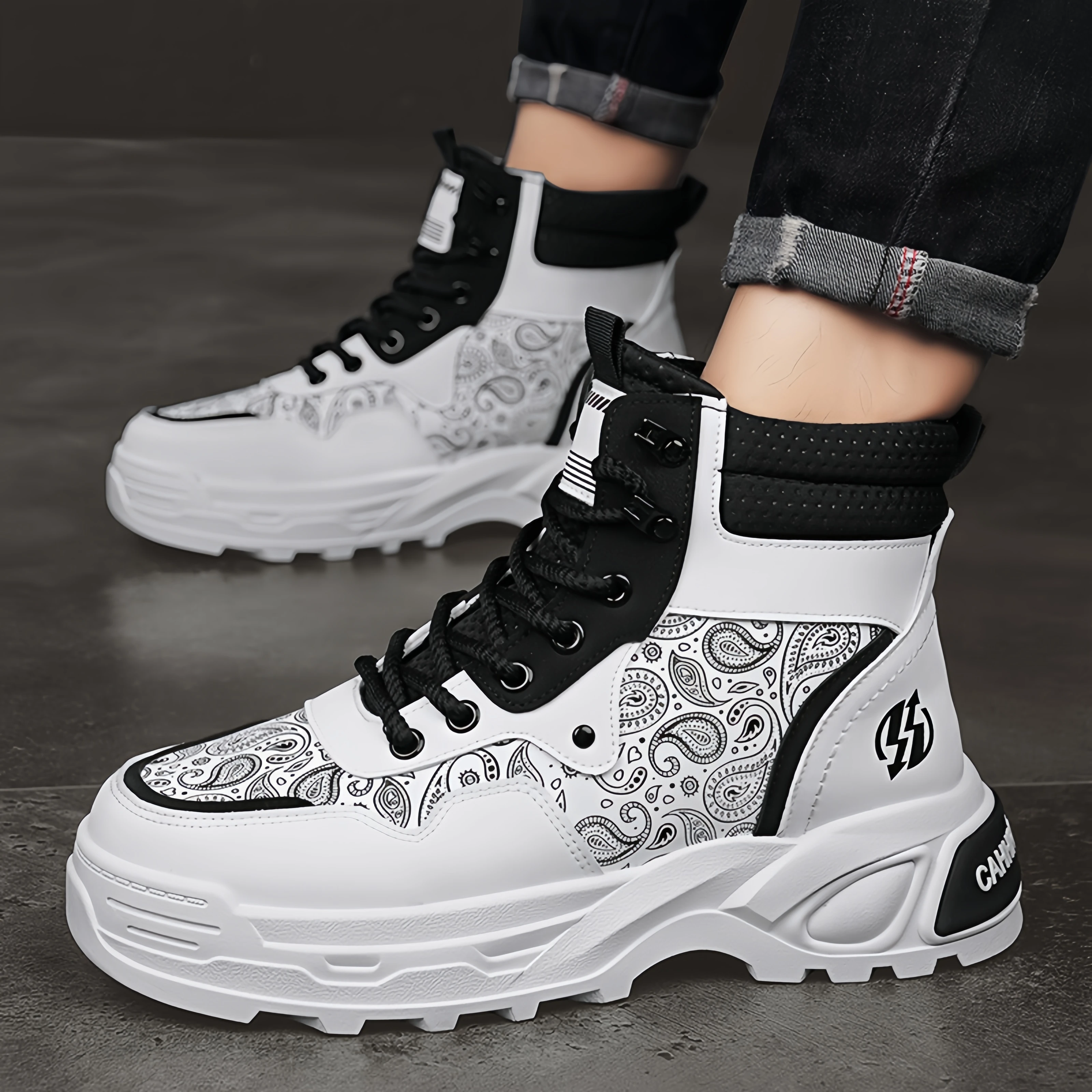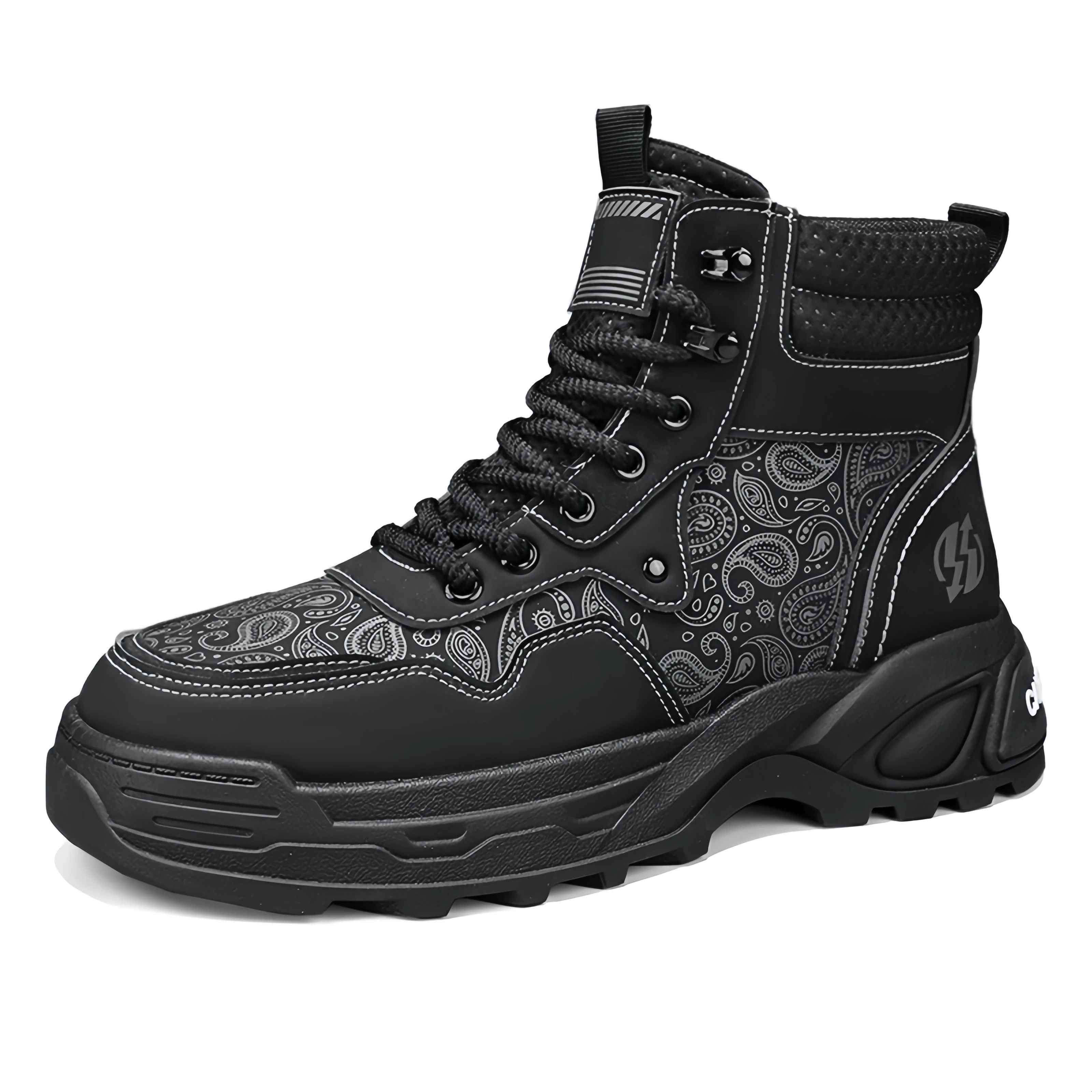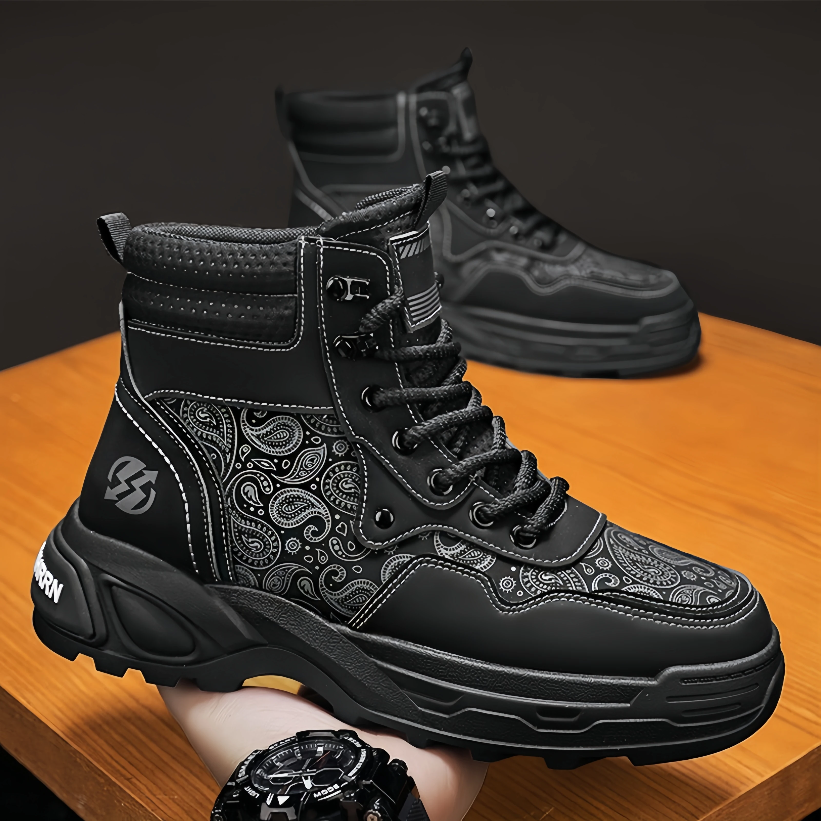 Men's Waterproof Canvas Cowboy Boots with Rubber Outsole Lace-Up Closure Round Toe-Black Workwear Motorcycle Casual Shoes