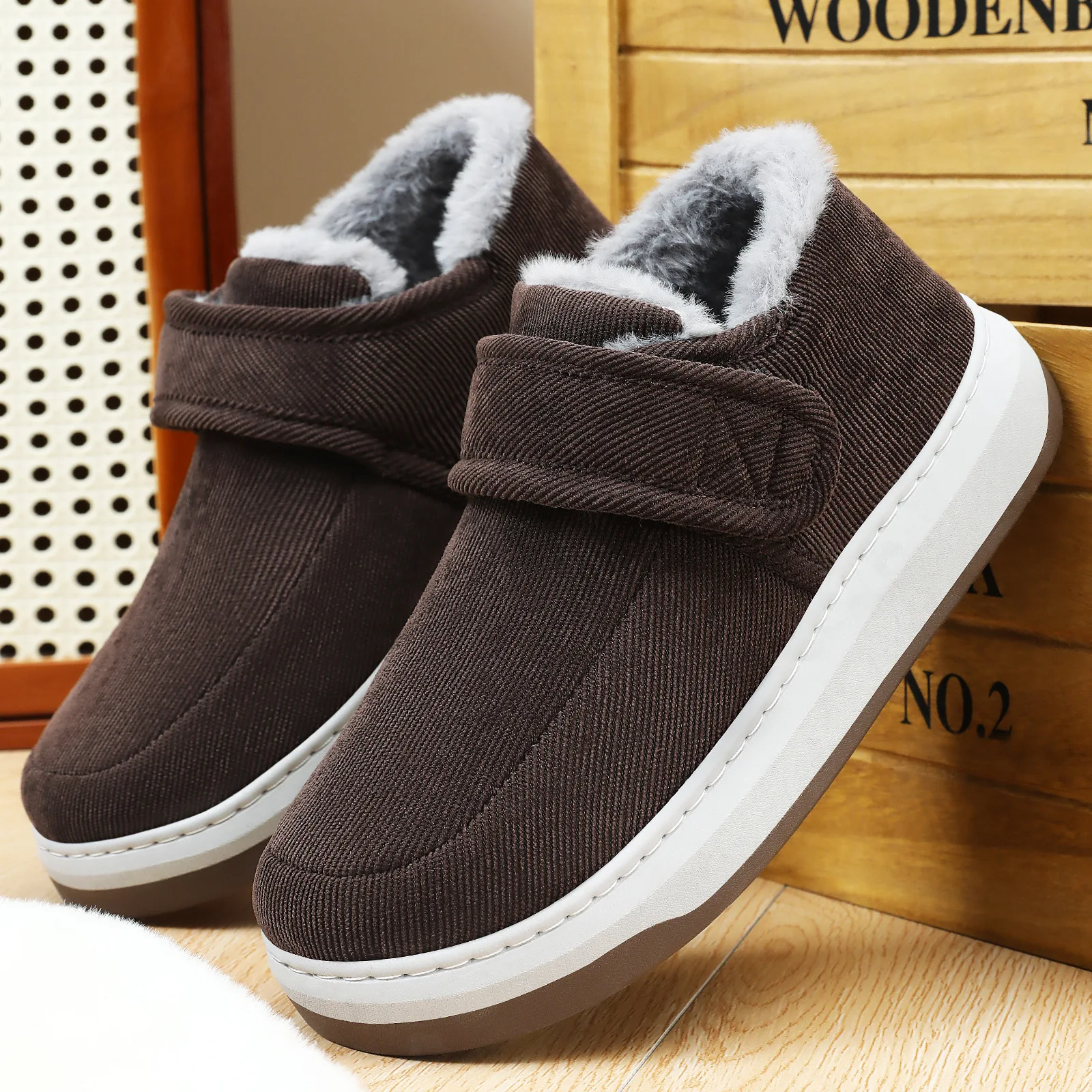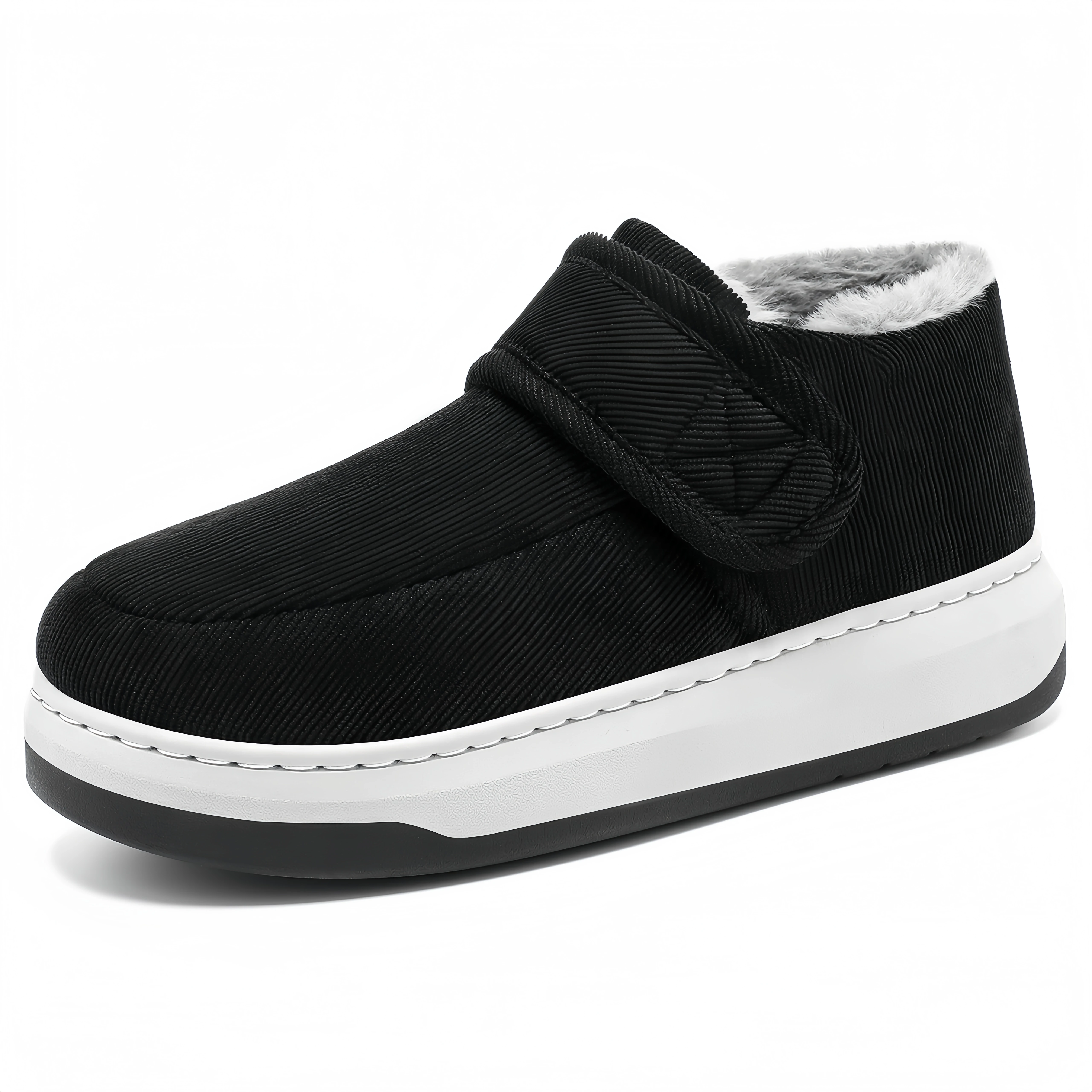 Fashion Elderly Non-slip Cotton slippers with Heels and Warm Mother Cotton Shoes with Hook and Loop Fastener