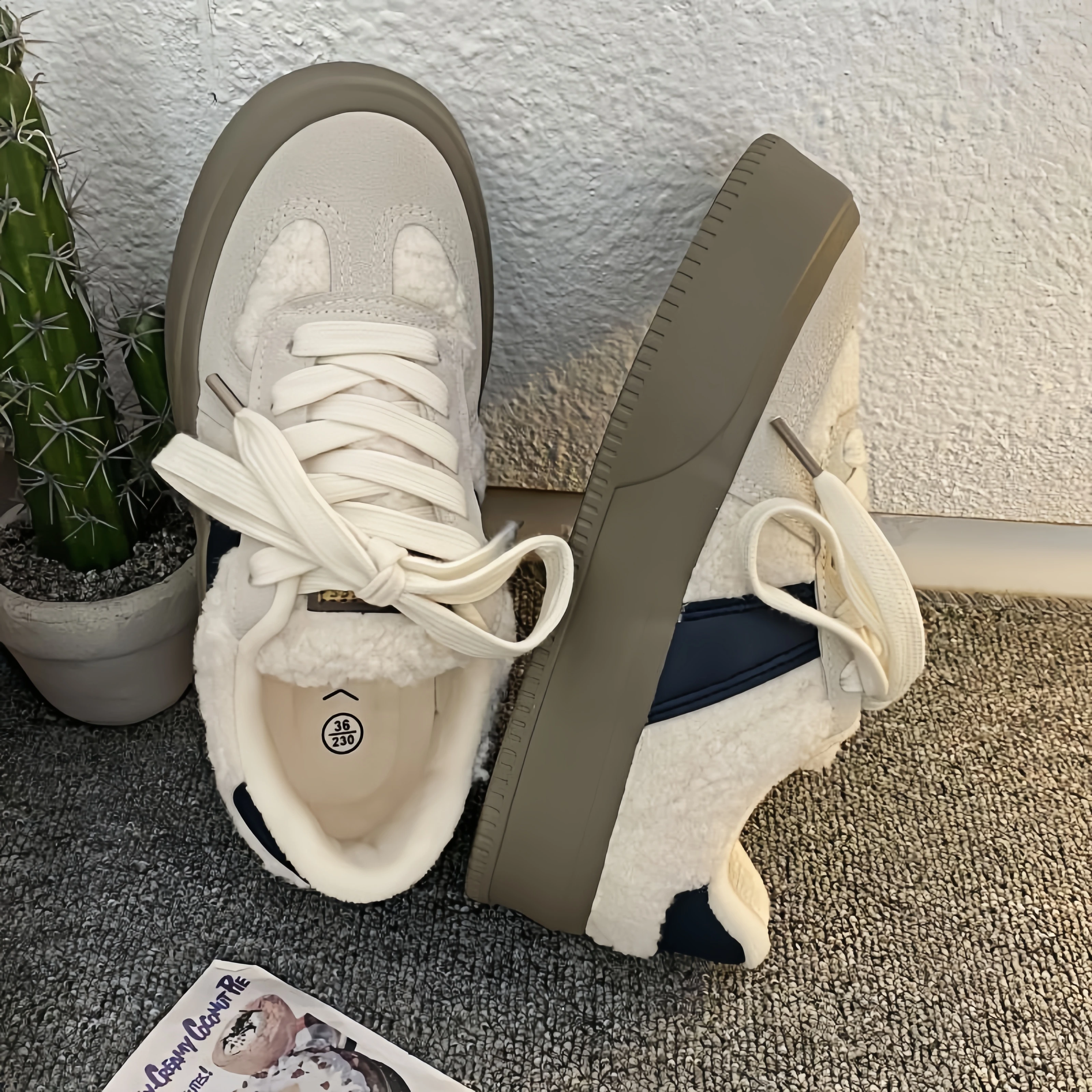 Women 2026 Winter New Thick Bottom Warm Plus Velvet Fur Shoes Outside Wear Cotton Shoes Leisure Hundred Board Shoes