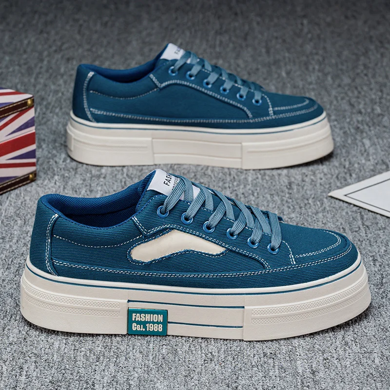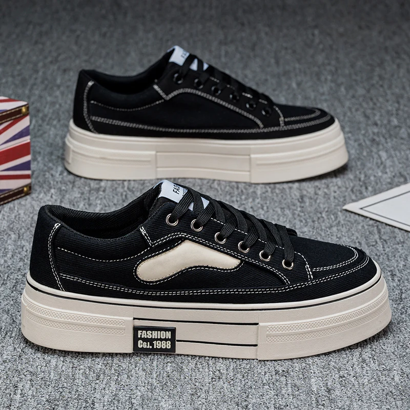 Trendy Men's Vulcanized Canvas Sneaker with Rubber Sole Comfortable and Breathable Flat Casual Walking Style