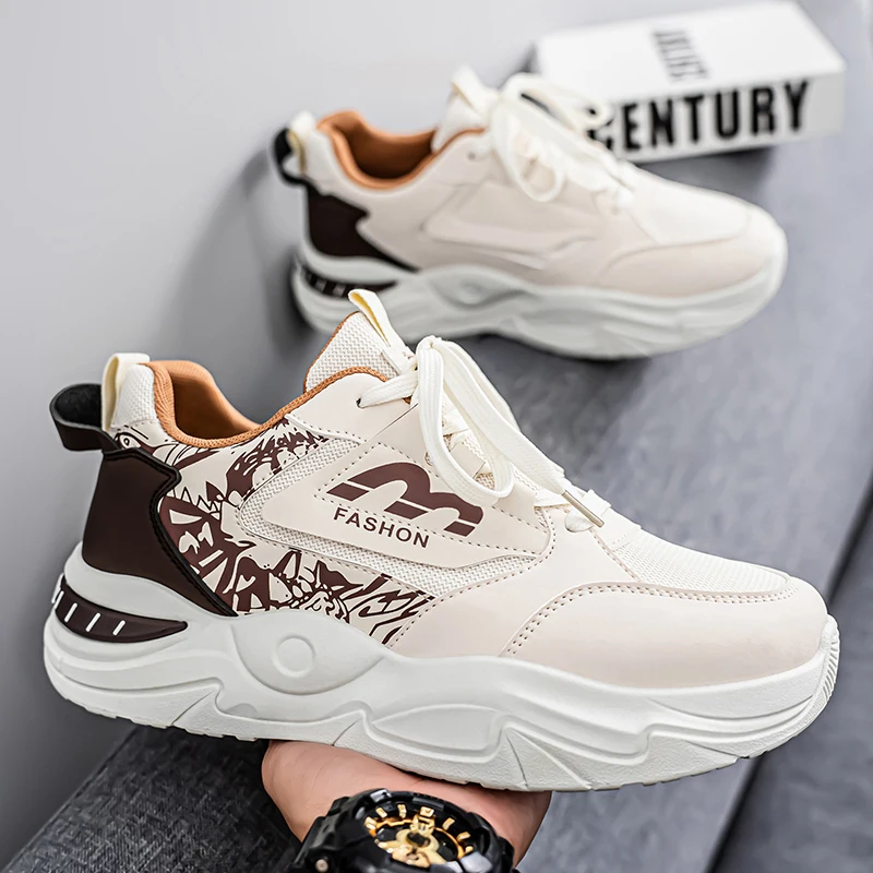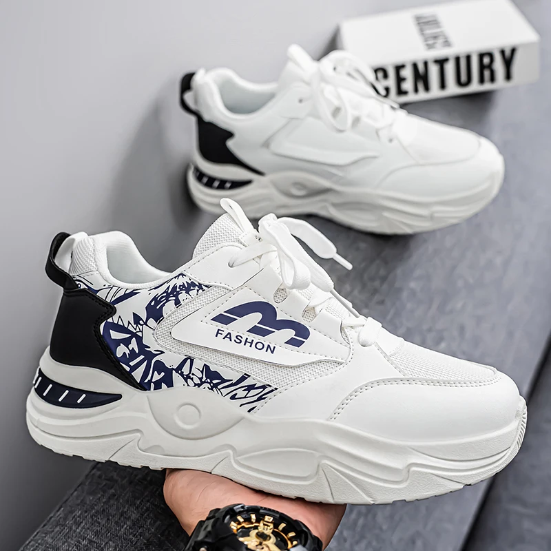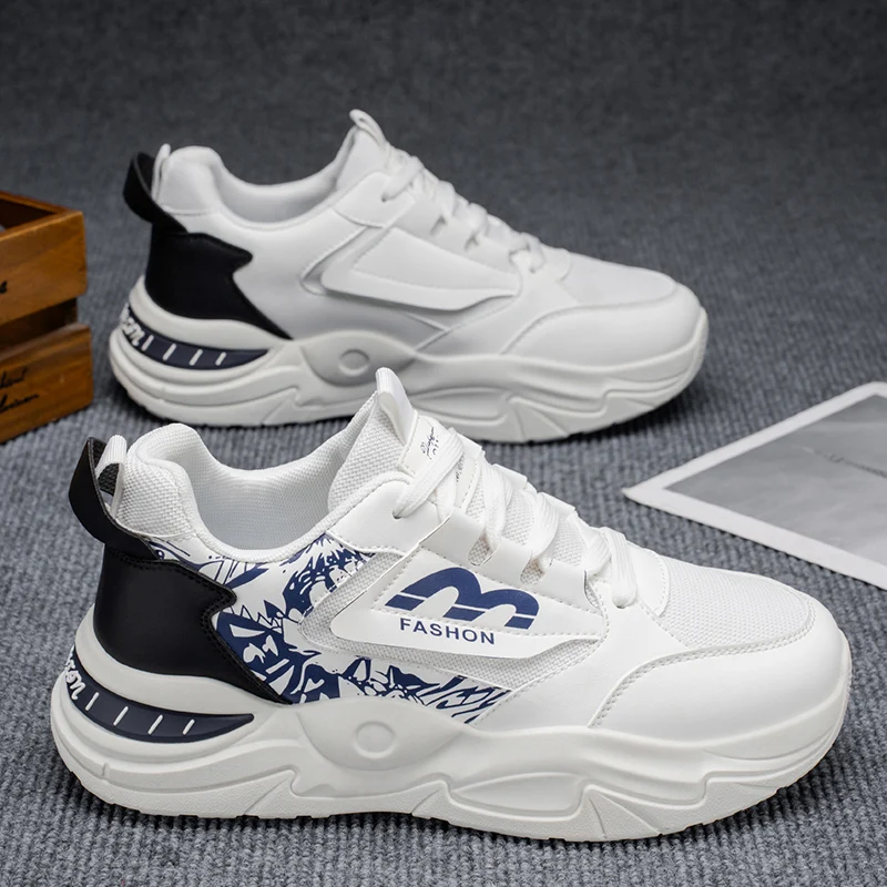 Men's Summer White Breathable Mesh Design, Fashionable Thick-soled Casual Dad Shoes, Lace-up Closed Sports Shoes, Casual Shoes