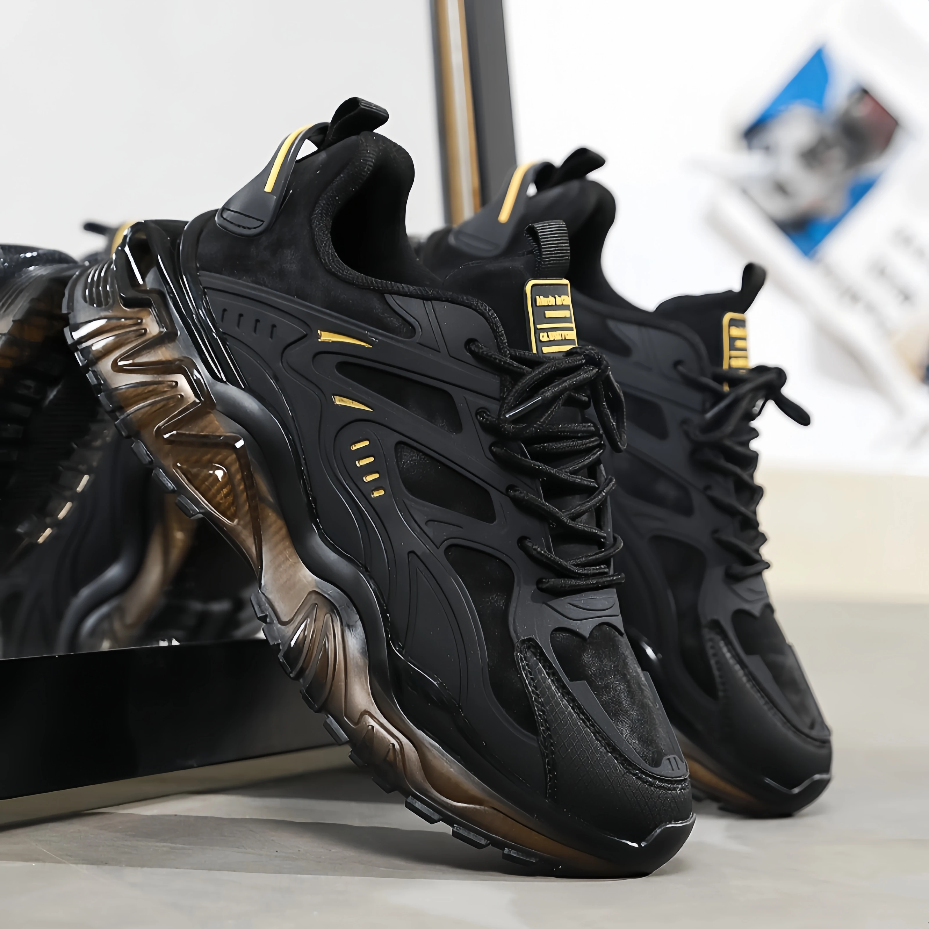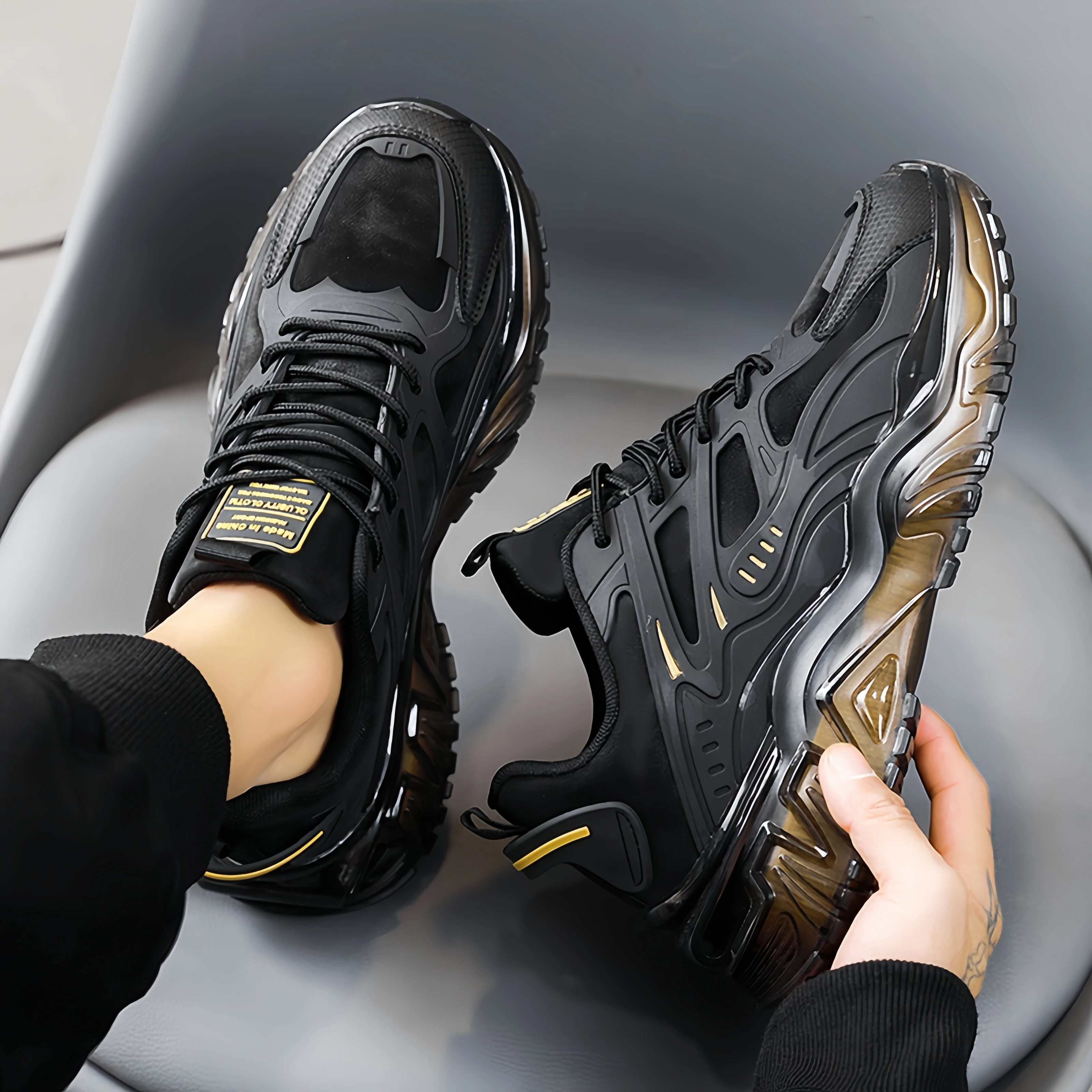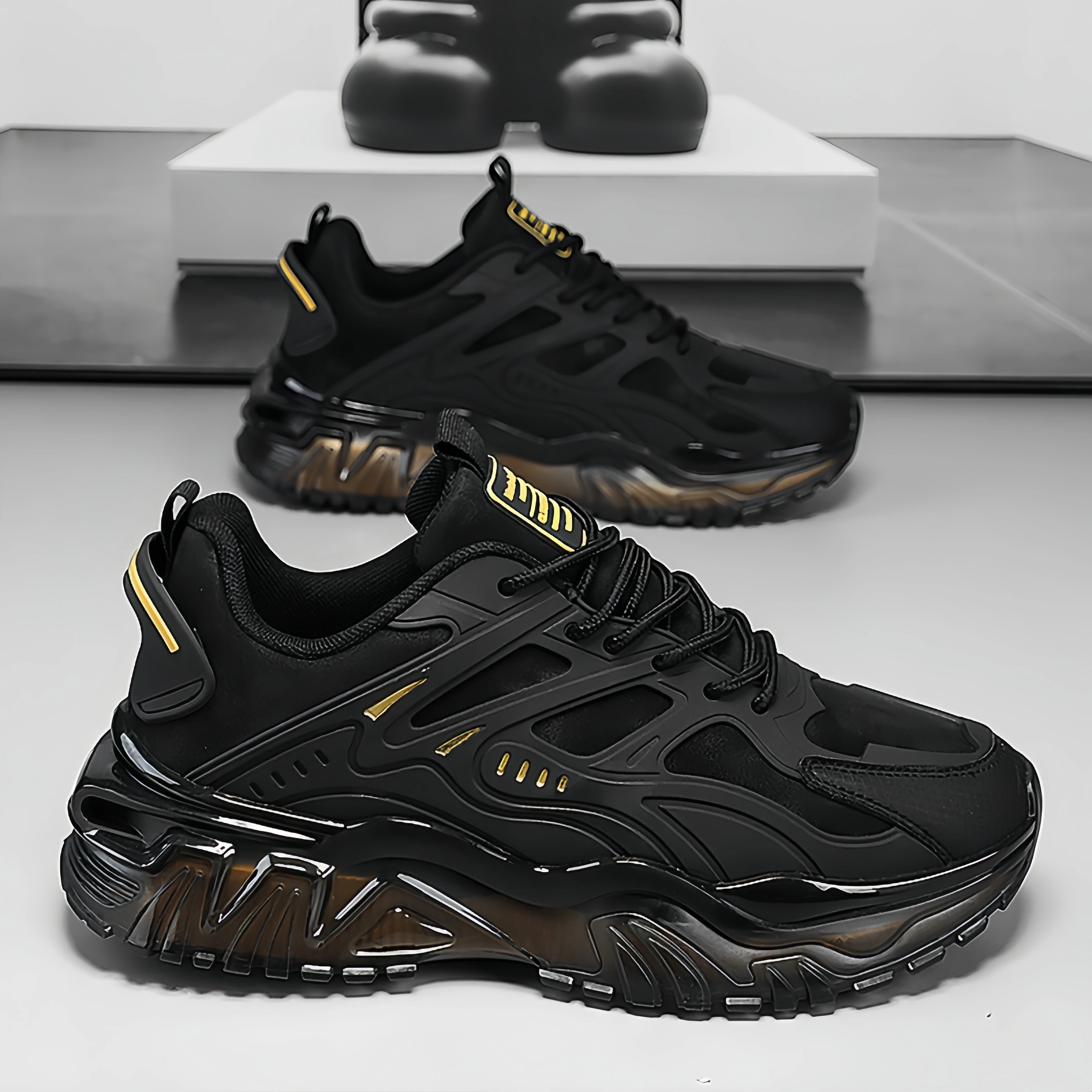 Autumn New Fashion Lace-Up Casual Running Shoes Shock Absorption Height Increasing Youth Black Warrior Thick Sole