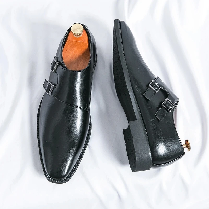 Classic Versatile Mens Leather Casual Shoes Office Business Shoes Pointed Low Heel Men's Formal Dress Shoes Big Size 38-46