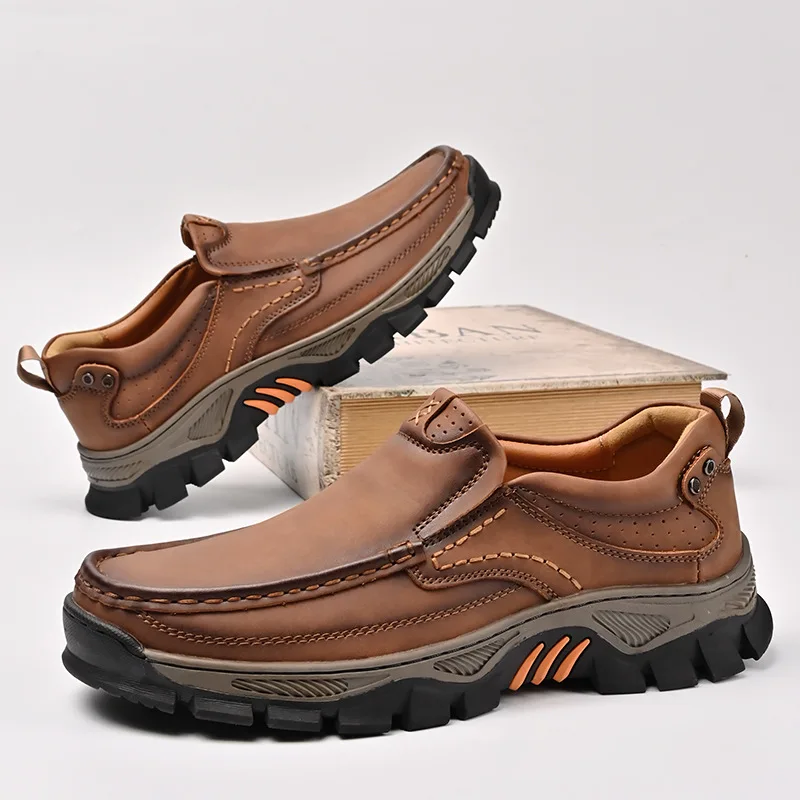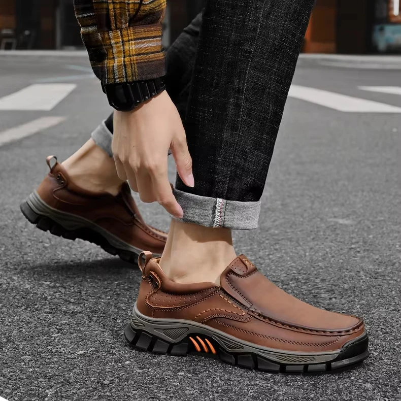 Genuine Leather Men Dress Shoes Casual Outdoor Slip on Loafers Italian Leather Shoes Flats Non-Slip Moccasins Luxury Shoes
