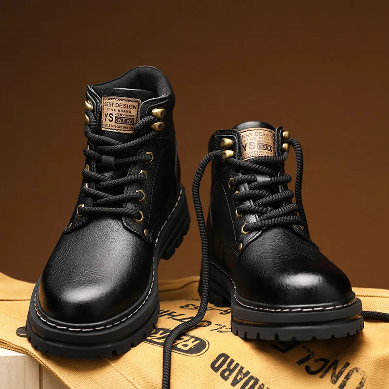 2026 Top Quality Men's Luxury Height Increase Chunky Genuine Leather Boots Hiking Shoes and Safety Boots for Men Waterproof