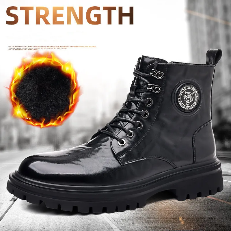 2026 Men's Snow Winter Leather Lace Fur Boots High-top Shoes Chelsea Toe Layer Cowhide Trendy Mens Black Brown Boots Fashion