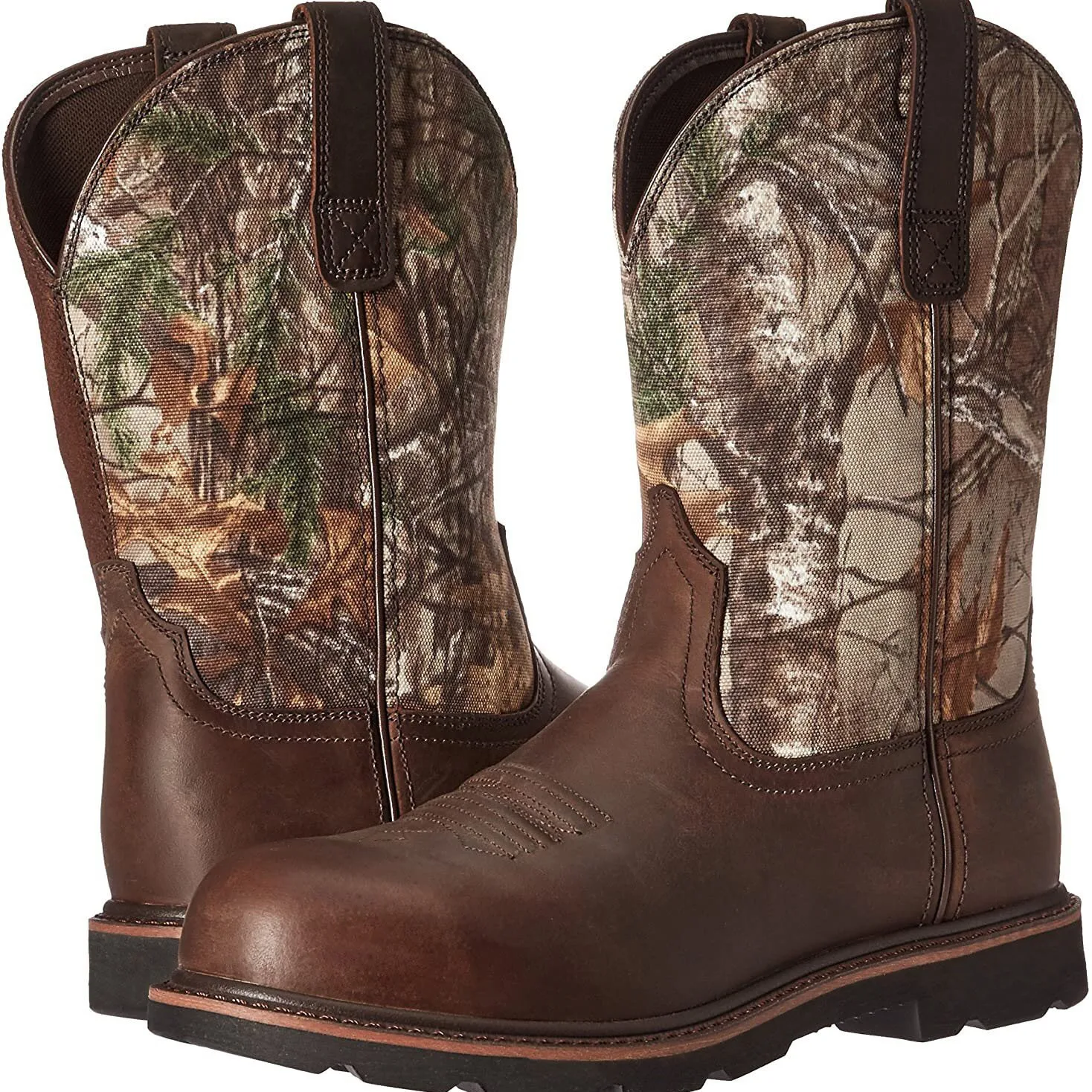 Retro Brown Men's Western Boots Quality Embroidery Cowboy Boots Man Comfort Slip-On Leather High Boot for Men Botas Para Hombre