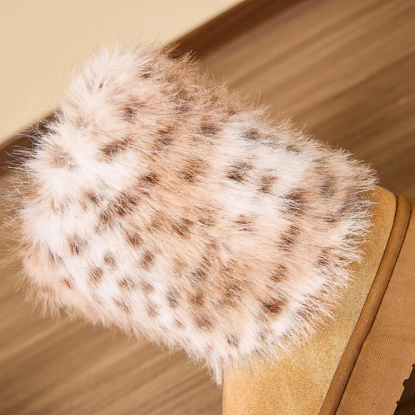 2026 Platform Ladies Snow Boots Women Cow Suede Turned-over Edge Leopard Print Faux Fur Female Warm Winter Shoes Handmade