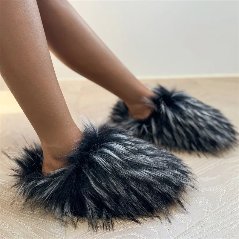 Women Men's Sheepskin Winter Raccoon Real Fashion House Mink Fluffy Warm Plush Slides Luxury Furry Faux Fur Designer Slippers