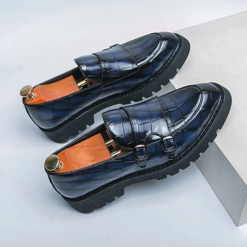 Fashion Mens Loafers Thick Sole Big Toe Trend Party Office Shoes Men's Genuine Leather Casual Dress Shoes Oxfords Italian