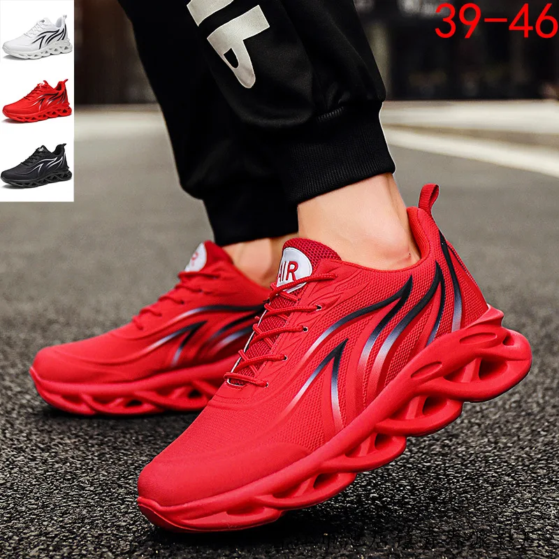 Men's Red Flame Printed Sneakers Flying Weave Sports Shoes Comfortable Running Shoes Outdoor Men Athletic Shoes