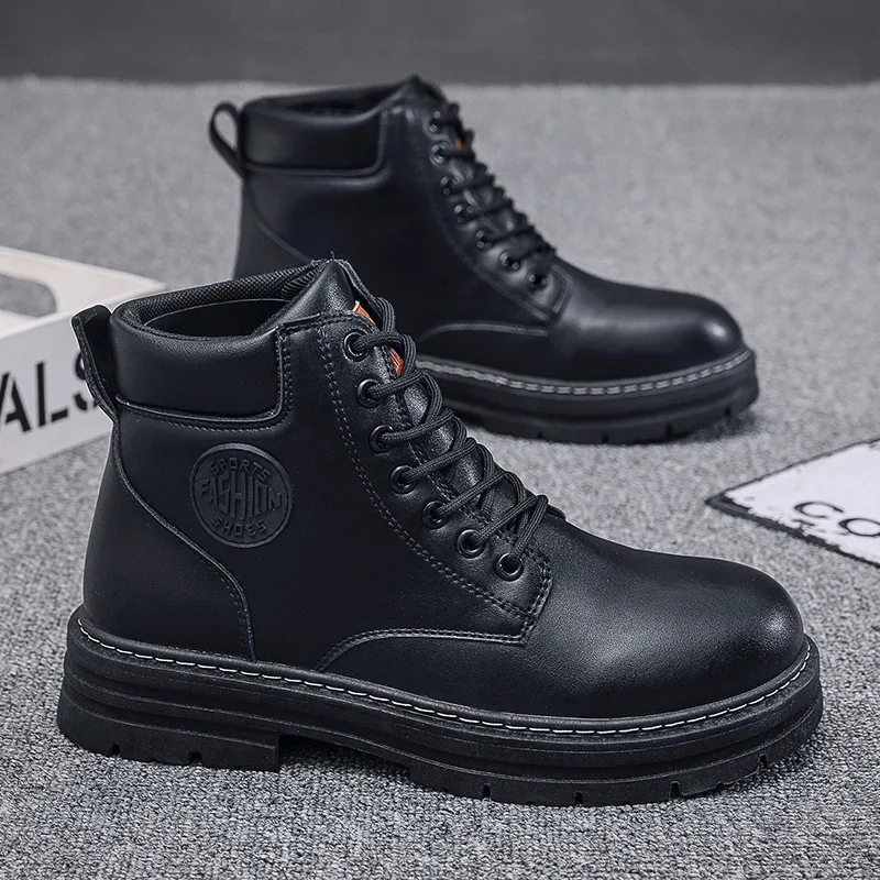 Men's Trendy High Quality Mountain Work Ankle Boots for Autumn Winter Non-Slip Cotton Tooling Safety Shoes with Lace-Up Closure