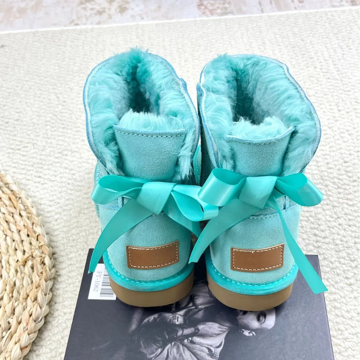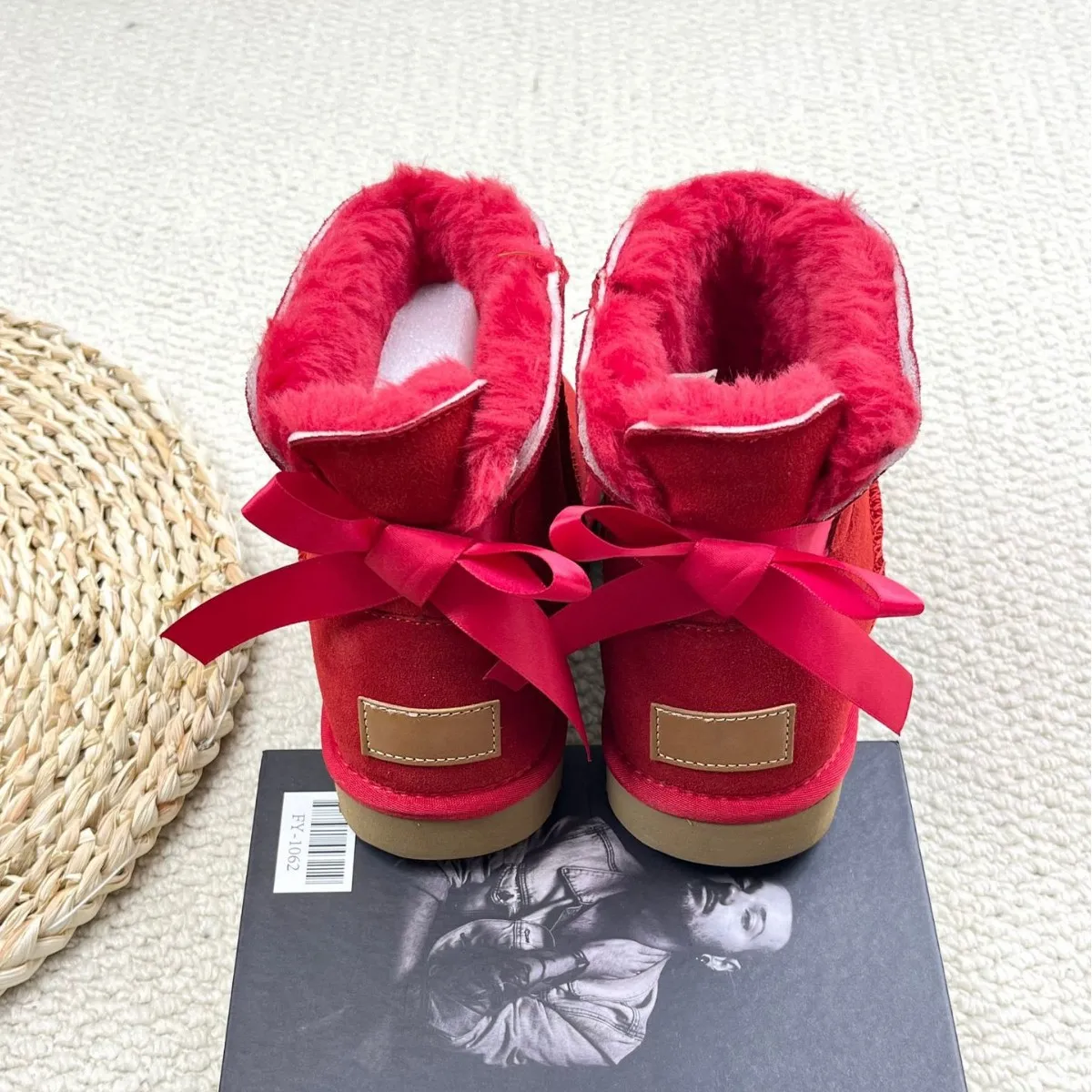 Plus Size Women's Designer Ribbon Winter Fur Snow Boots Fashion Black Pink Navy Chunky Comfortable Warm Bow-knot Shoes Boot