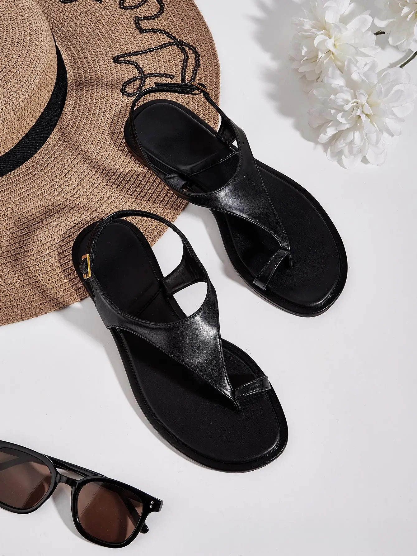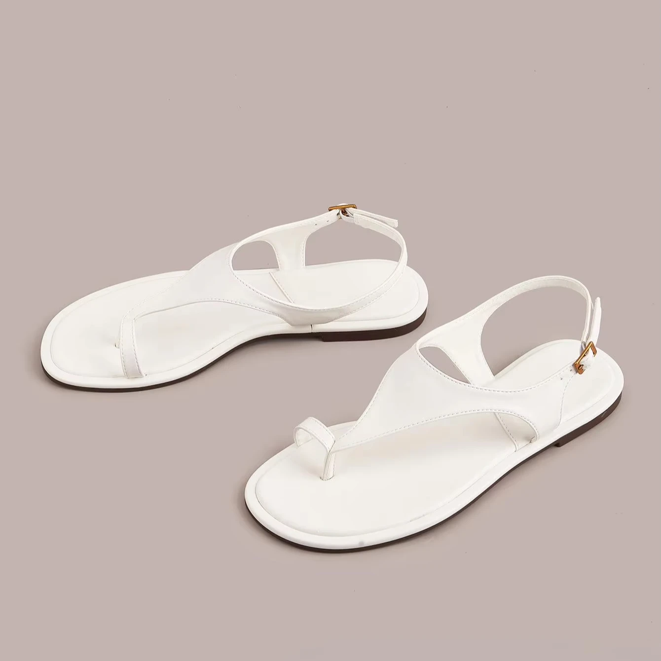 BUSY GIRL CXX124 Lighted Flat Sandals Minimalist White Shoes Women Sandals Slingback Strap Simple & Versatile for Summer