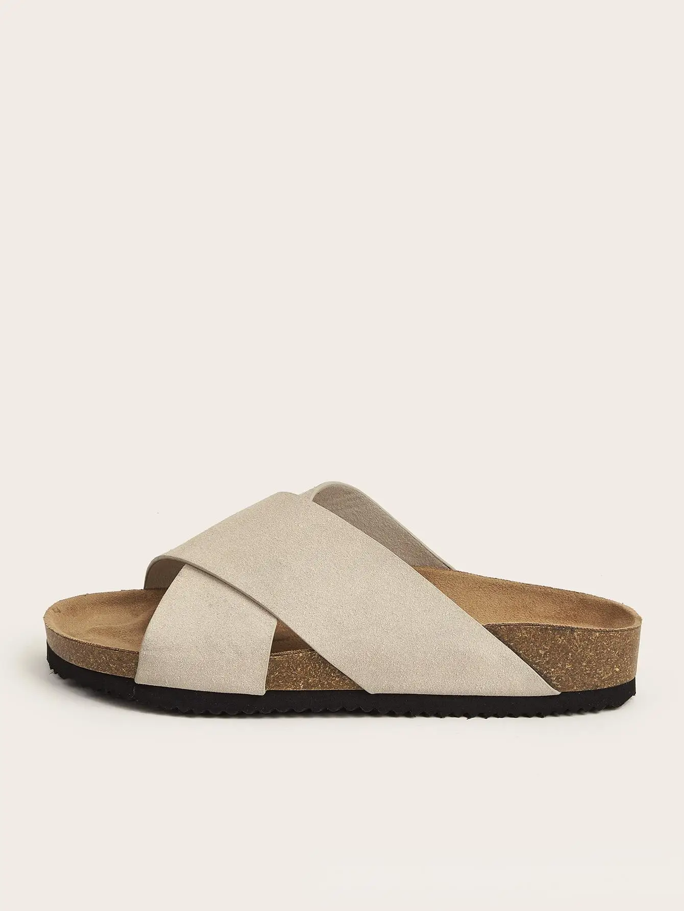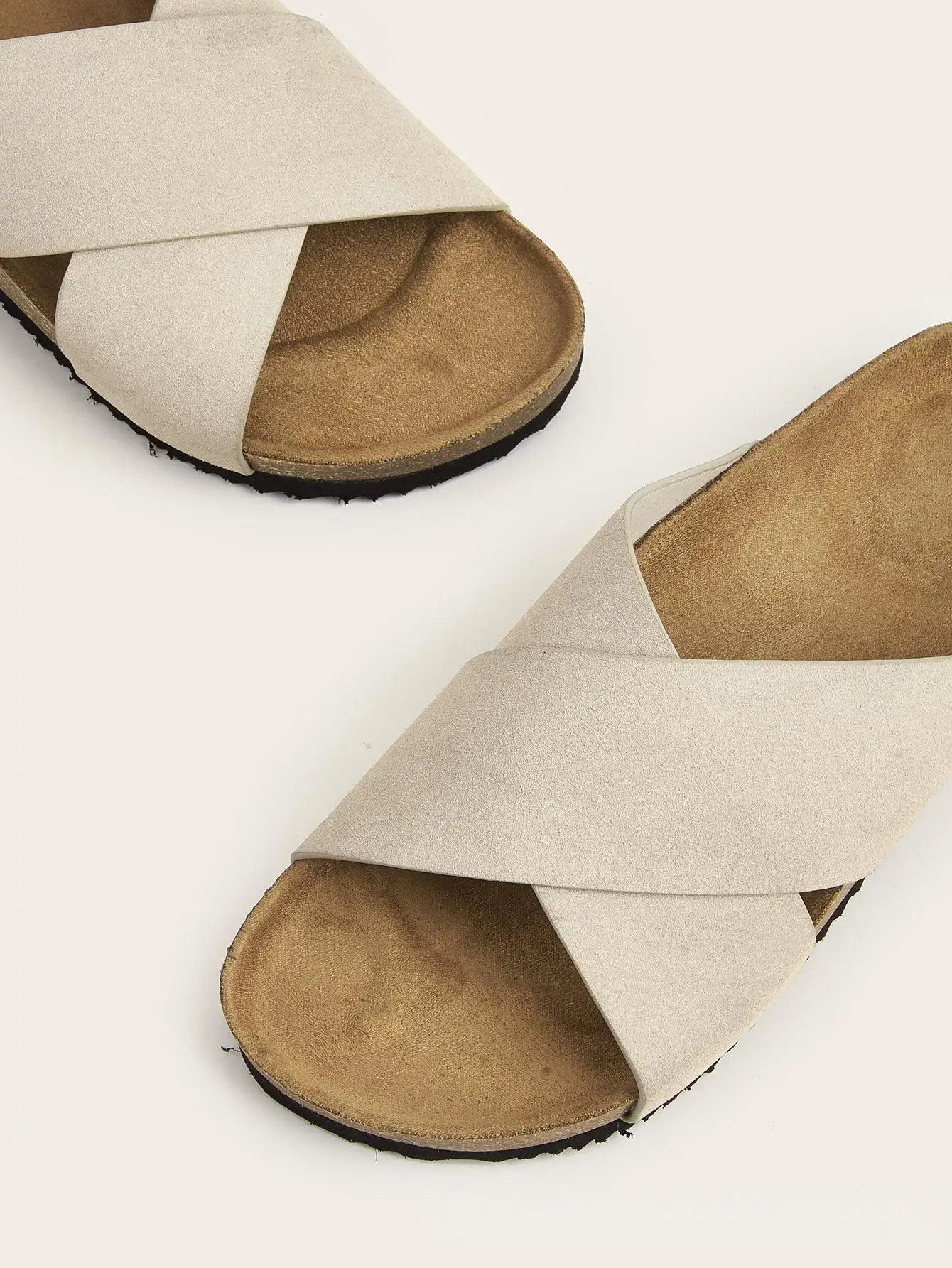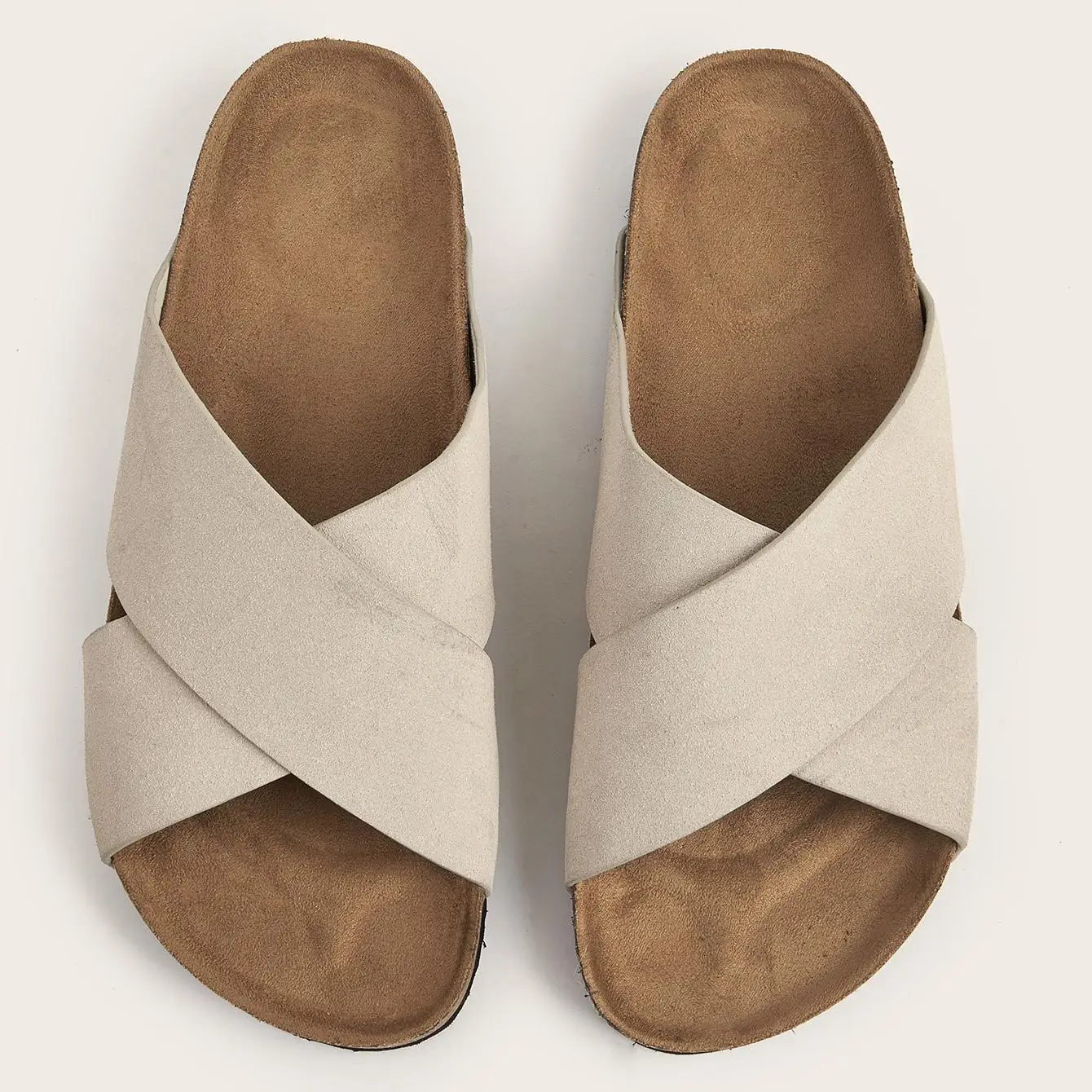 BUSY GIRL CXX142 Women's Flat Sandals Beige Cross Over Slide Sandals for Women Smooth Suede Slip on Slippers Ladies Outdoor