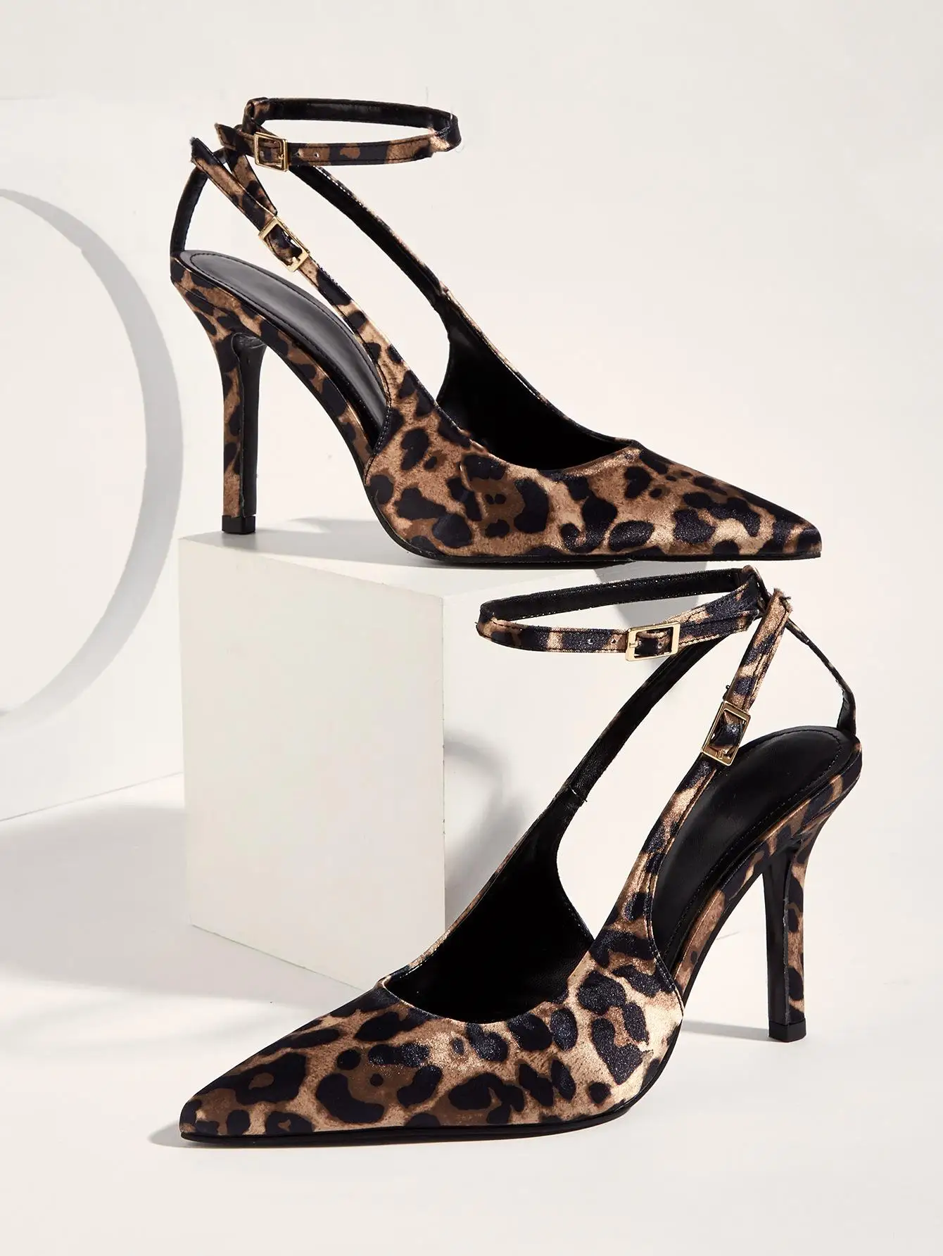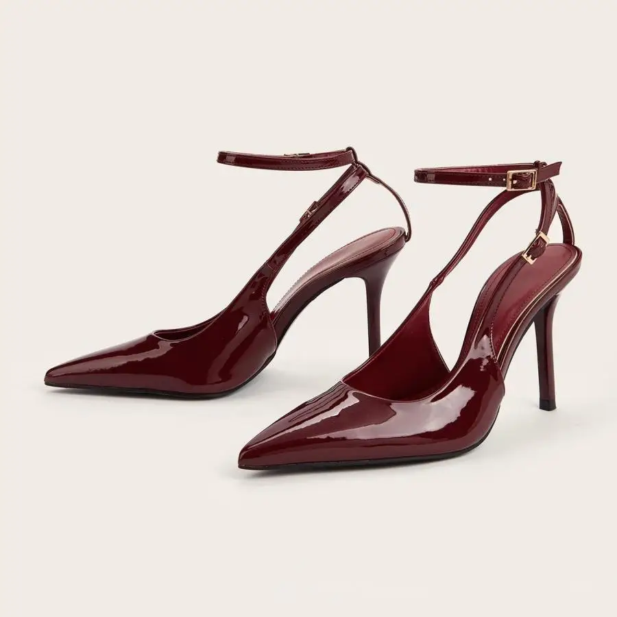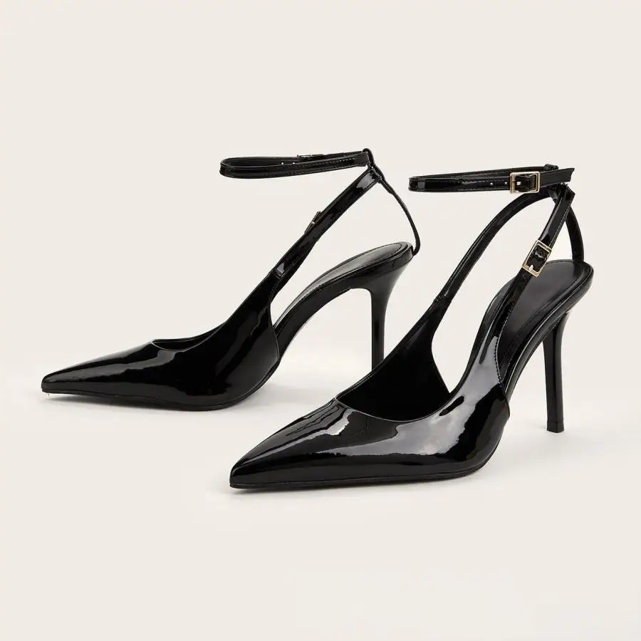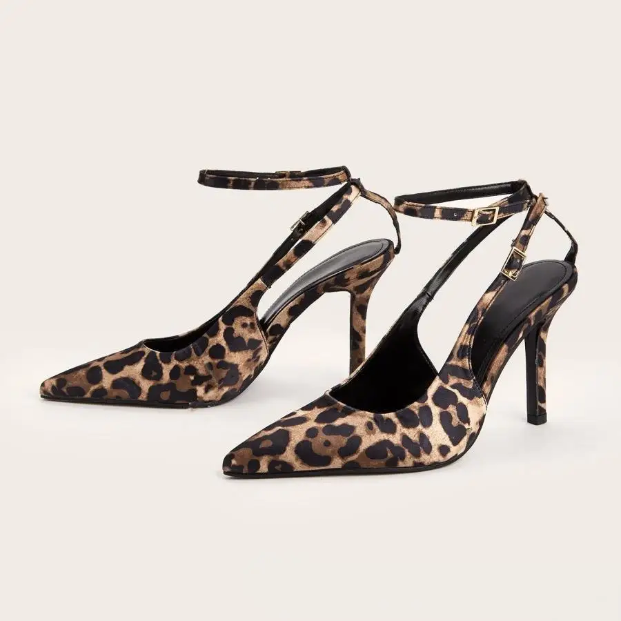 BUSY GIRL CXX192 Summer New Elegant Temperament Thin Strap High Heels Leopard Print Patent Leather Pointed Closed Toe Sandals