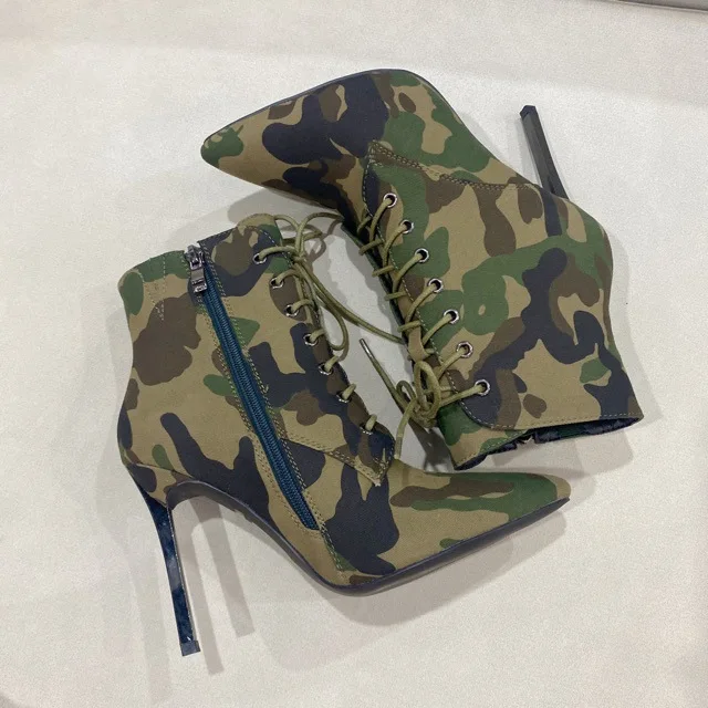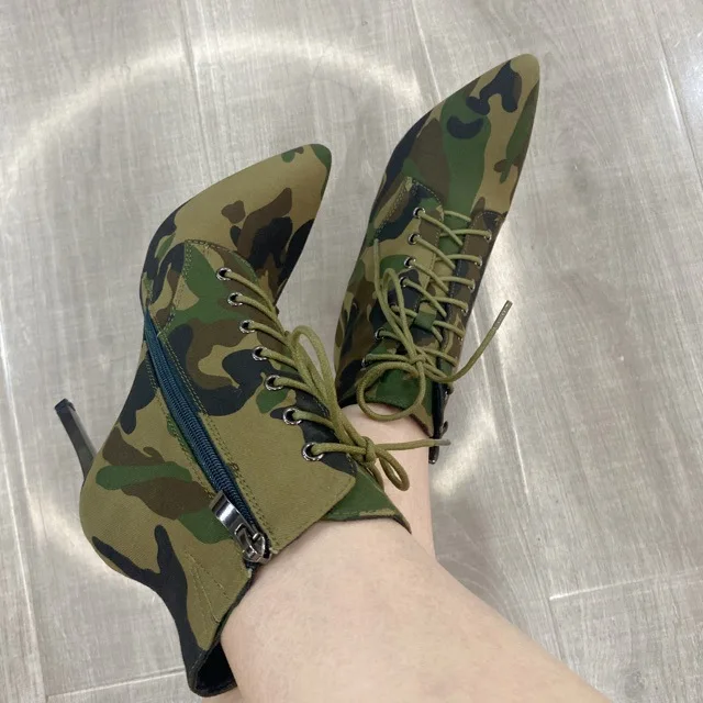 BUSY GIRL QD26 Ankle Boots with Side Zipper and Lace-Up Stiletto Heel Ankle Booties for Women Street Style 2026 Short Boots