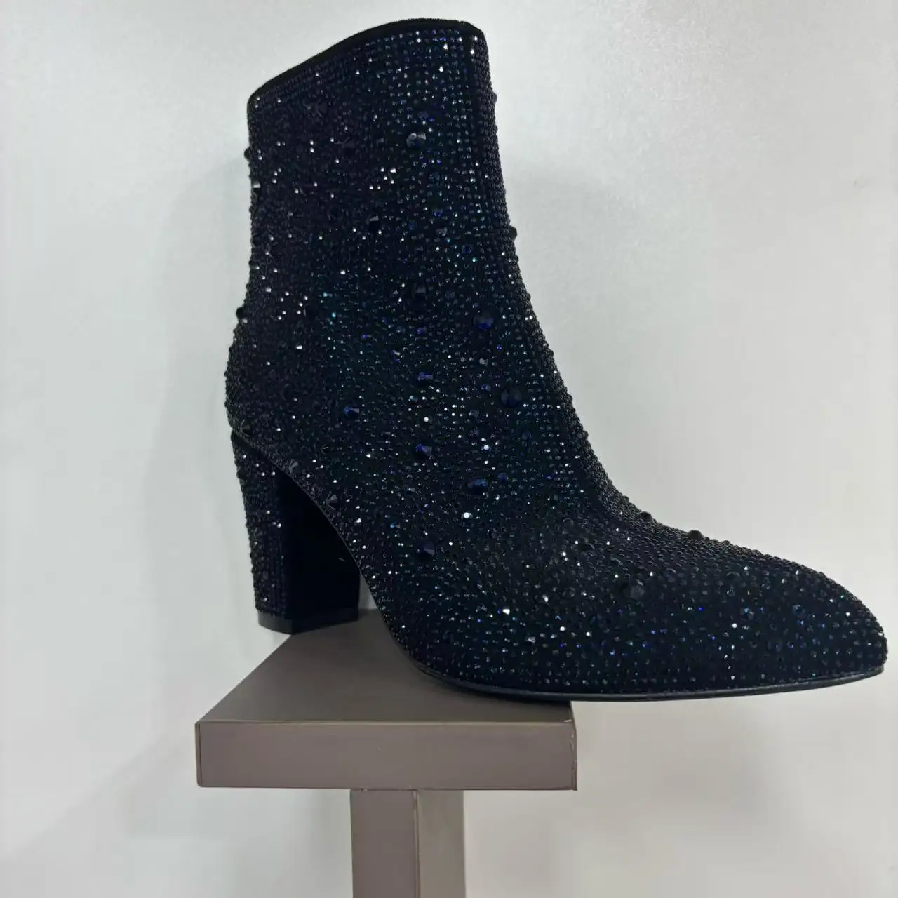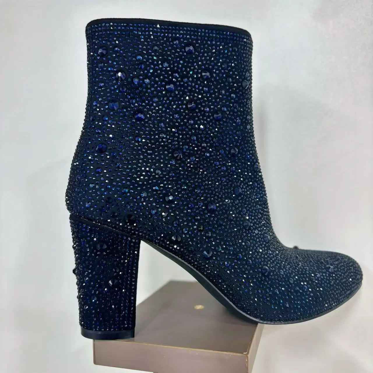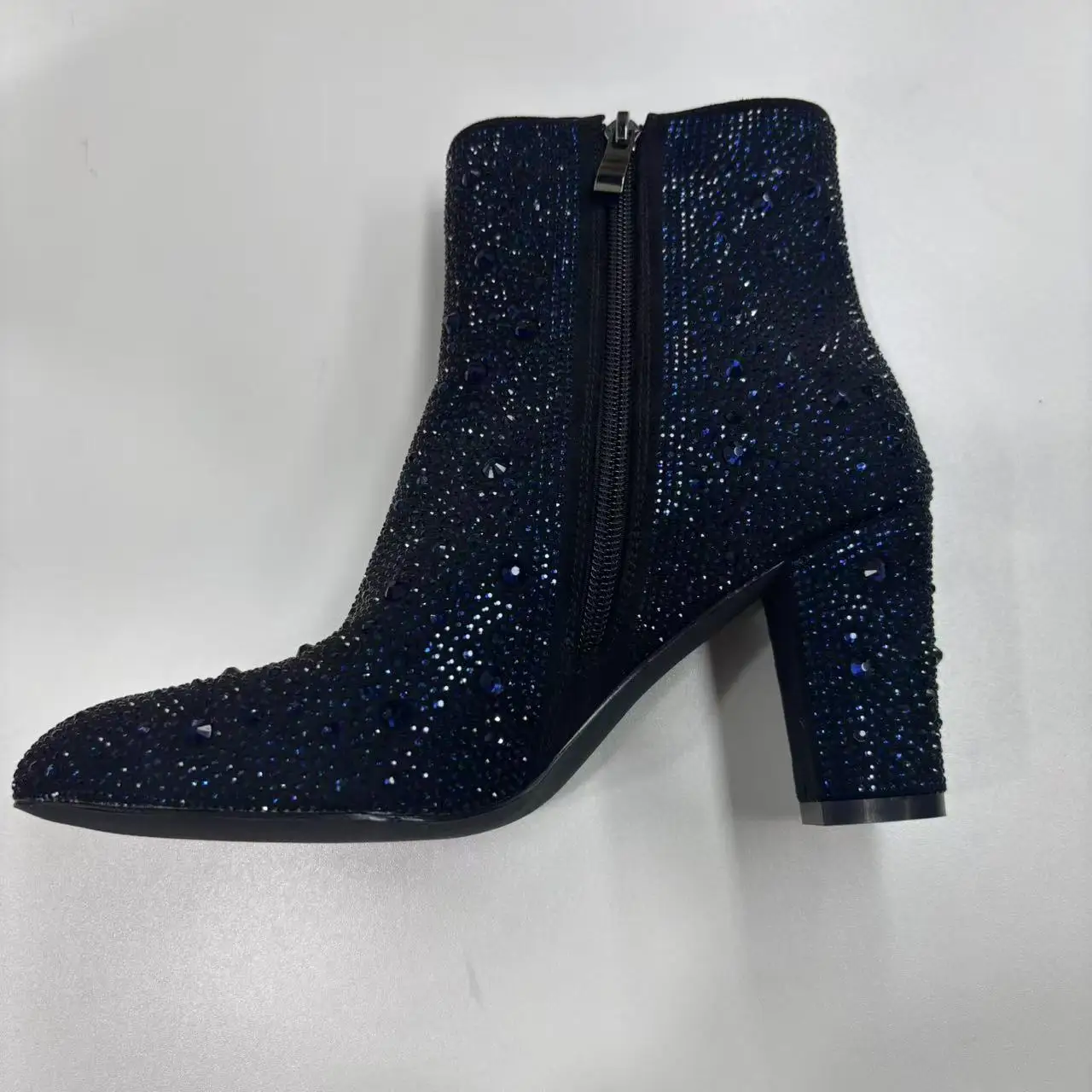 BUSY GIRL QD18 Women's Boots Pointed Toe Thick Heel Stars Rhinestone Suede Fashion Show Low-top Short Boots Winter New Style