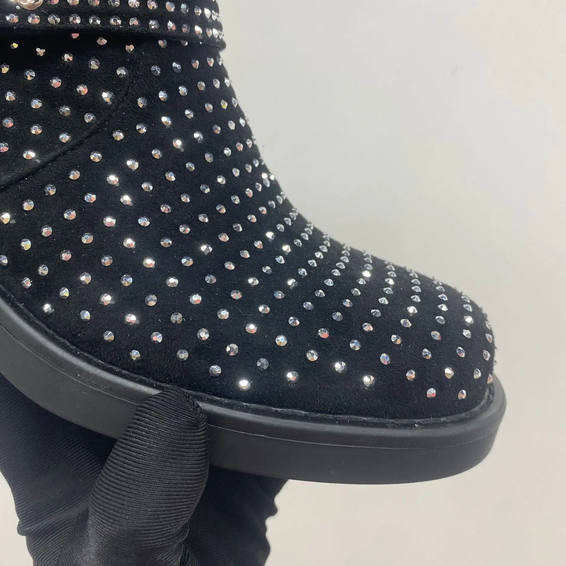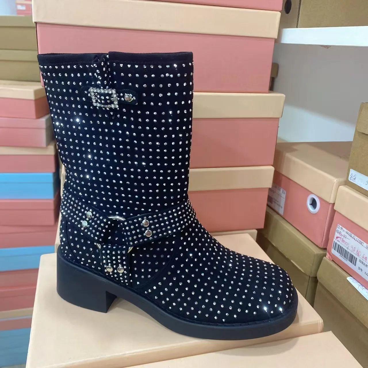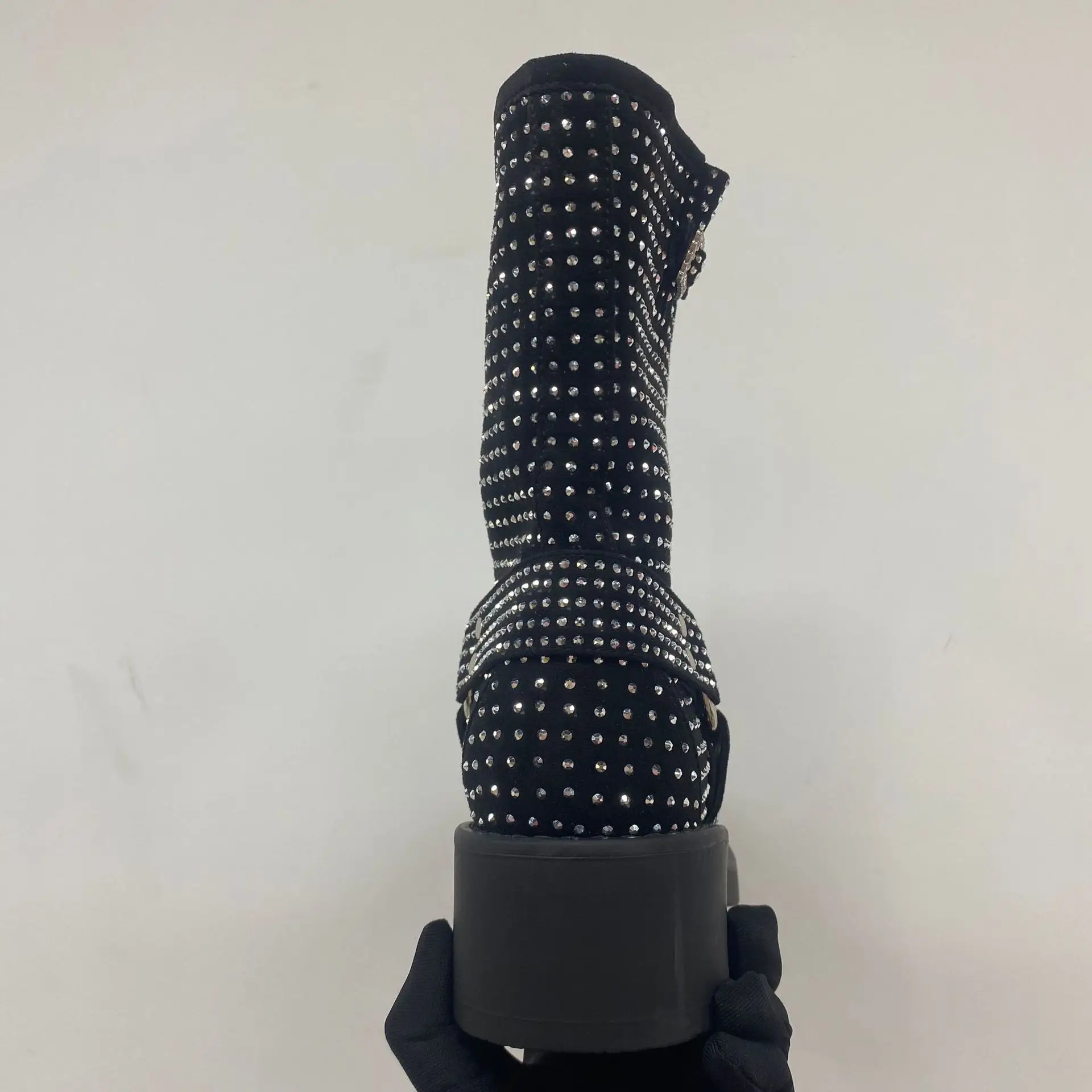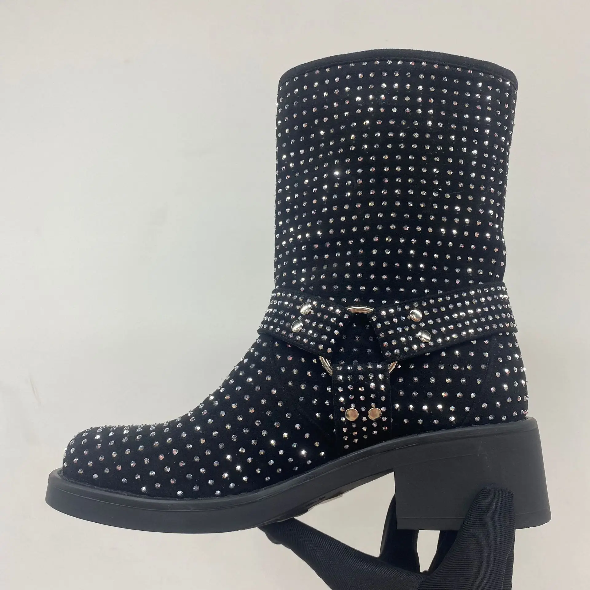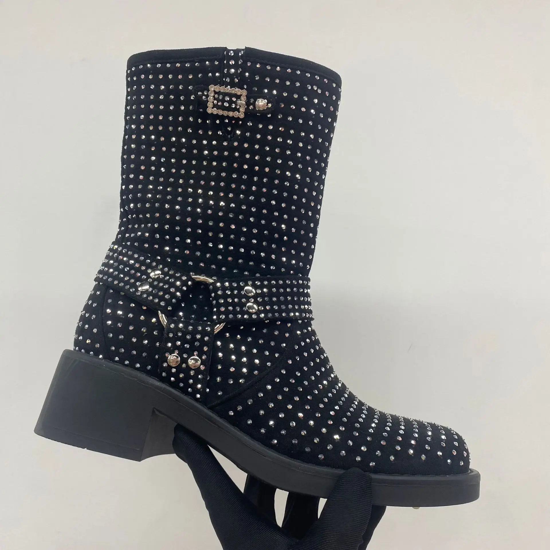 BUSY GIRL QD17 Rhinestone Women Short Boots Full of Diamonds Shining Knight Boots Trendy Cool Versatile Mid-Calf Boot Winter