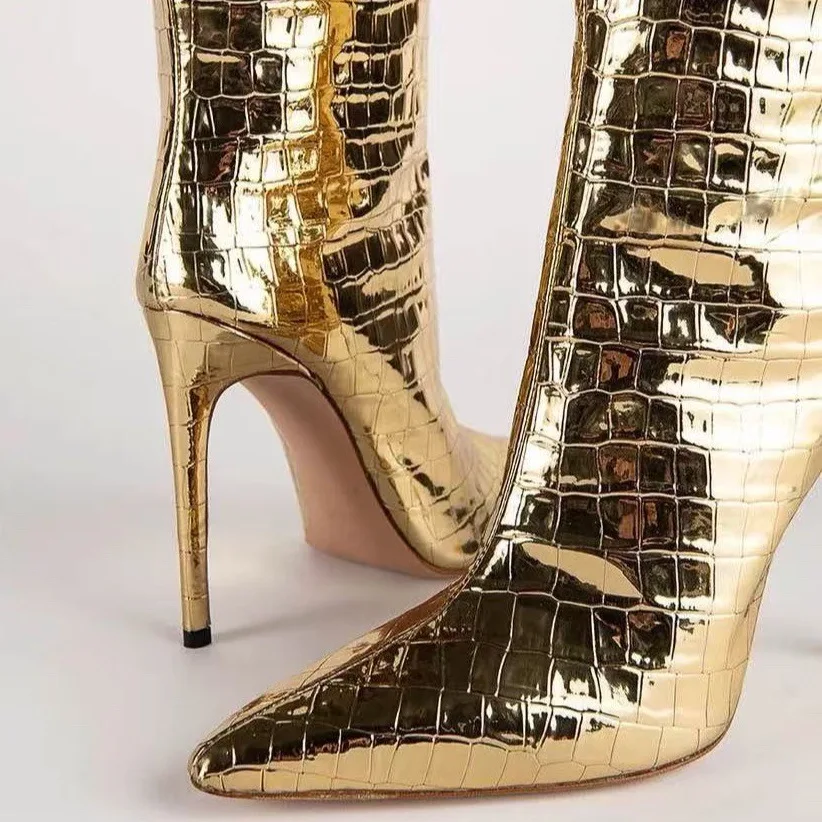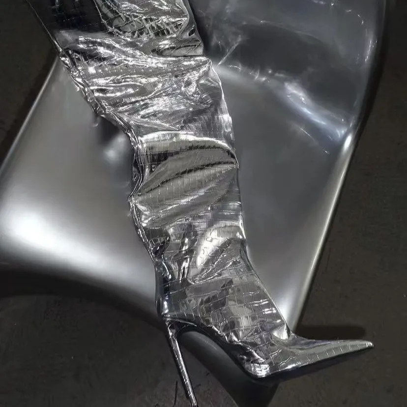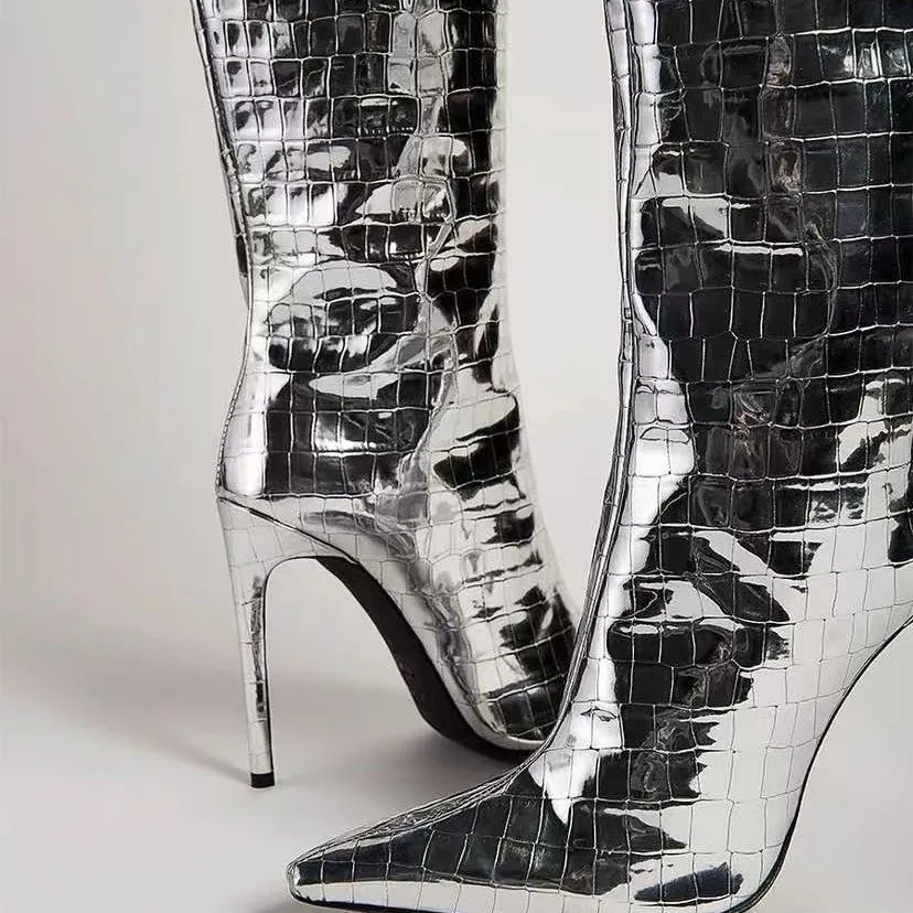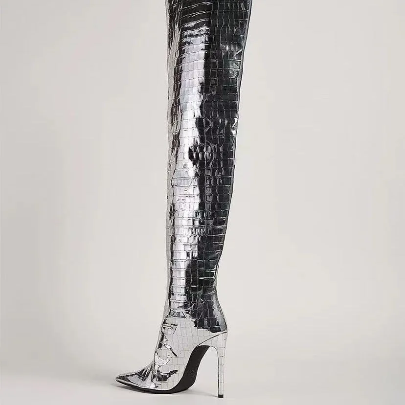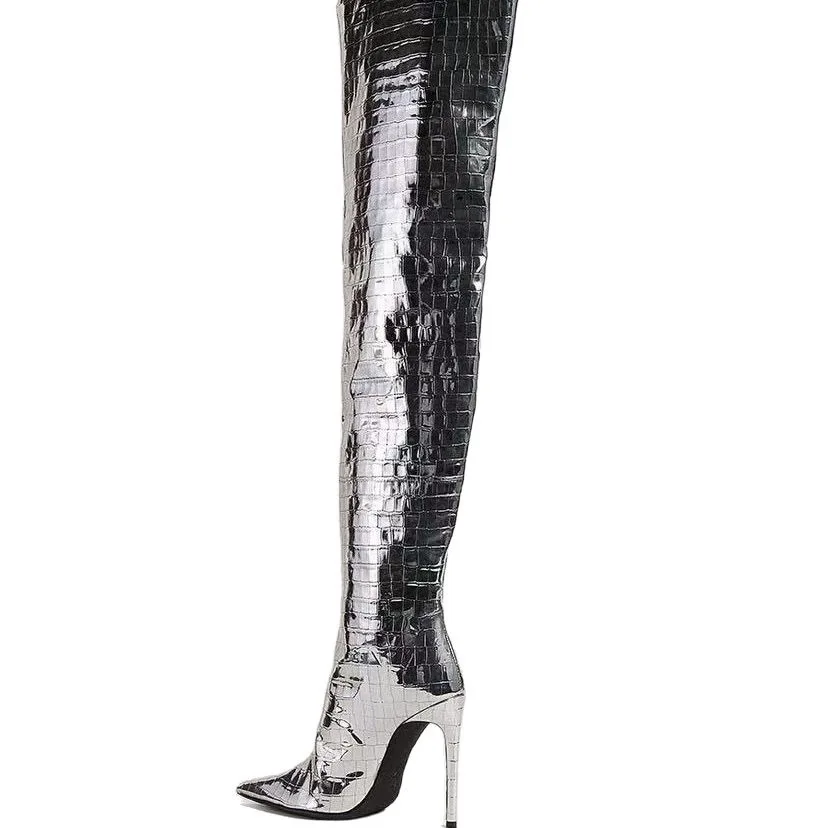BUSY GIRL QD25 Gold and Silver Fashion Catwalk High Boots Snake Pattern crocodile Pattern High Heel Knee Boots Women's Show