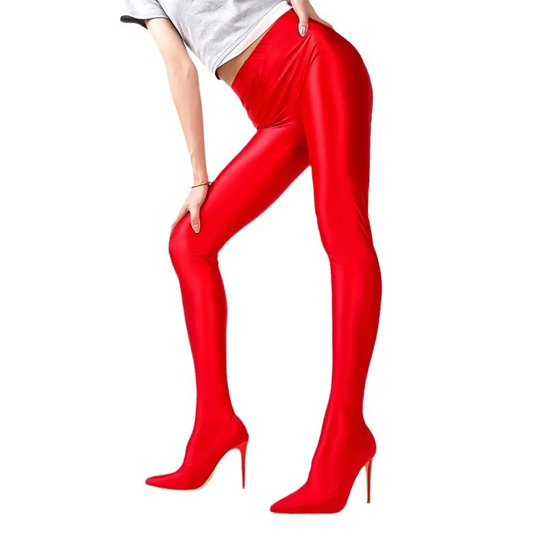 BUSY GIRL QLD34 Shiny High Waist Pants Boots Women's Outdoor High Heels High Boots Sexy Close-fitting Pants Shoes Women's Shoes