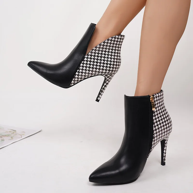 BUSY GIRL QLD23 Side Zipper Short Boots for Women New Autumn Winter Pointed Toe Stilettos High Heels Small Ankle Short Boots