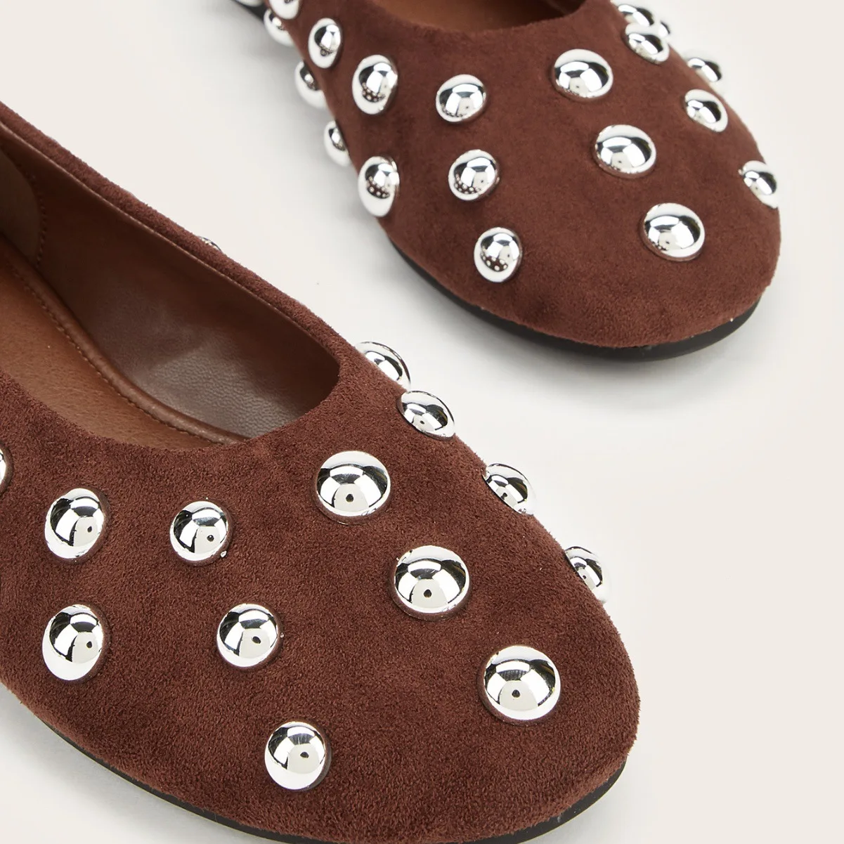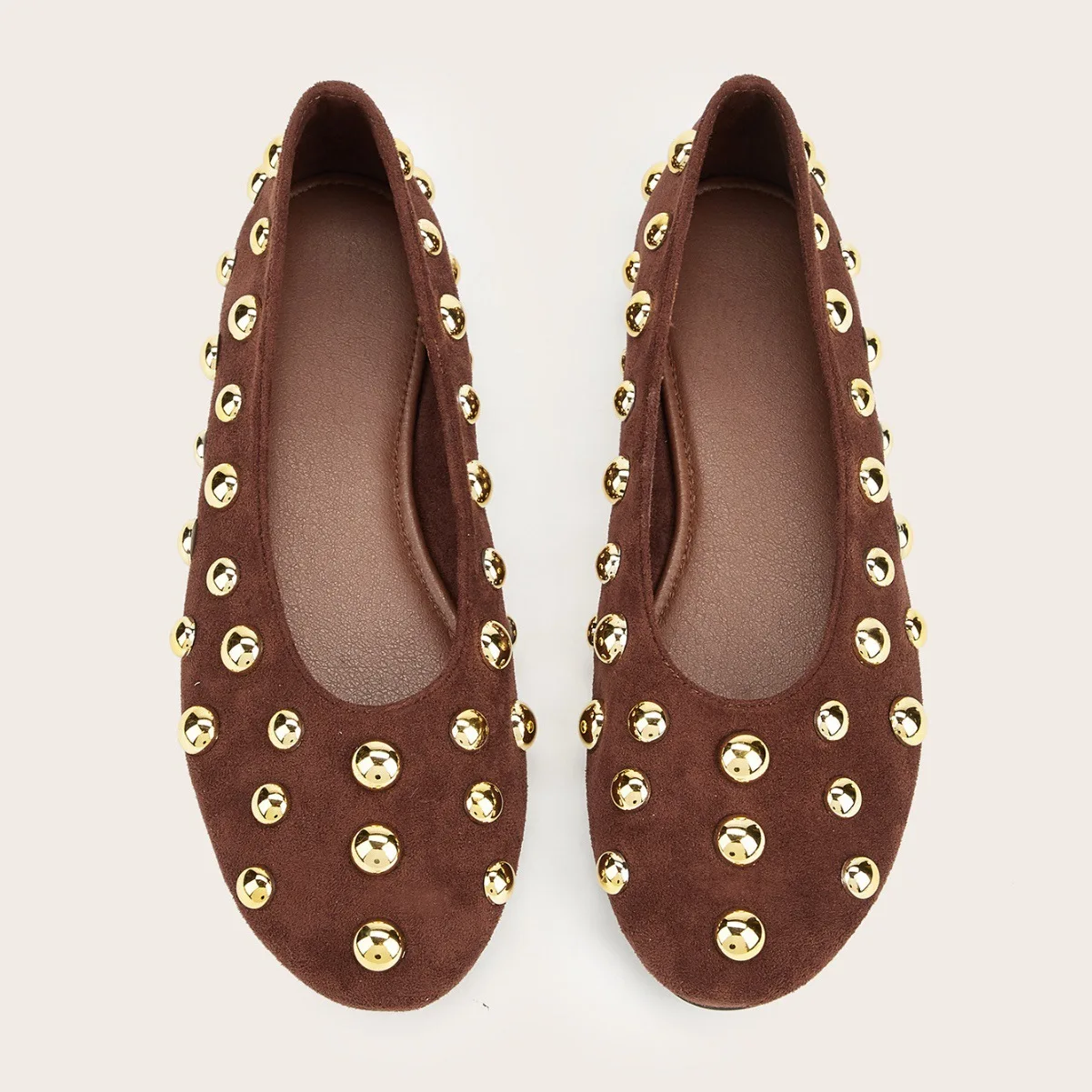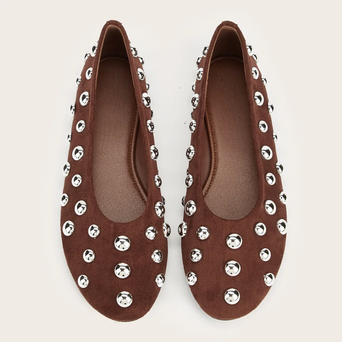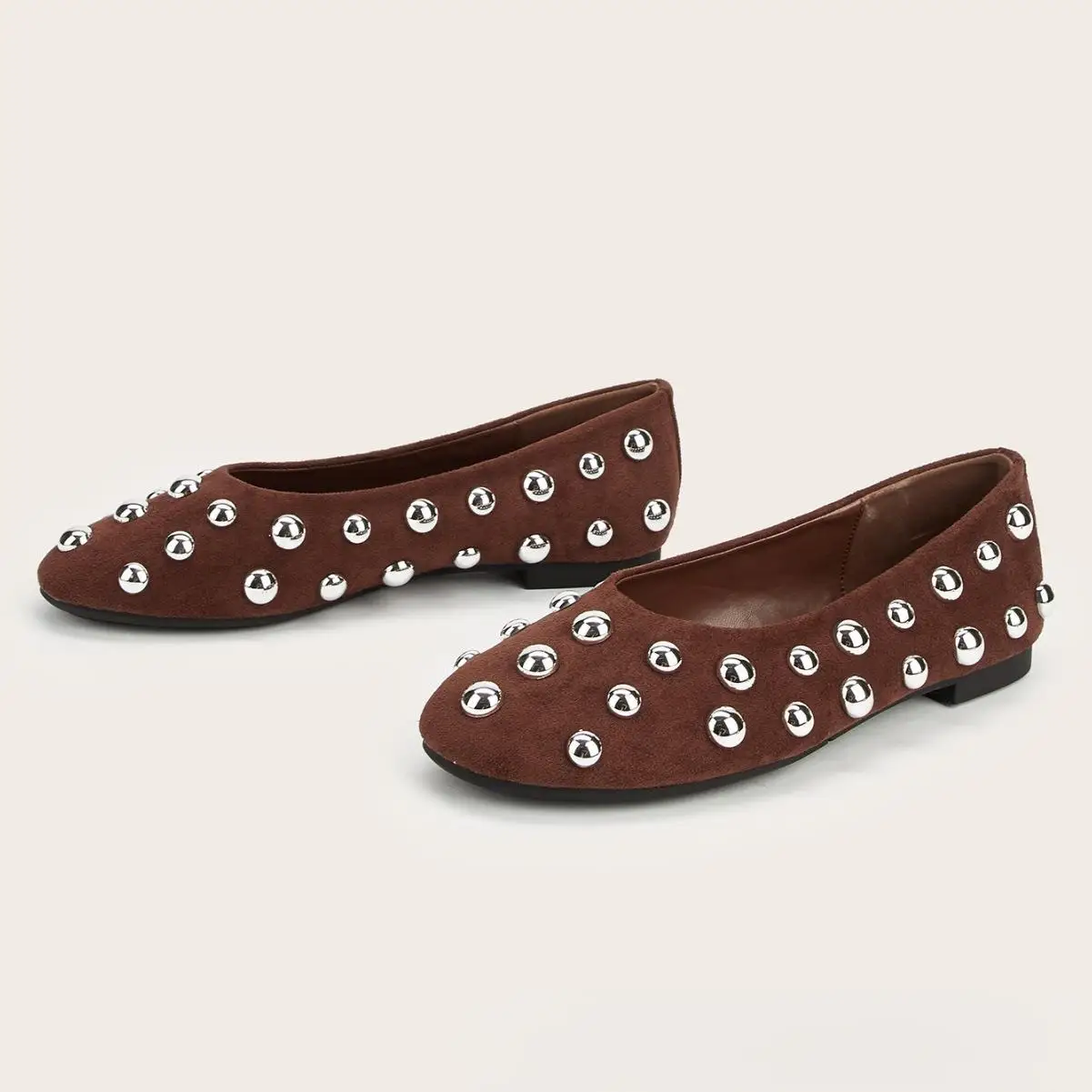 BUSY GIRL CXX247 Dark Brown French Retro Ballet Shoes for Women Metal Rivets All-match Slip-on Shoes Flat Soles All-match