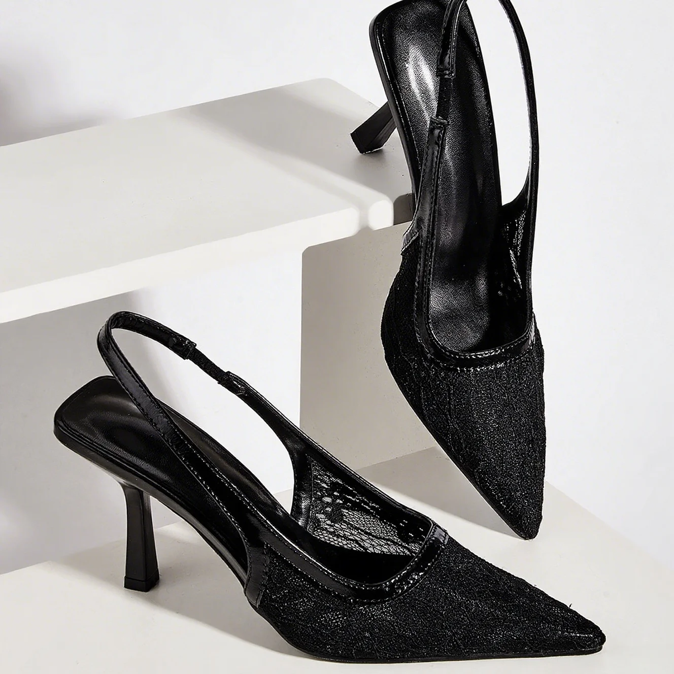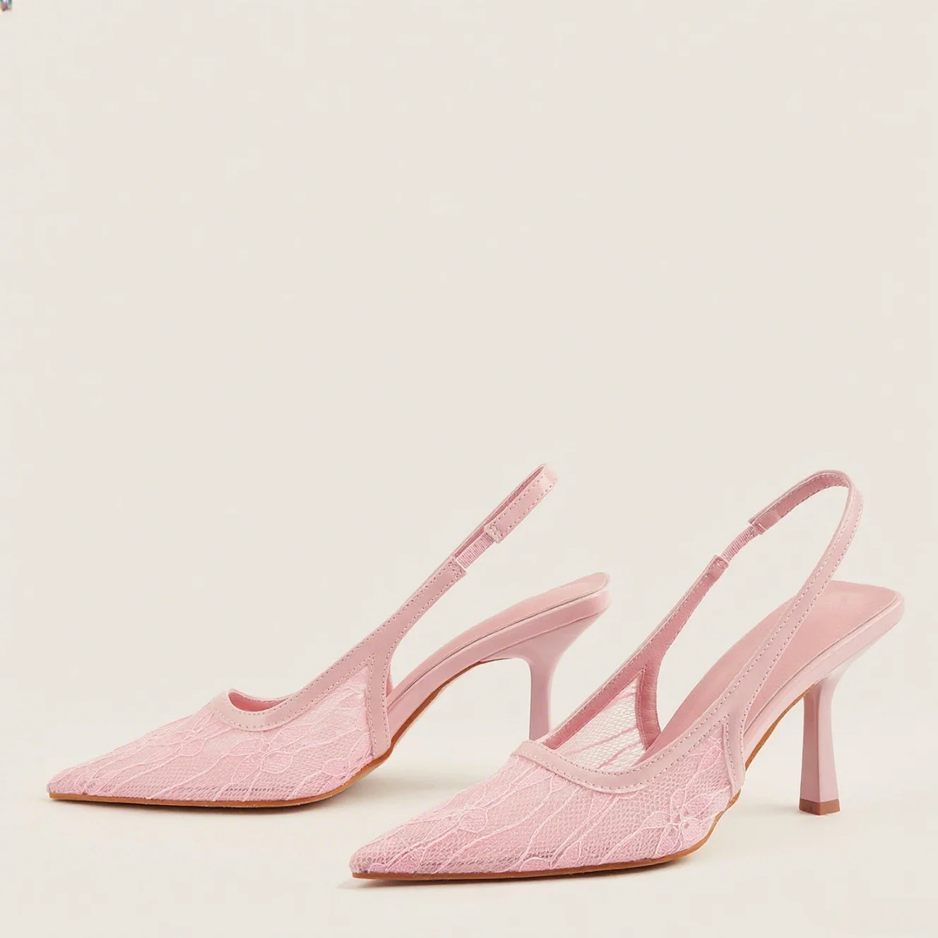 BUSY GIRL CXX263 Women's Shoes Pink Sexy Black Temperament Lace Slingback Single Shoes Stiletto High Heels Party Banquet Heels