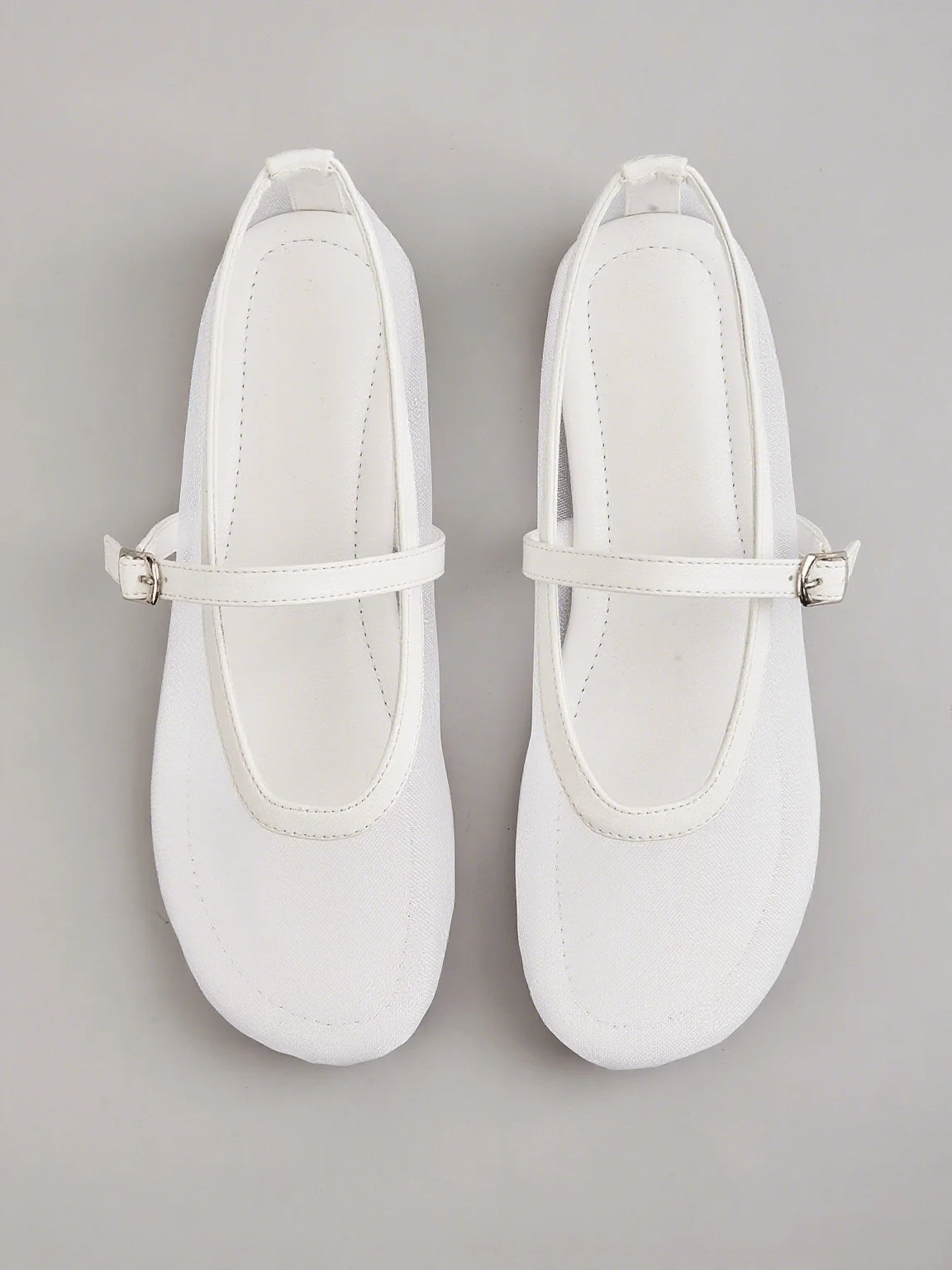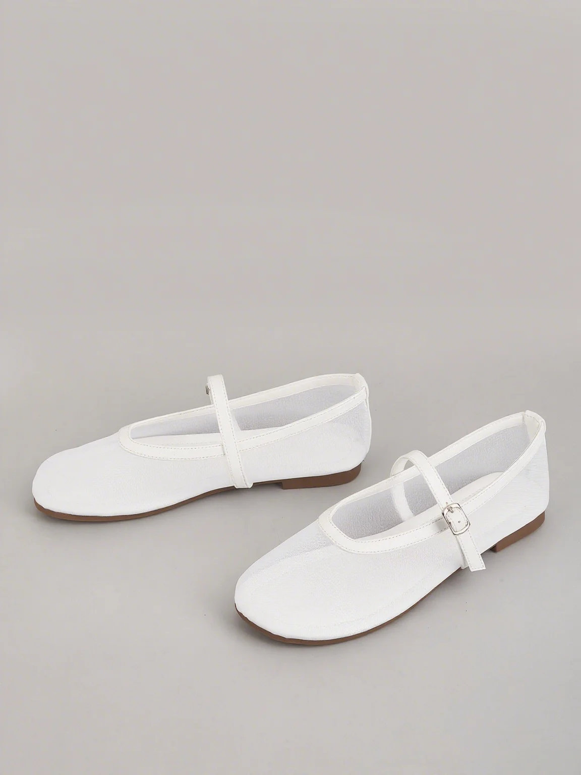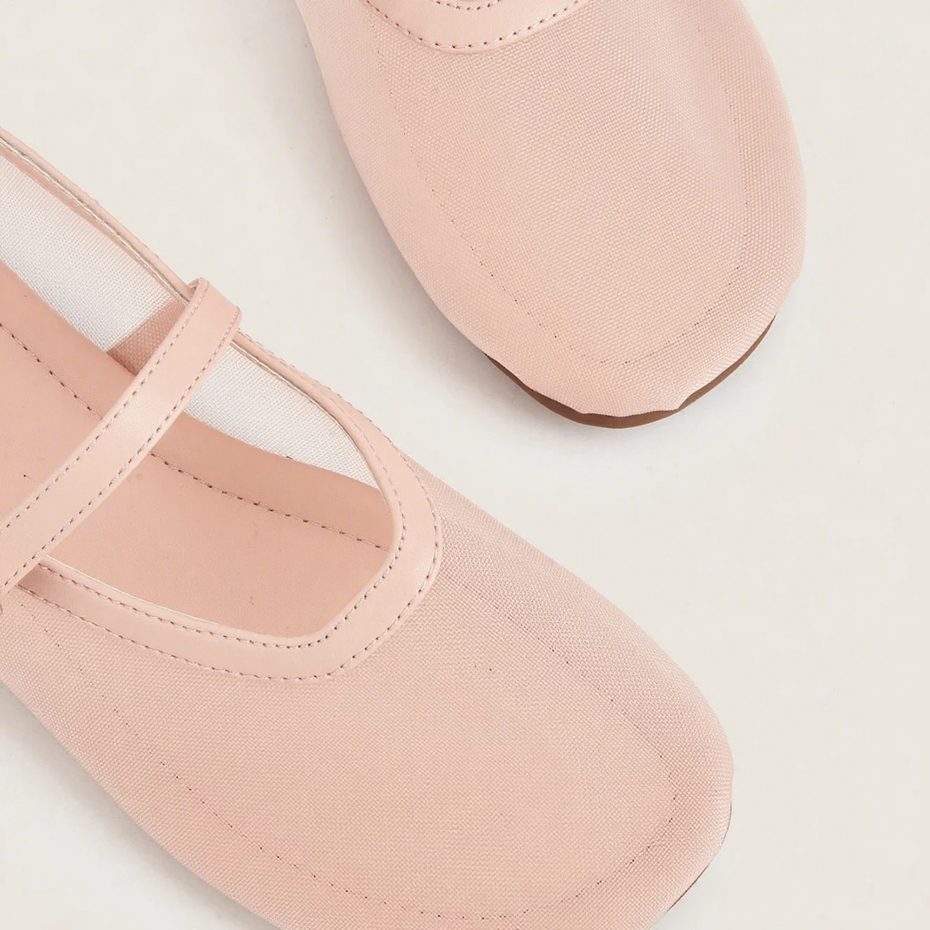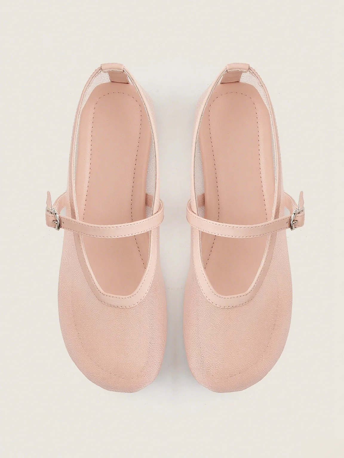 BUSY GIRL CXX303 Mesh Breathable Flat Sandals pink Round Toe Shallow Mouth One-word Buckle Slip-on Ballet Flats Casual Sandals
