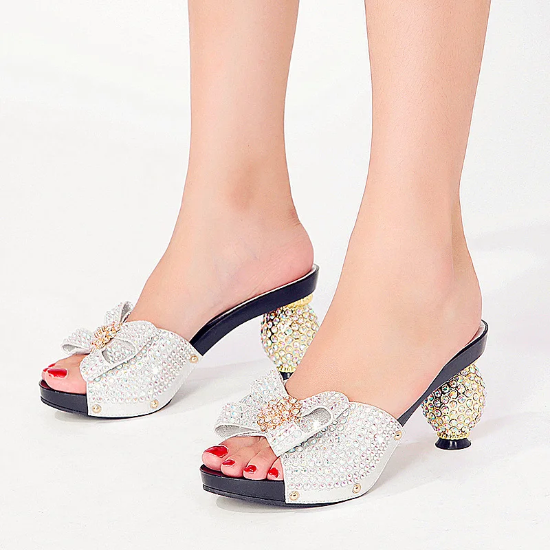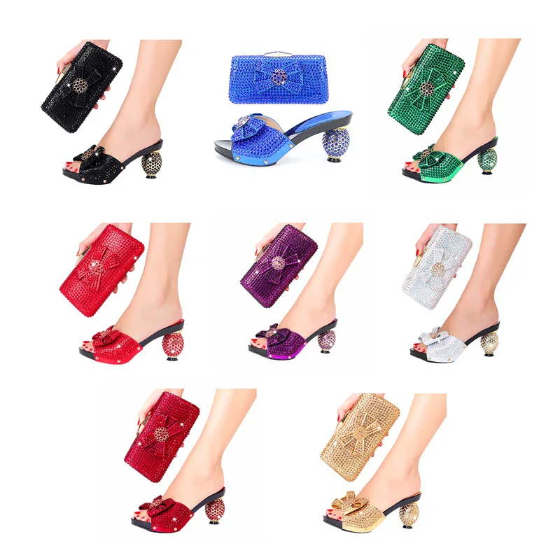 BUSY GIRL GEPL01 Shoe Bag Luxury Black Crystal High Heel Mules & Bow Clutch Bag Set with Sphere Heel for Gala Party