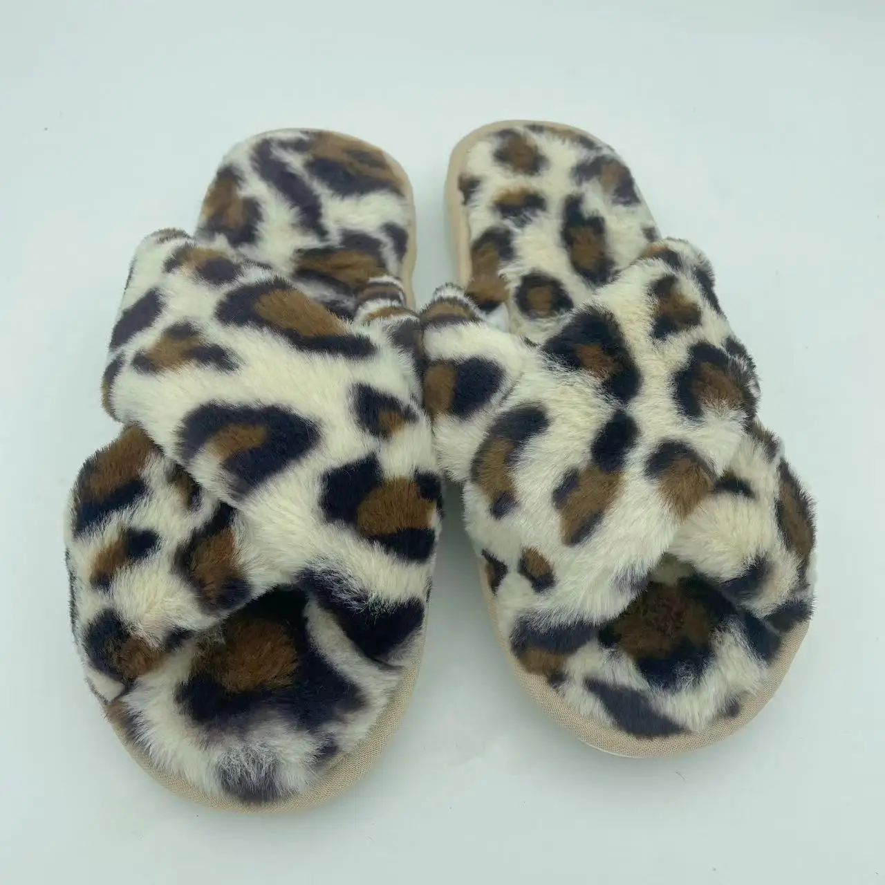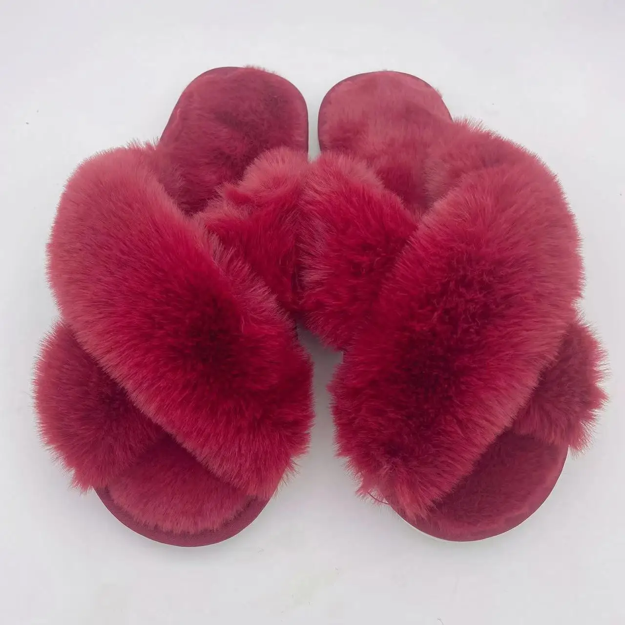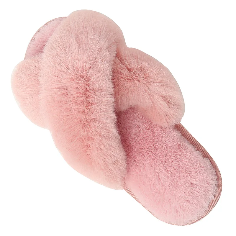 BUSY GIRL JYD01 Winter Plush Cross-strap slippers for Women Indoor Warm Plush slippers with Rabbit Fur Slippers for Ladies