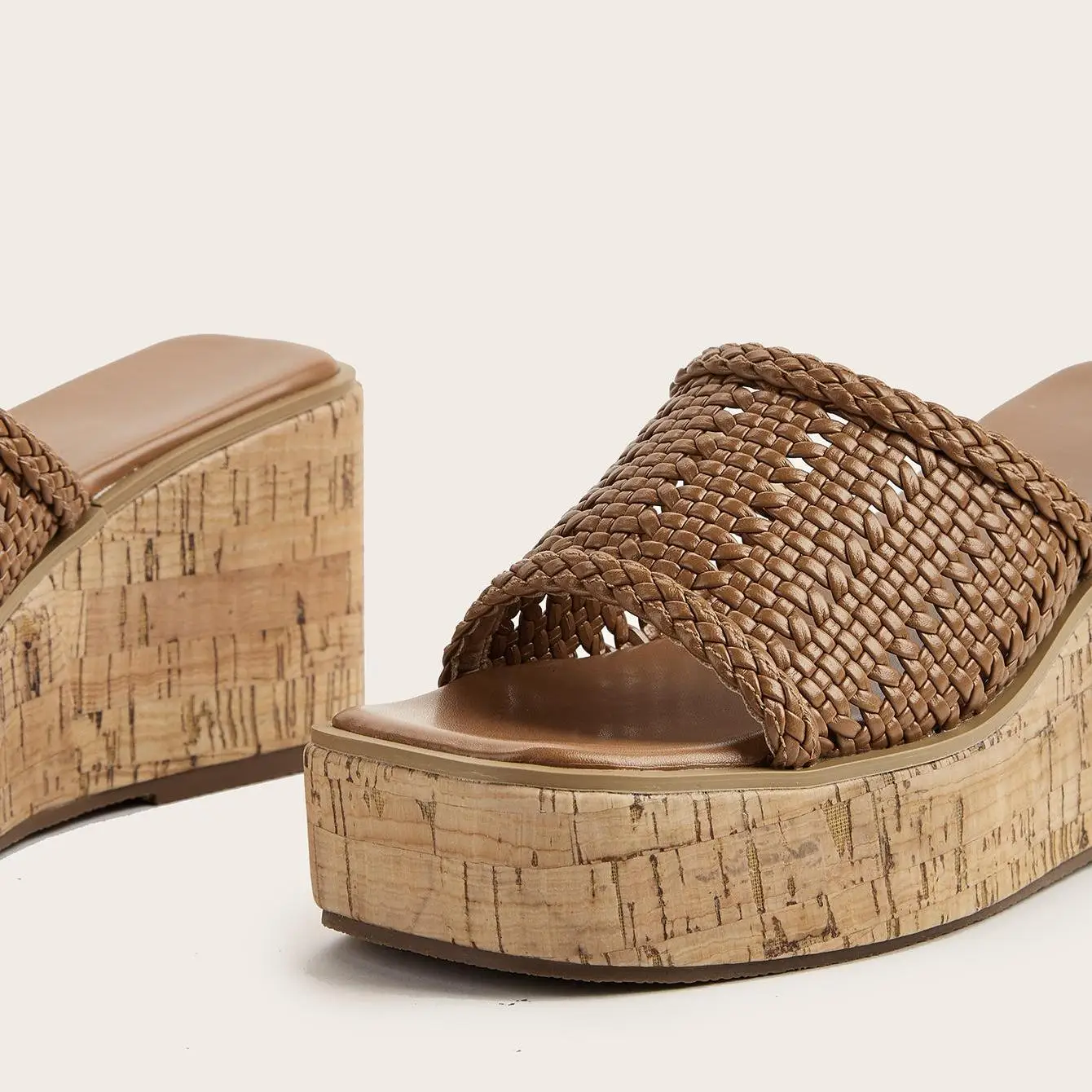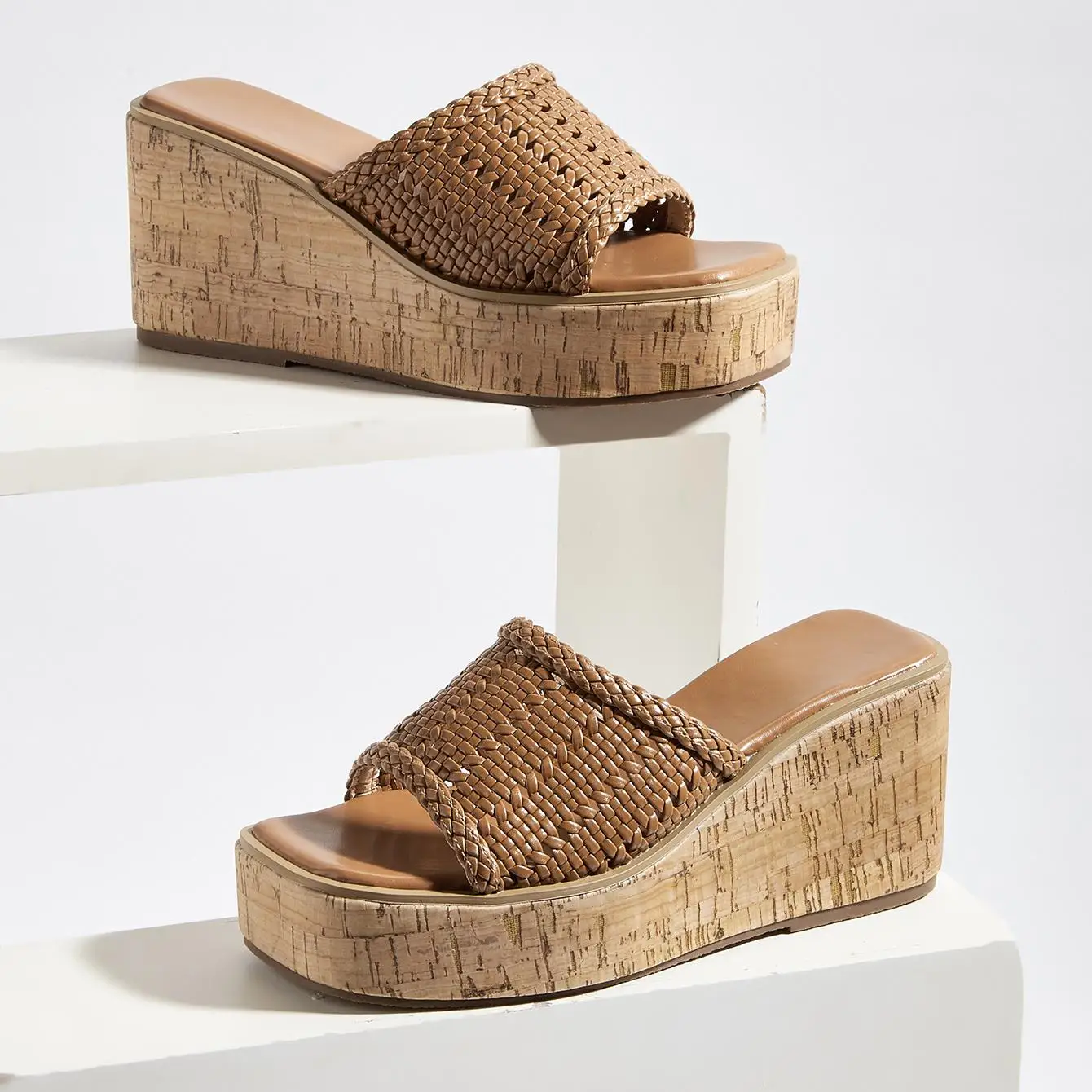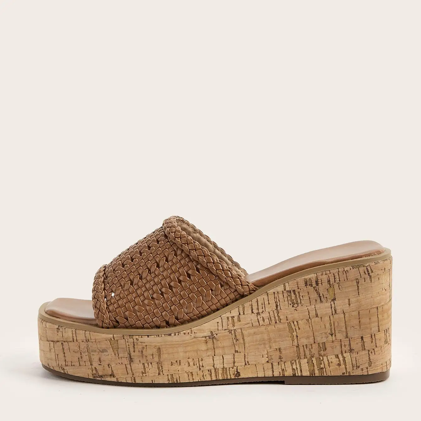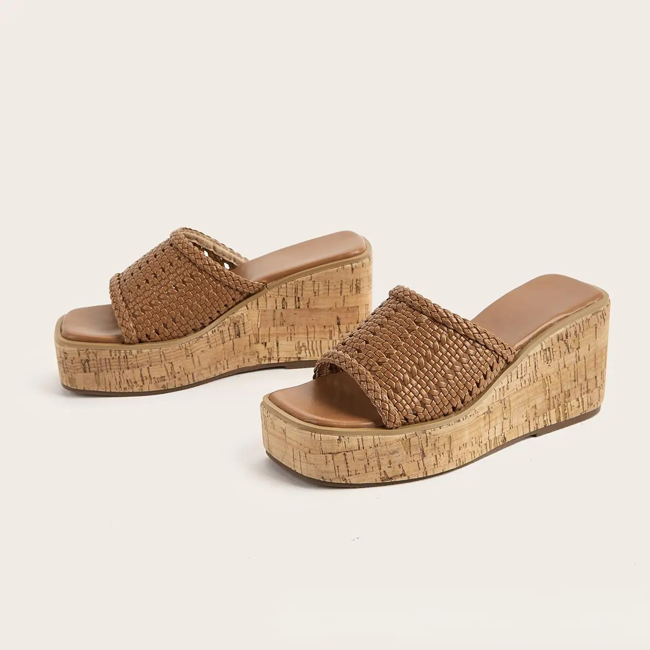 BUSY GIRL CXX318 Wedge Heel Sandals square Toe White Roman Style Mesh Woven Super High Heels Wedge Sole Spring and Summer Indoor