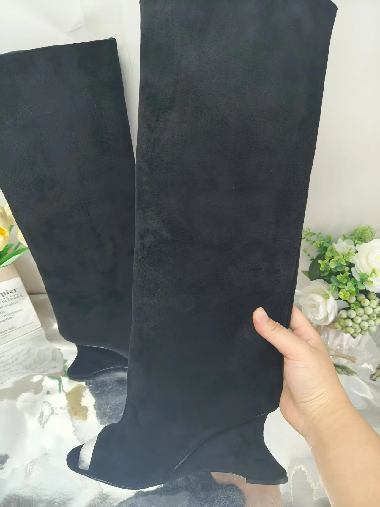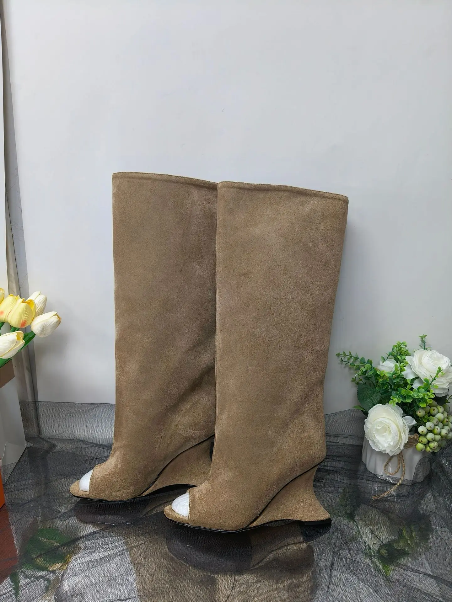 BUSY GIRL MY9502 Fish Mouth Special Heel Knee High Women Boots Open Toe Brown Women's Fashionable All-match Sandals Long Boots