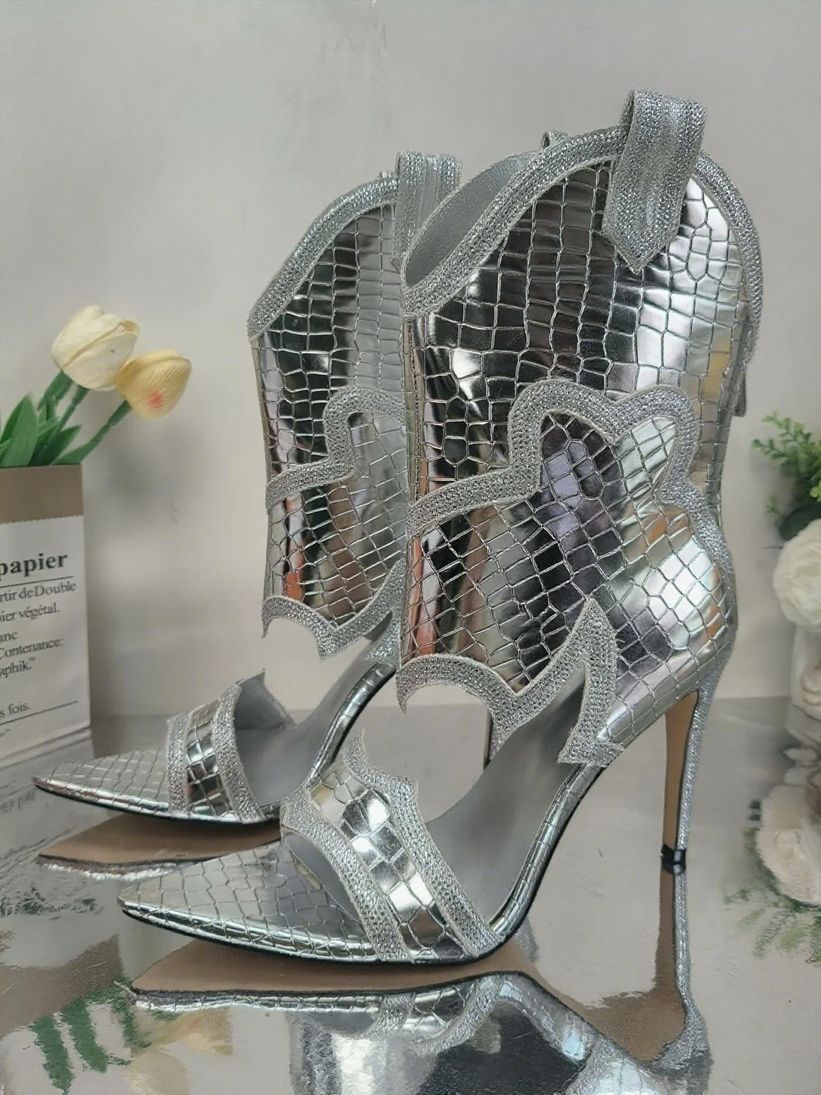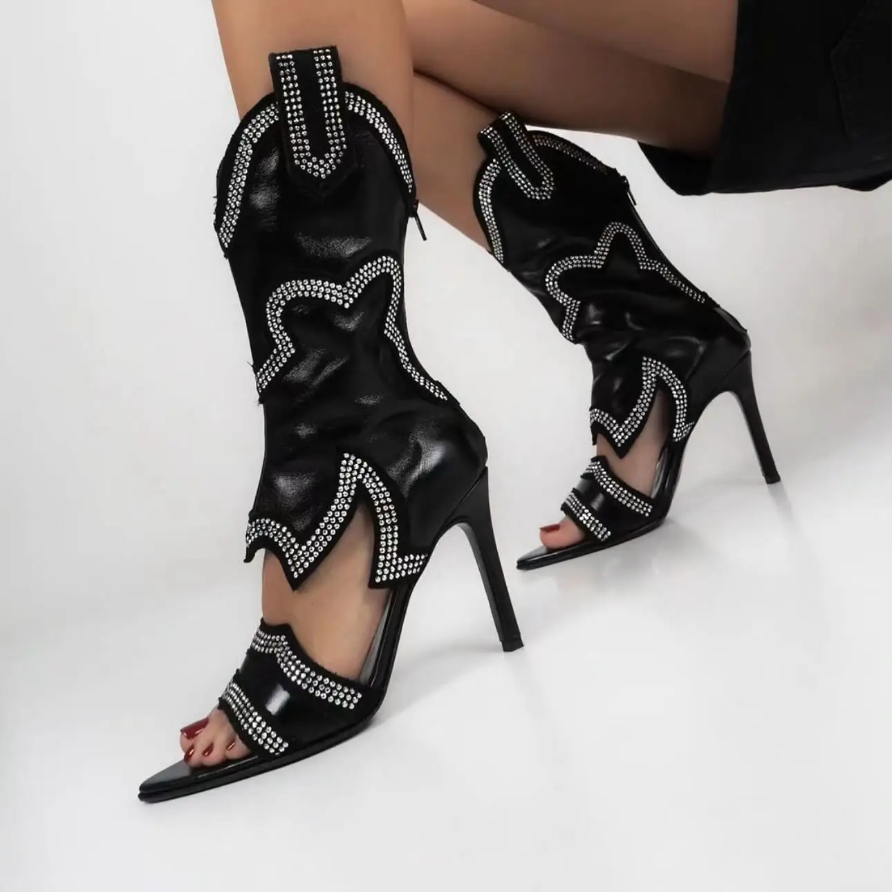 BUSY GIRL MY9506 Ladies Open Toe Stiletto High Heel Sandals Boots Color Matching Hot Diamond Sexy Hot Girl Plus Size Back Zipper