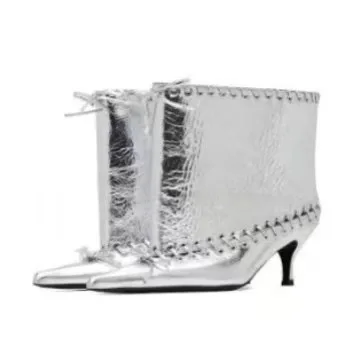 BUSY GIRL MY9123 Women Ankle Boots 2026 New Sexy Pointed Stilettos Metal Rivet Straps Tassel Bow High Heel Wide Boots Winter