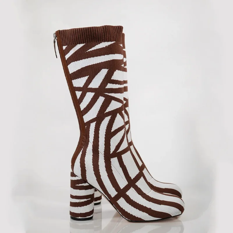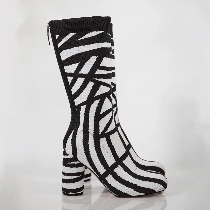 BUSY GIRL TLX9133 Women's Mid Socks Zebra Pattern Knitted Cuff Mid-calf Boots Lightweight & Stylish for Ladies Winter Custom