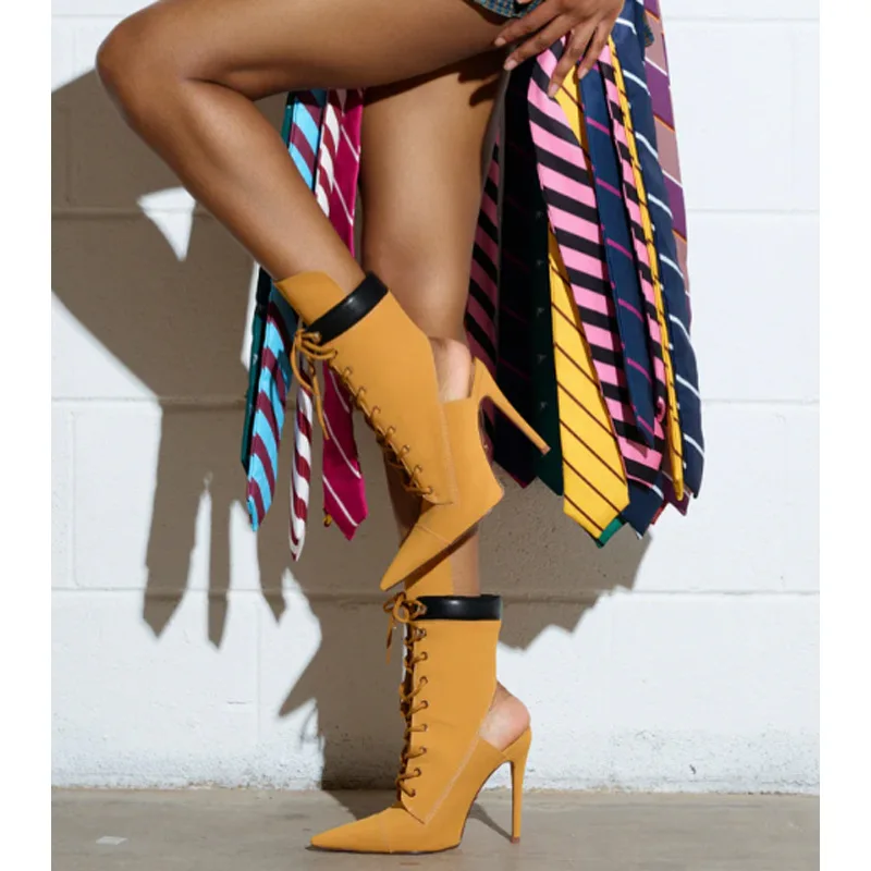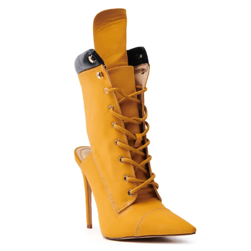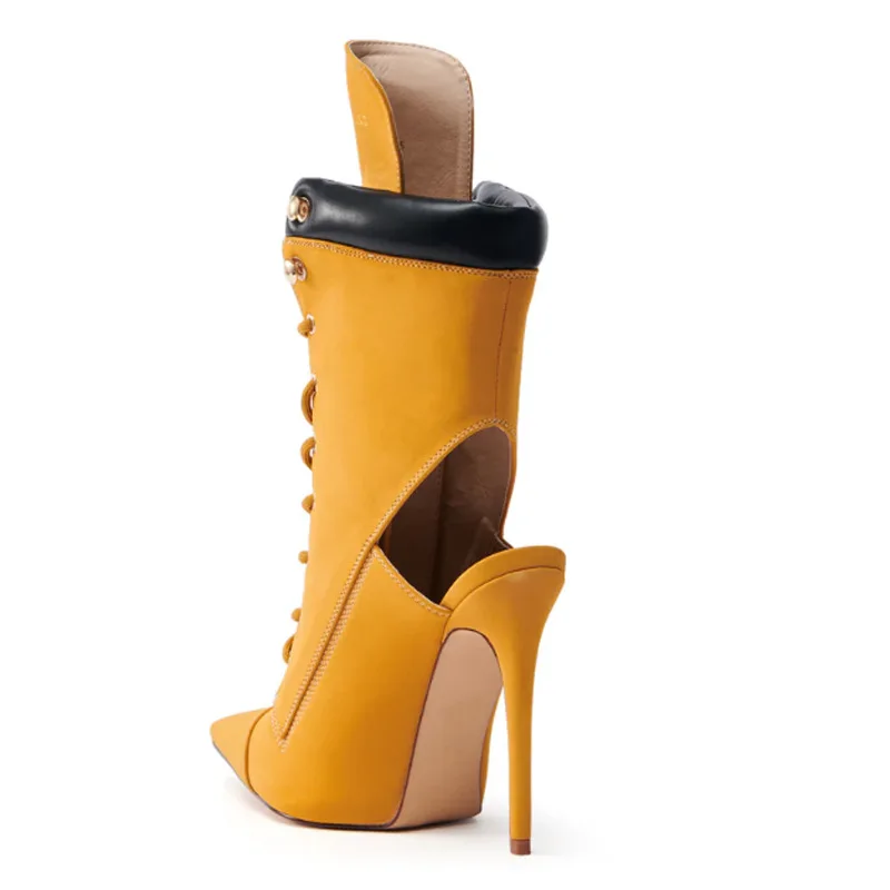 BUSY GIRL TLX9132 New Women's Ankle Boots with Stiletto Heels Pointed Toe Lace-up High Heels Hollow Back Fashion Boot Large Size
