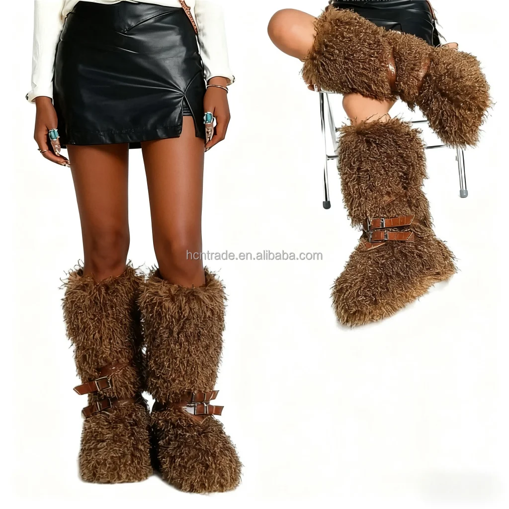 BUSY GIRL RS9251 2026 Brown Fur Boots Women Custom Boots Daily Casual Style Breathable Anti-Slip Warming Fur Boots for Ladies