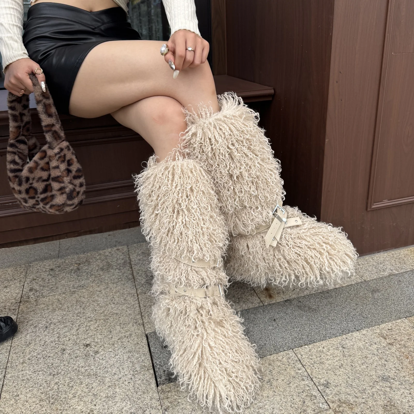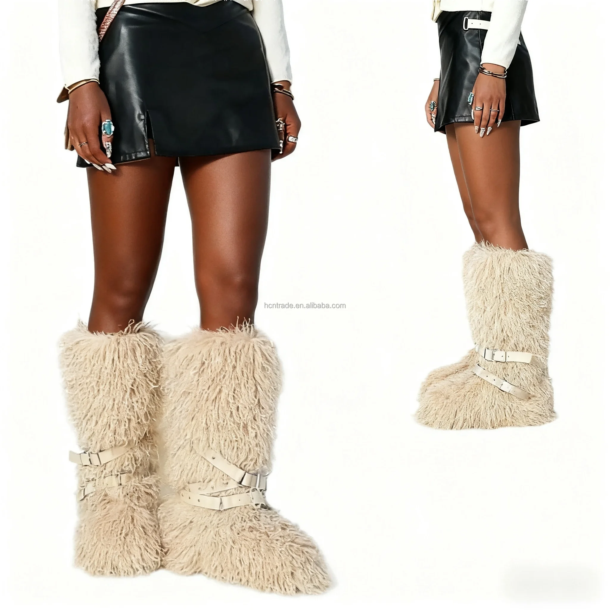 BUSY GIRL RS9251 Faux Fur Boots for Women Beige 2026 Custom Boots Manufacturers Punk Breathable Faux Tan Wool Boots