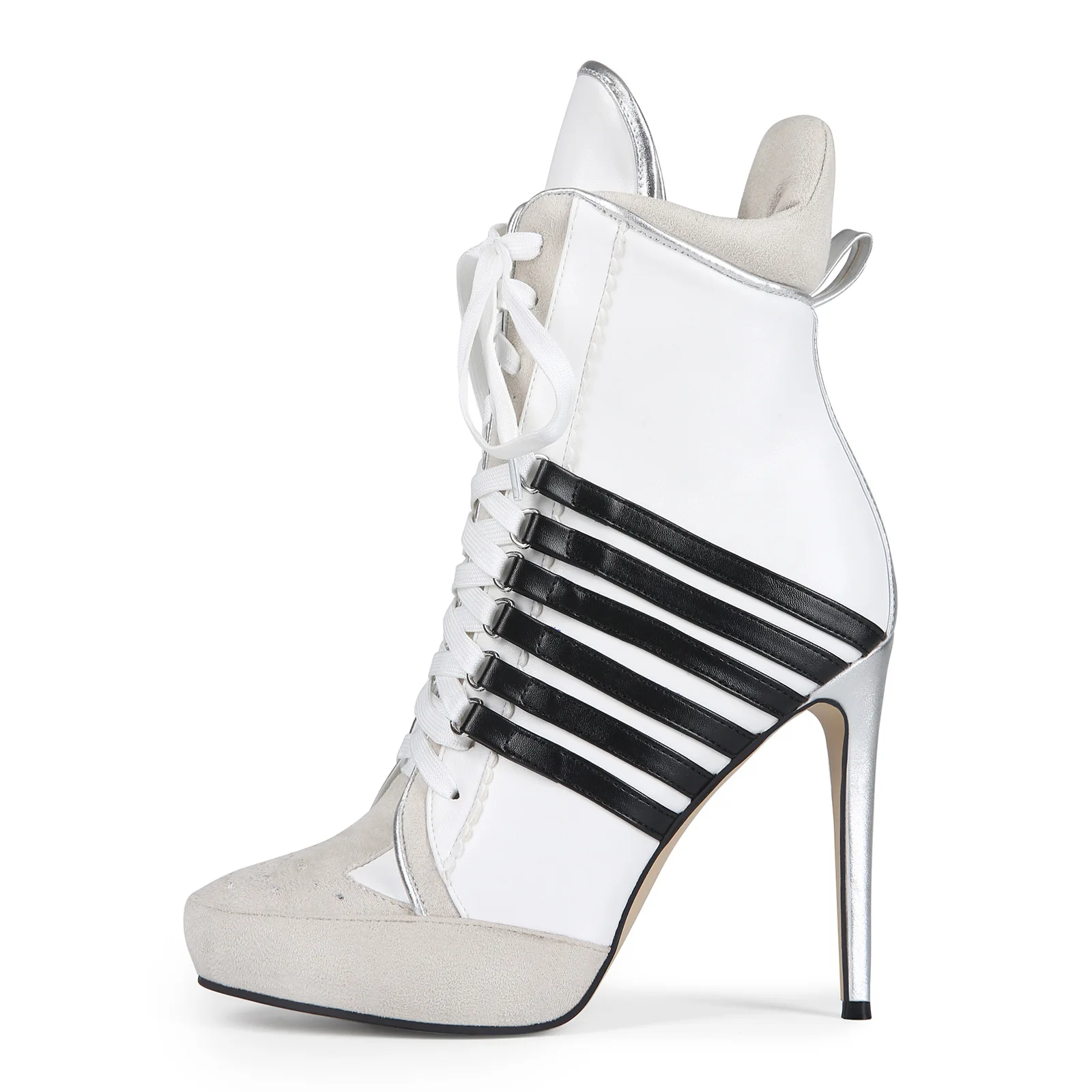 BUSY GIRL XYZ2507 Custom High Heels Sports Lace-up Stiletto Heels Large Size 44 Color Matching Women's Fashion Short Boots Boots
