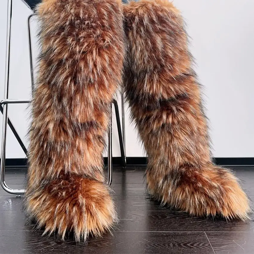 BUSY GIRL RS1021 Knee-High Boots for Women Mongolian Fur Boots Women Boots Fur Boots Women Flat Fluffy Fuzzy Faux Long 2026