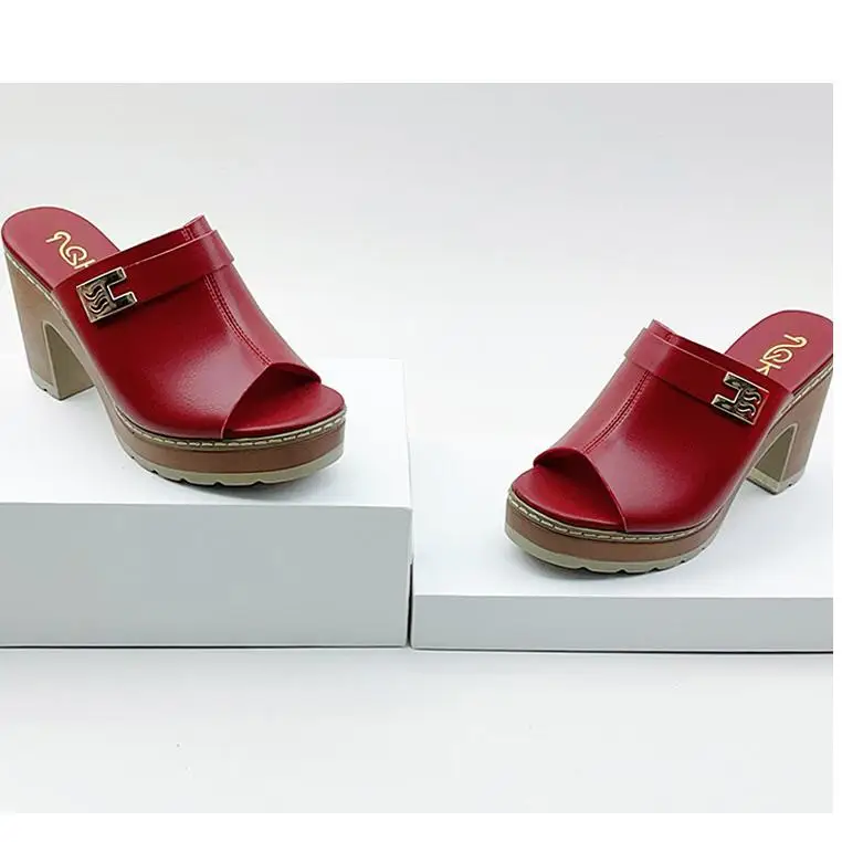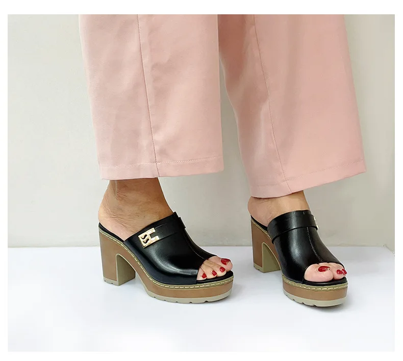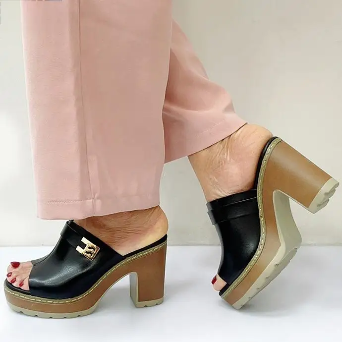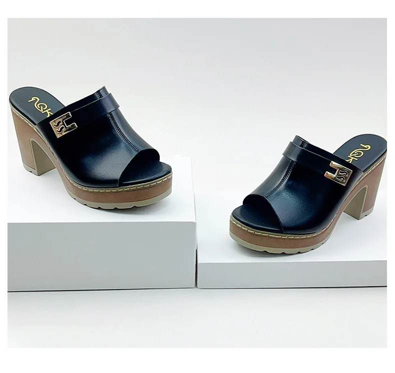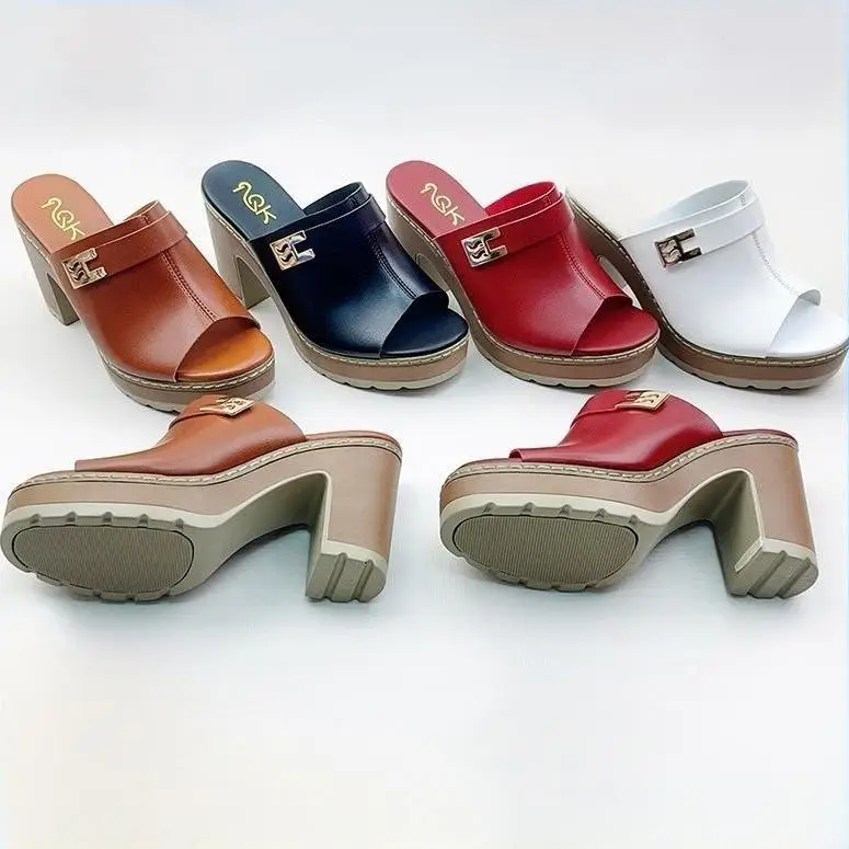 BUSY GIRL BX1029 Custom High-heeled slippers for Women with Round Toe Solid Color Simple Outdoor slippers with Platform 2026