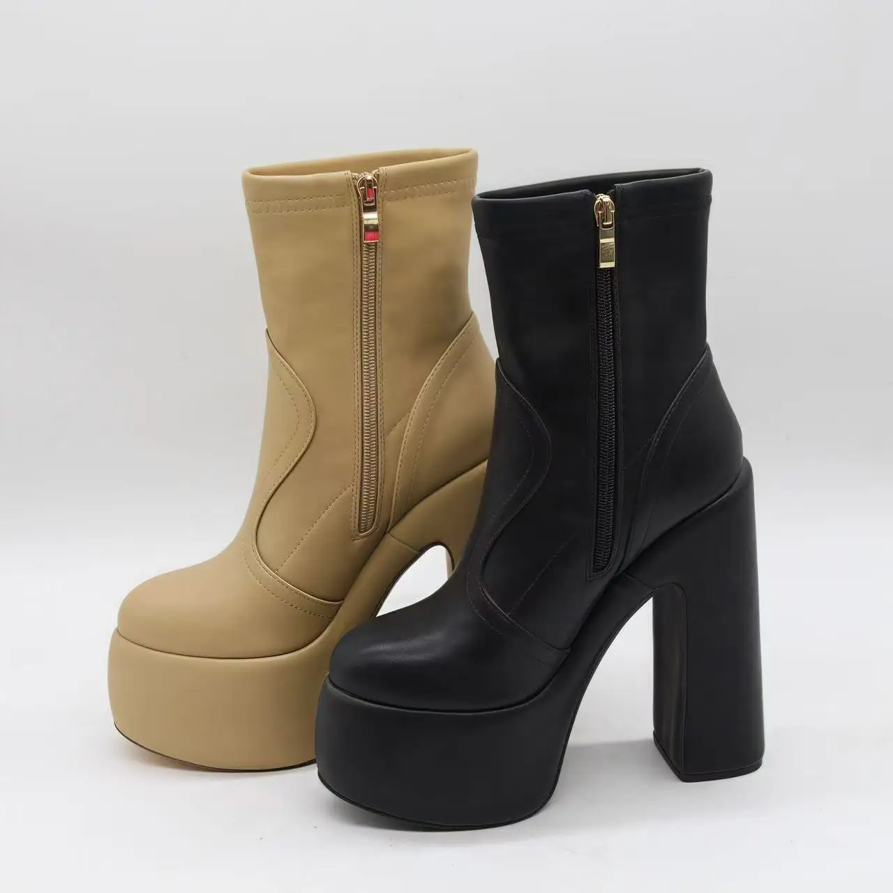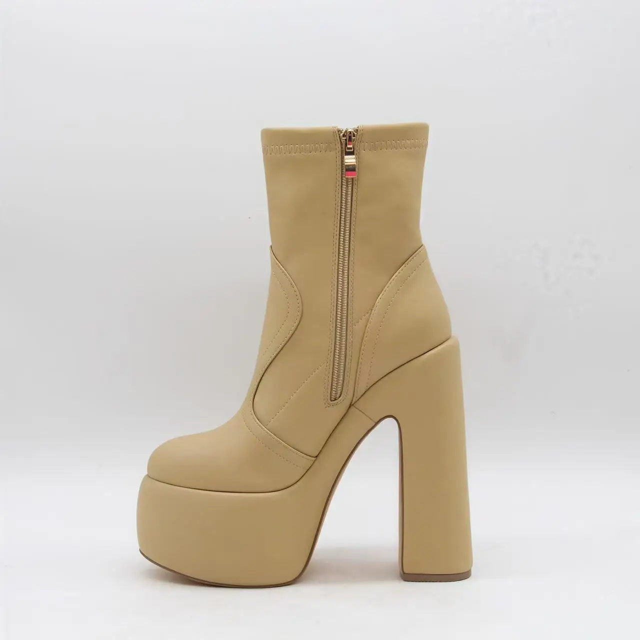 BUSY GIRL HQ1101 Women's Ankle Boots Solid Color Round Toe Boots for Women Chunky Heel Super High Platform Ankle Boots Winter