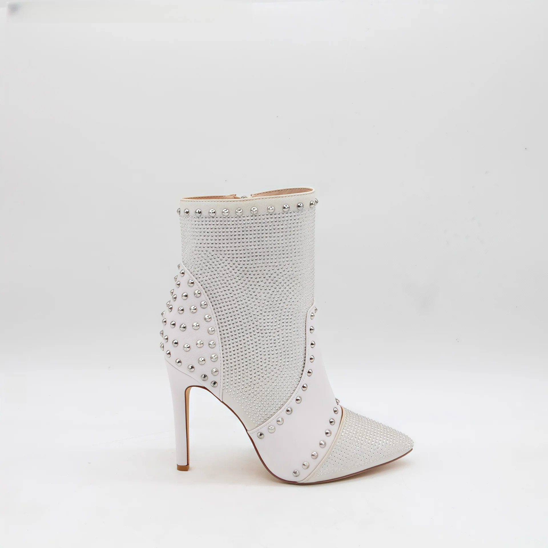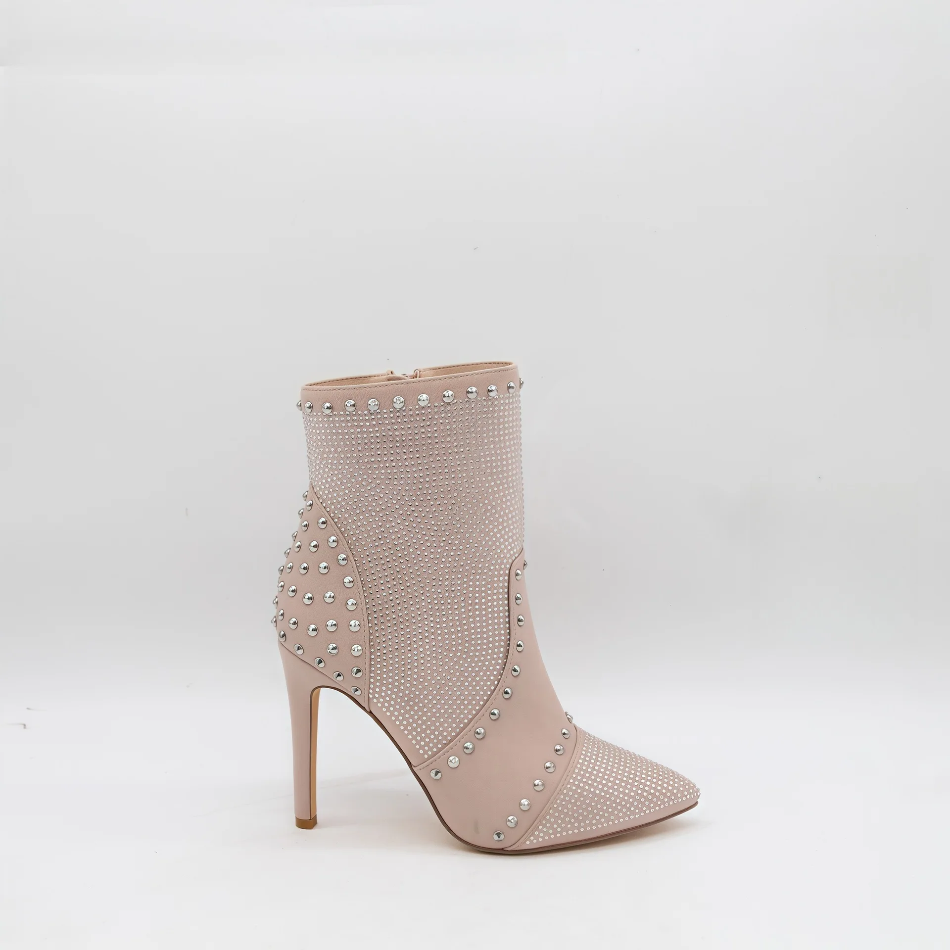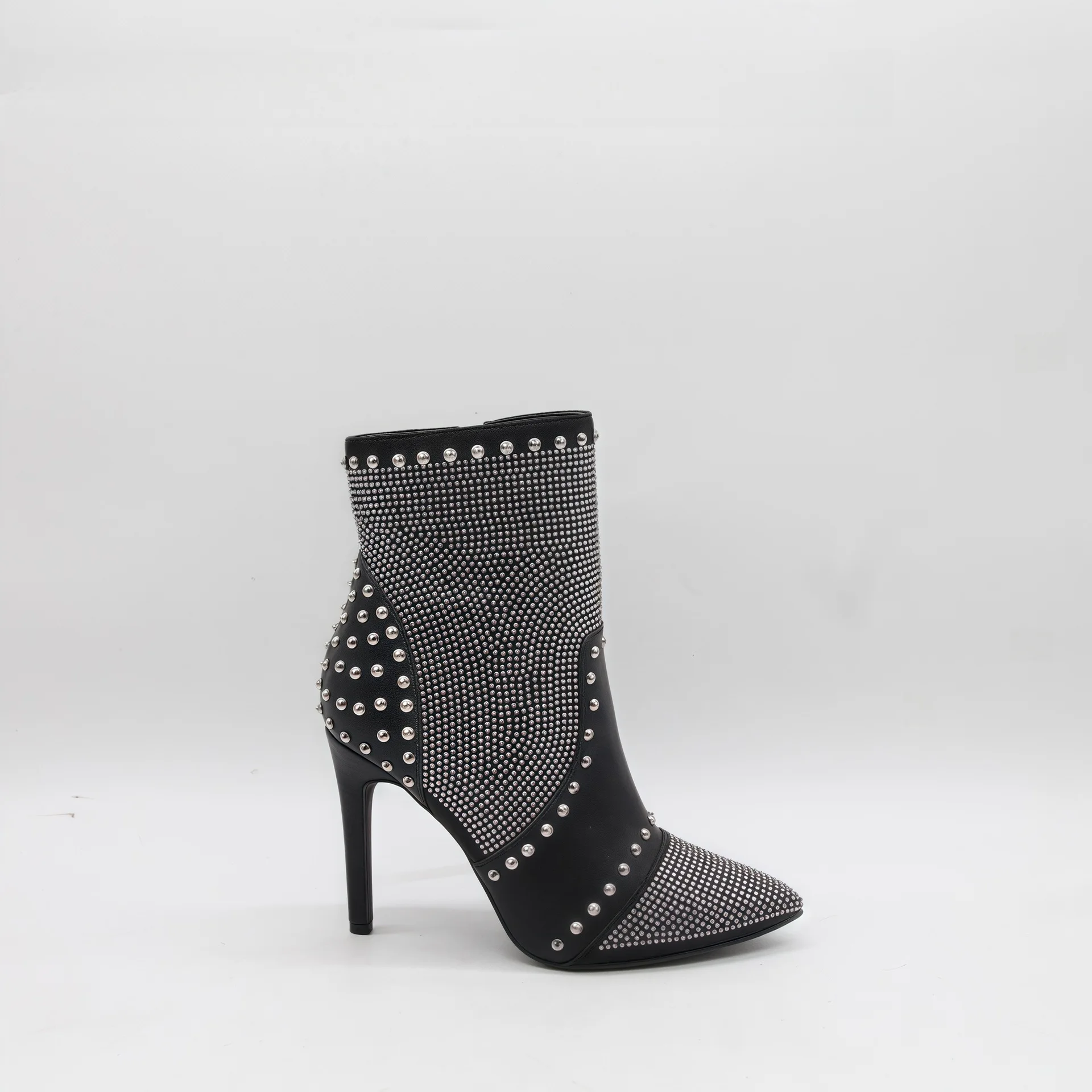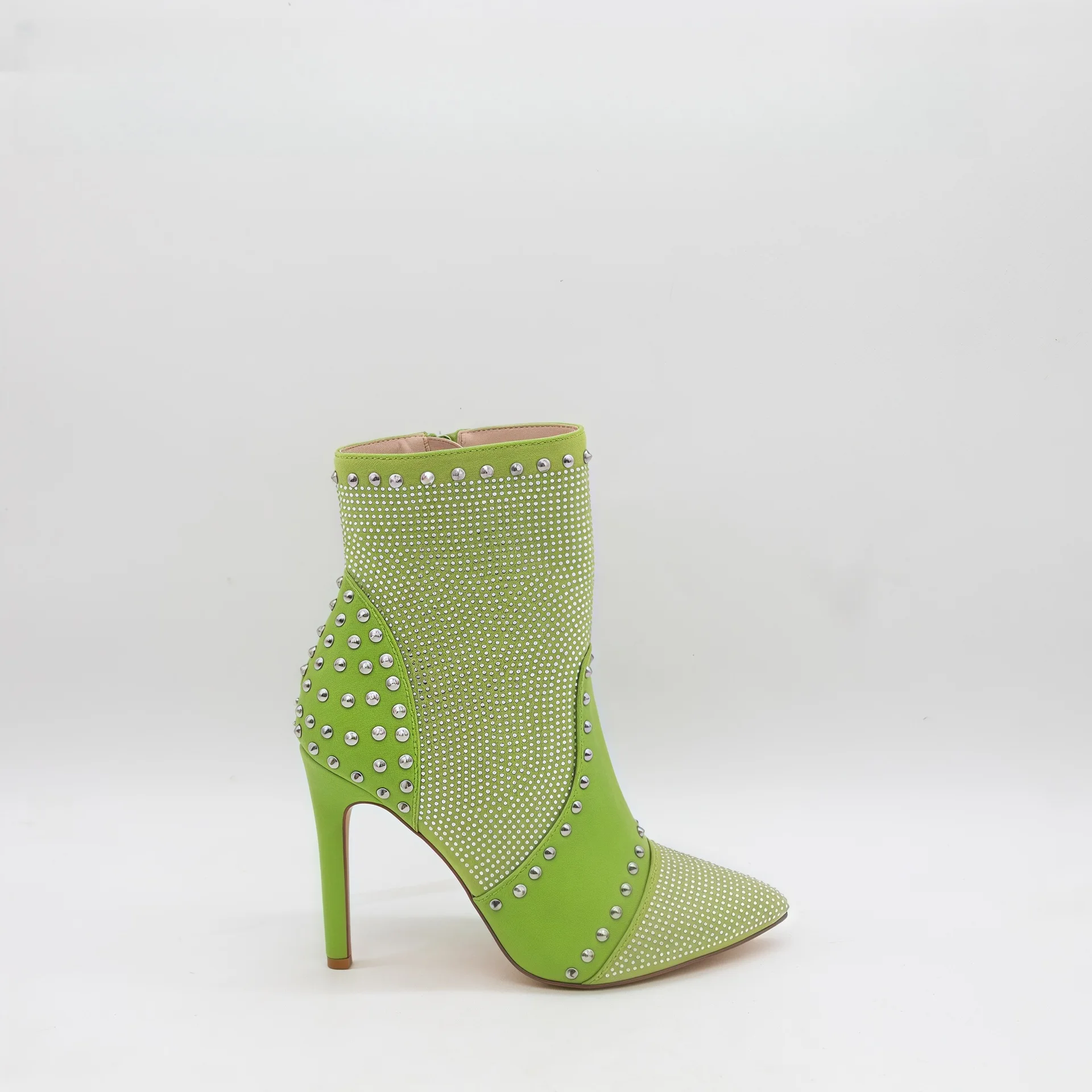 BUSY GIRL HQ1124 High-heeled Pointed-toe Ankle Boots French-style Ankle Boots 2026 Green Full Rhinestone Korean Style Boots 2026