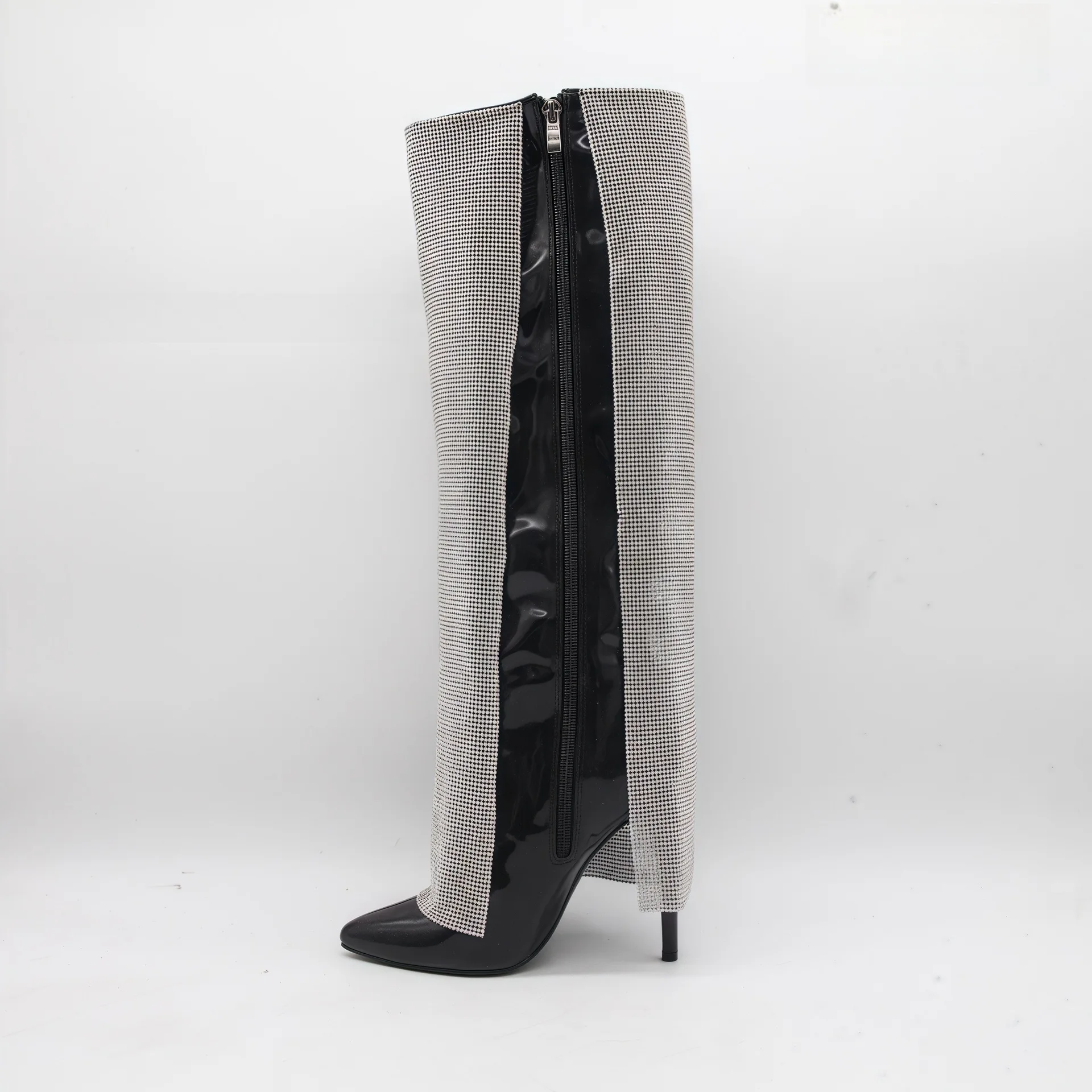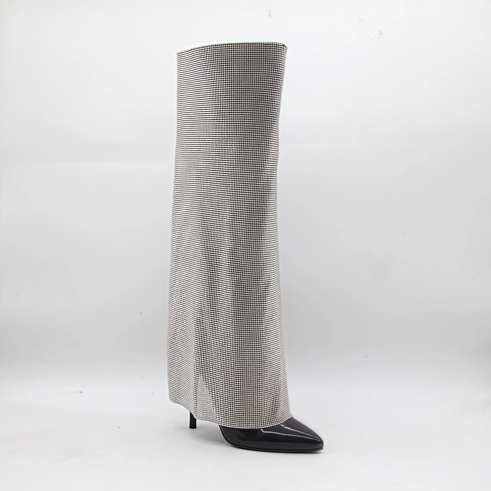 BUSY GIRL HQ1131 Sexy and Stylish Pants-Leg Boots Fully Rhinestone Pointed Toe Stiletto Heel High-Top Fashion Boots for Women