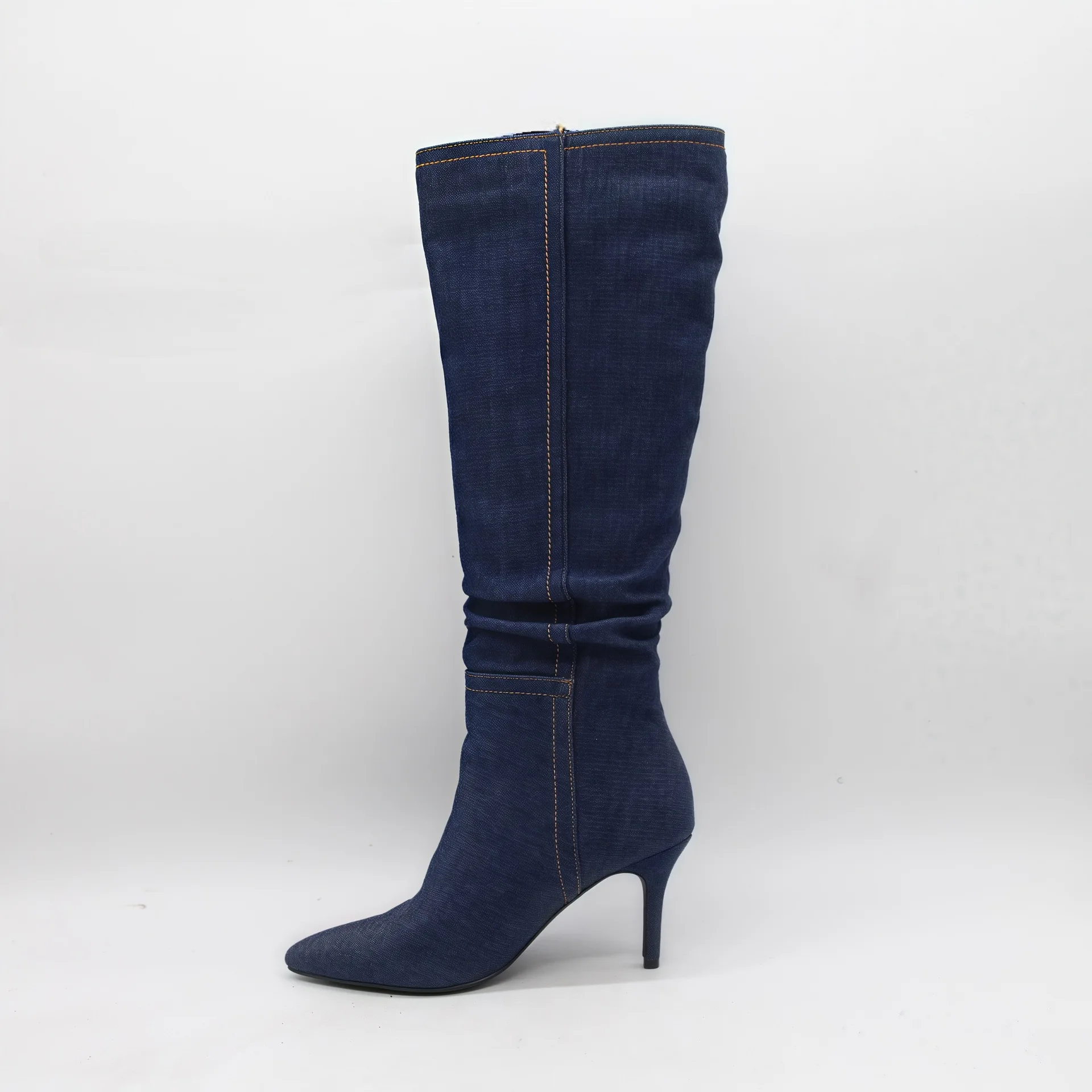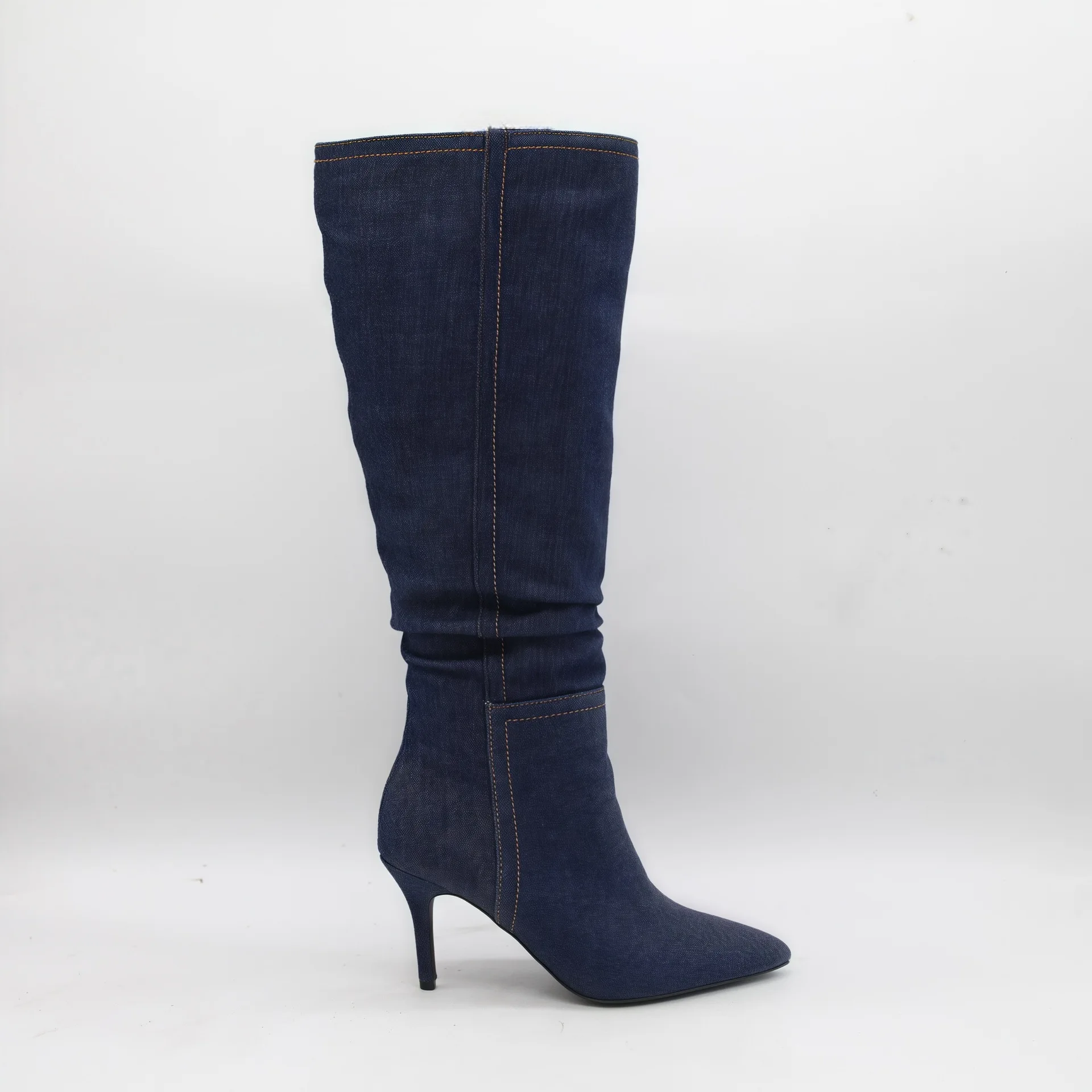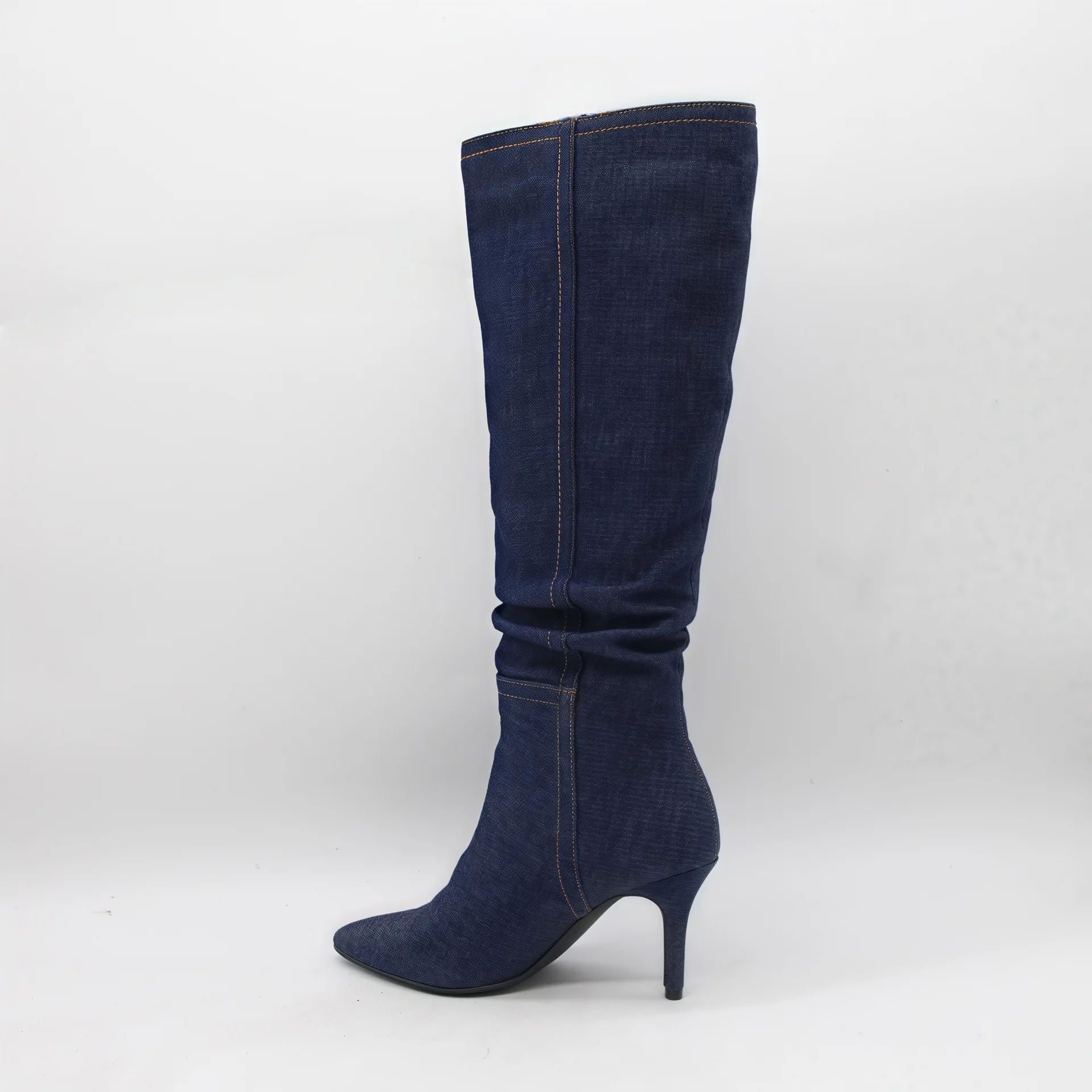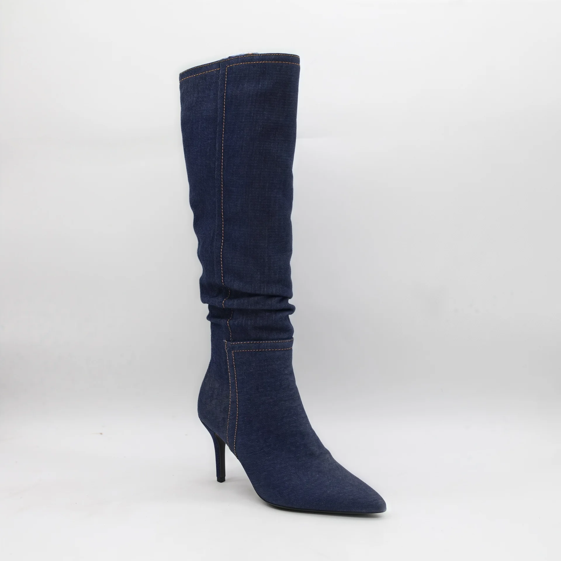 BUSY GIRL HQ1140 Boots Custom Logo High Heels Boots Women's Dark Denim Minimalist Stiletto Heel Pointed Toe Knee High Boots