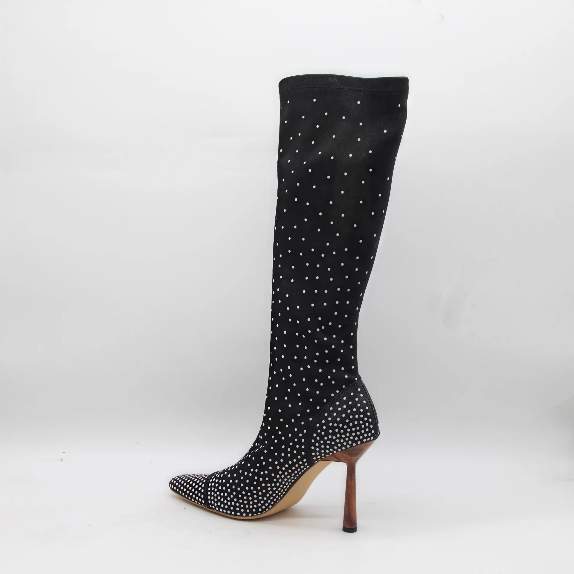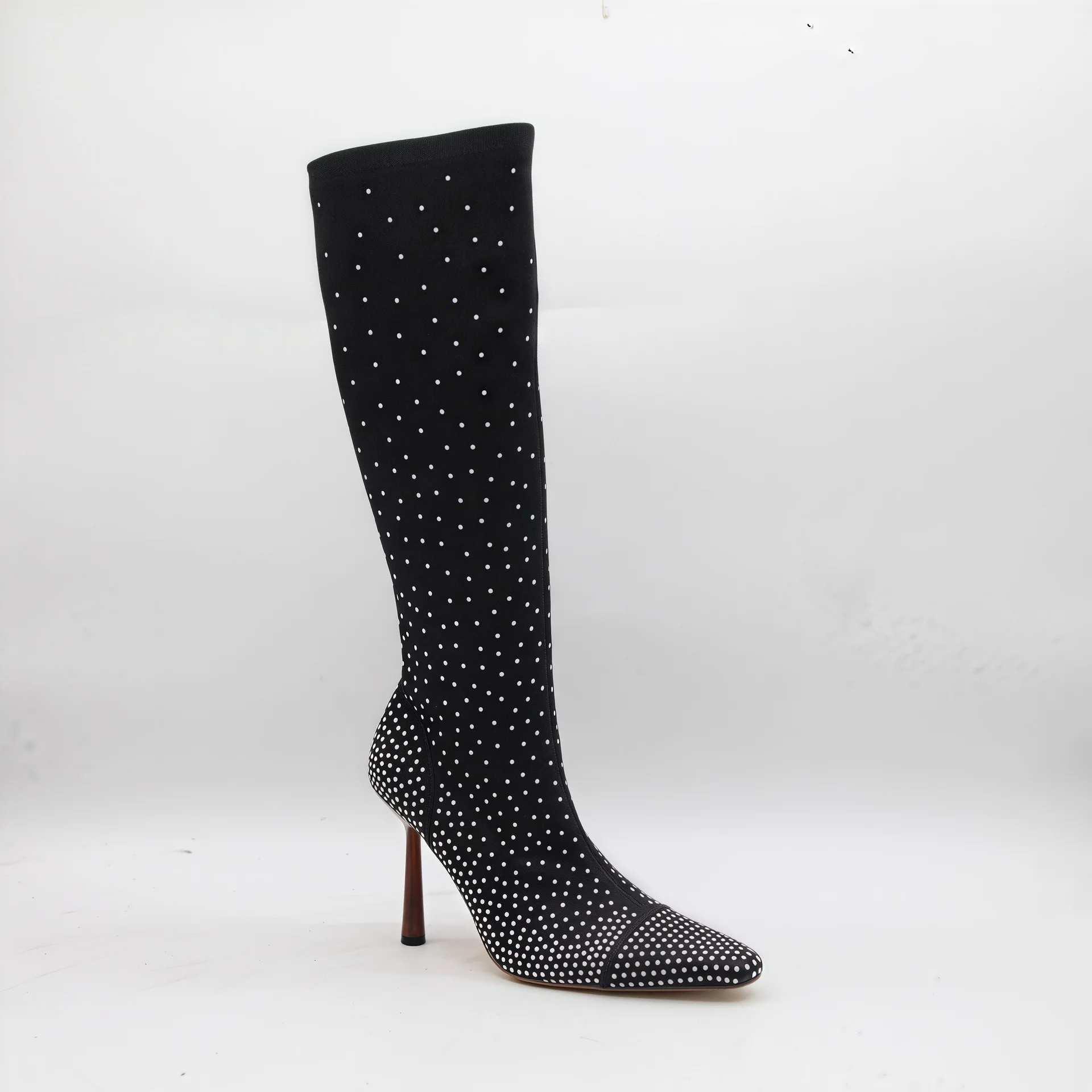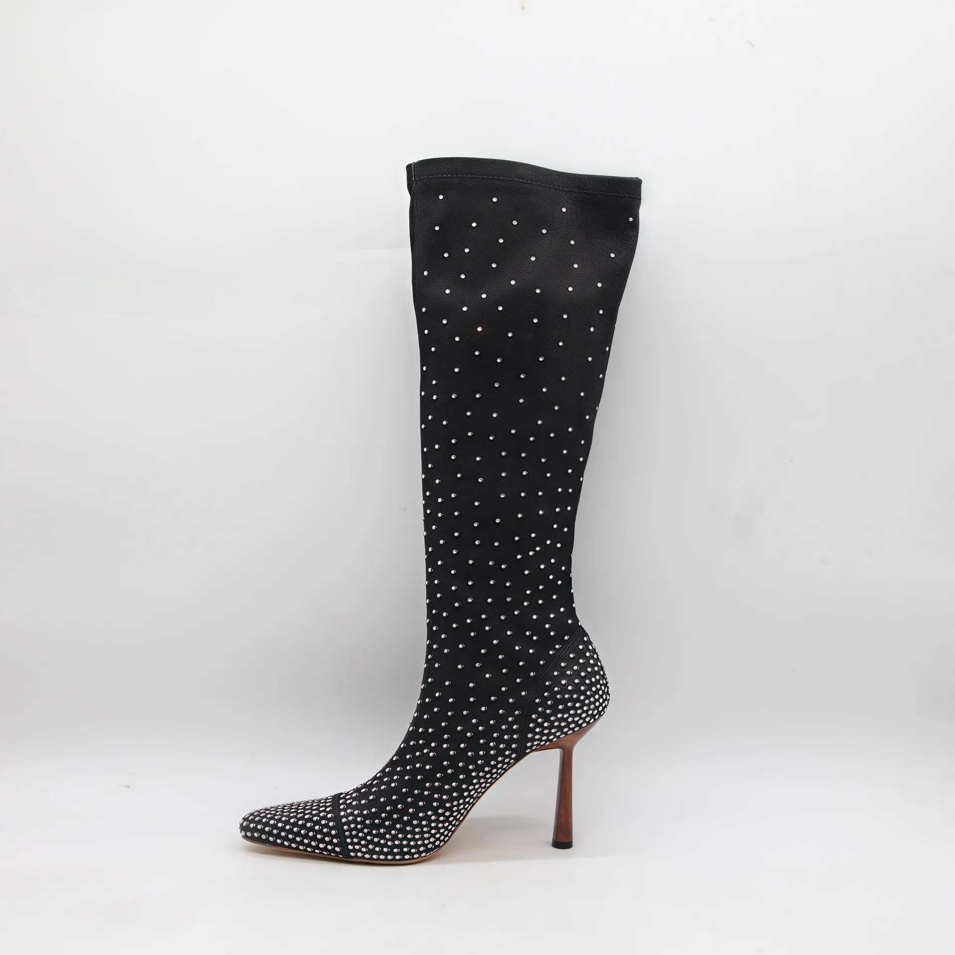 BUSY GIRL HQ1141 Women's High Heels Boots Women's Black Rhinestone Embellished Stiletto Heel Pointed Toe Sparkly Knee High Boots