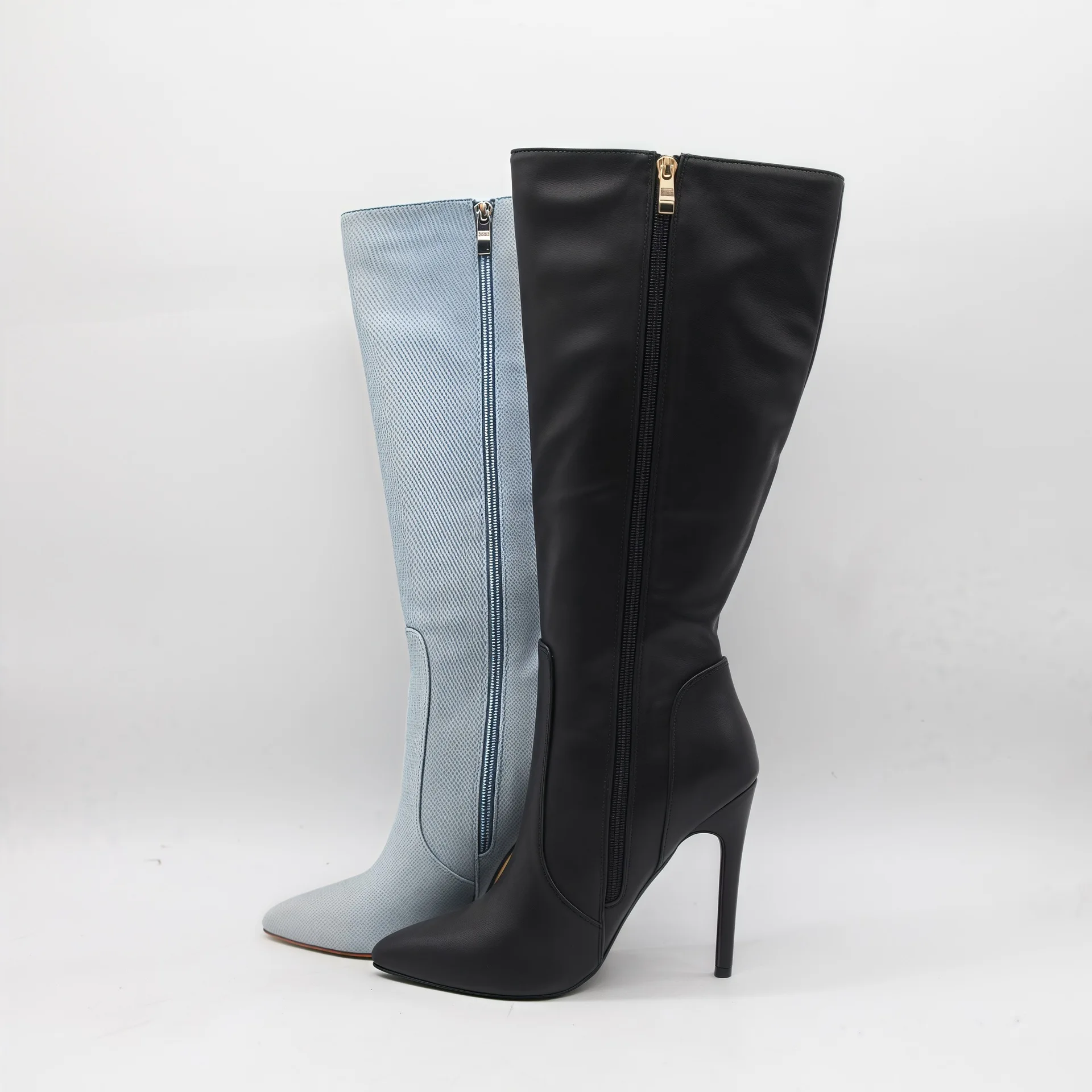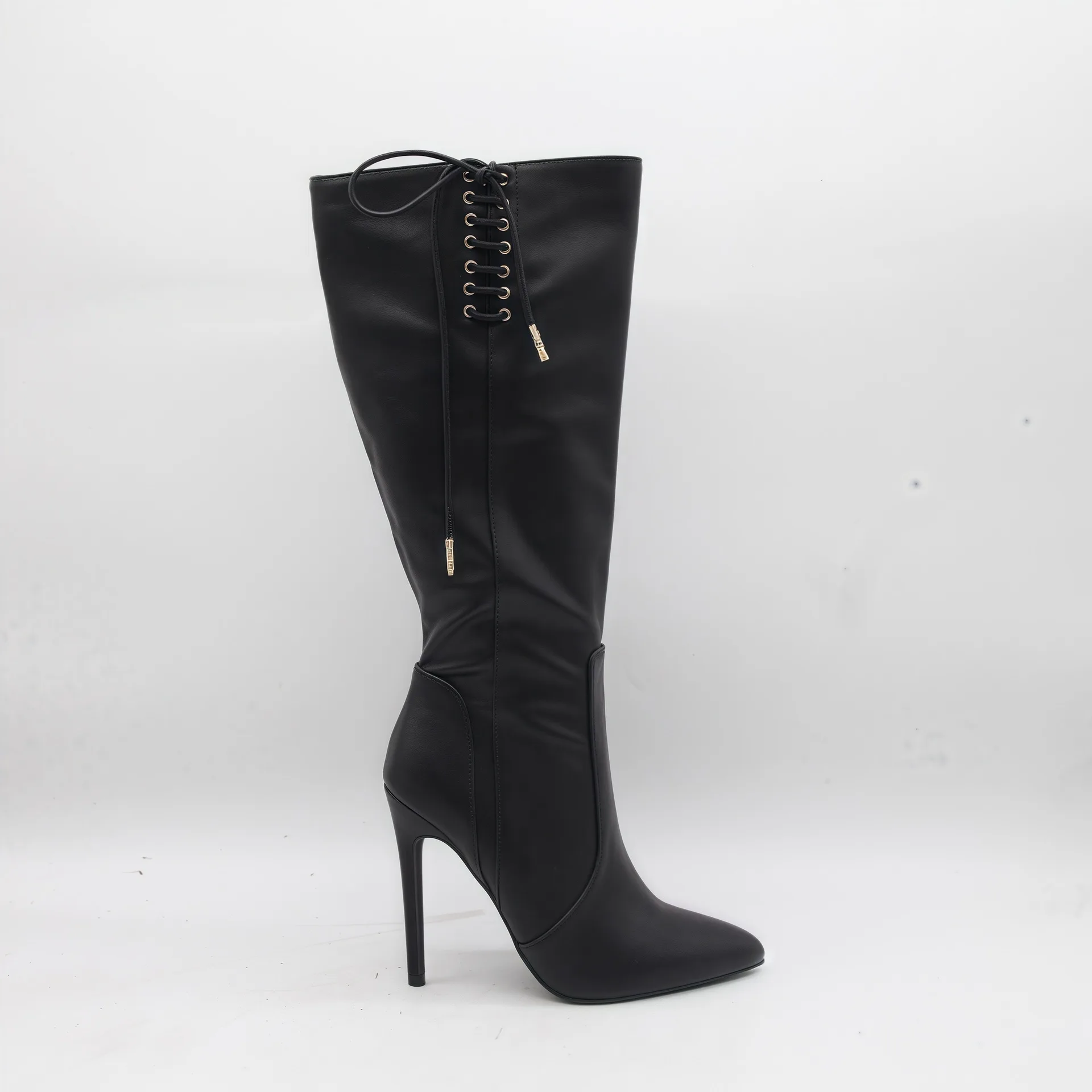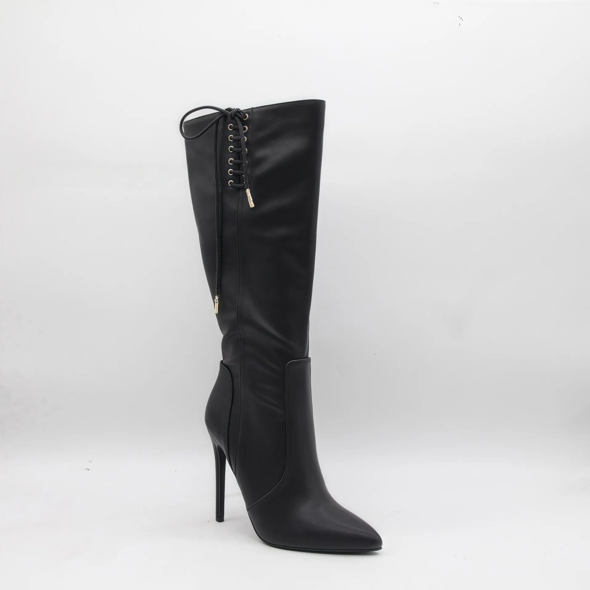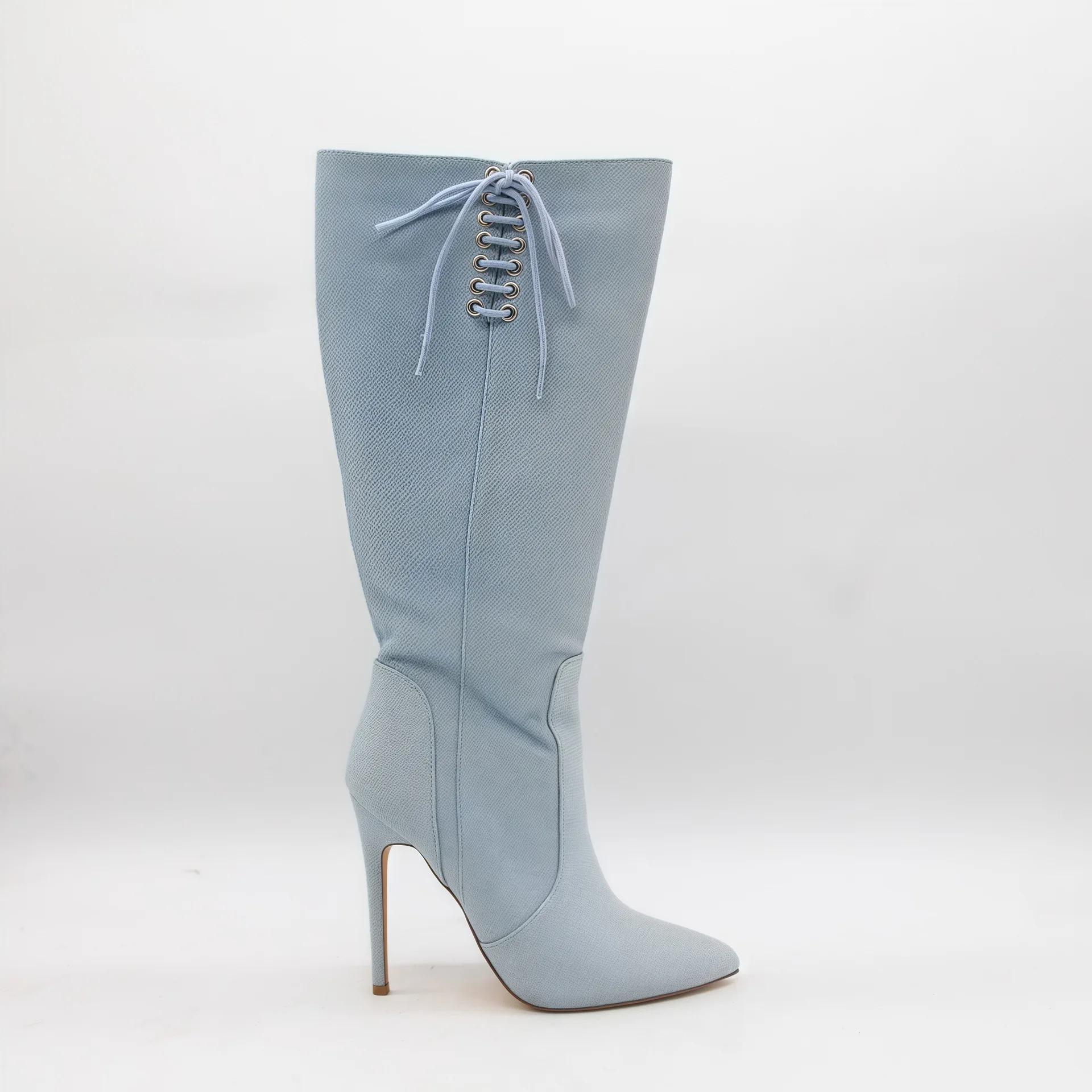 BUSY GIRL HQ1139 Women Boots Custom Logo Blue Women's Black Sexy Lace-up Stiletto Heel Pointed Toe Knee High Boots 2026