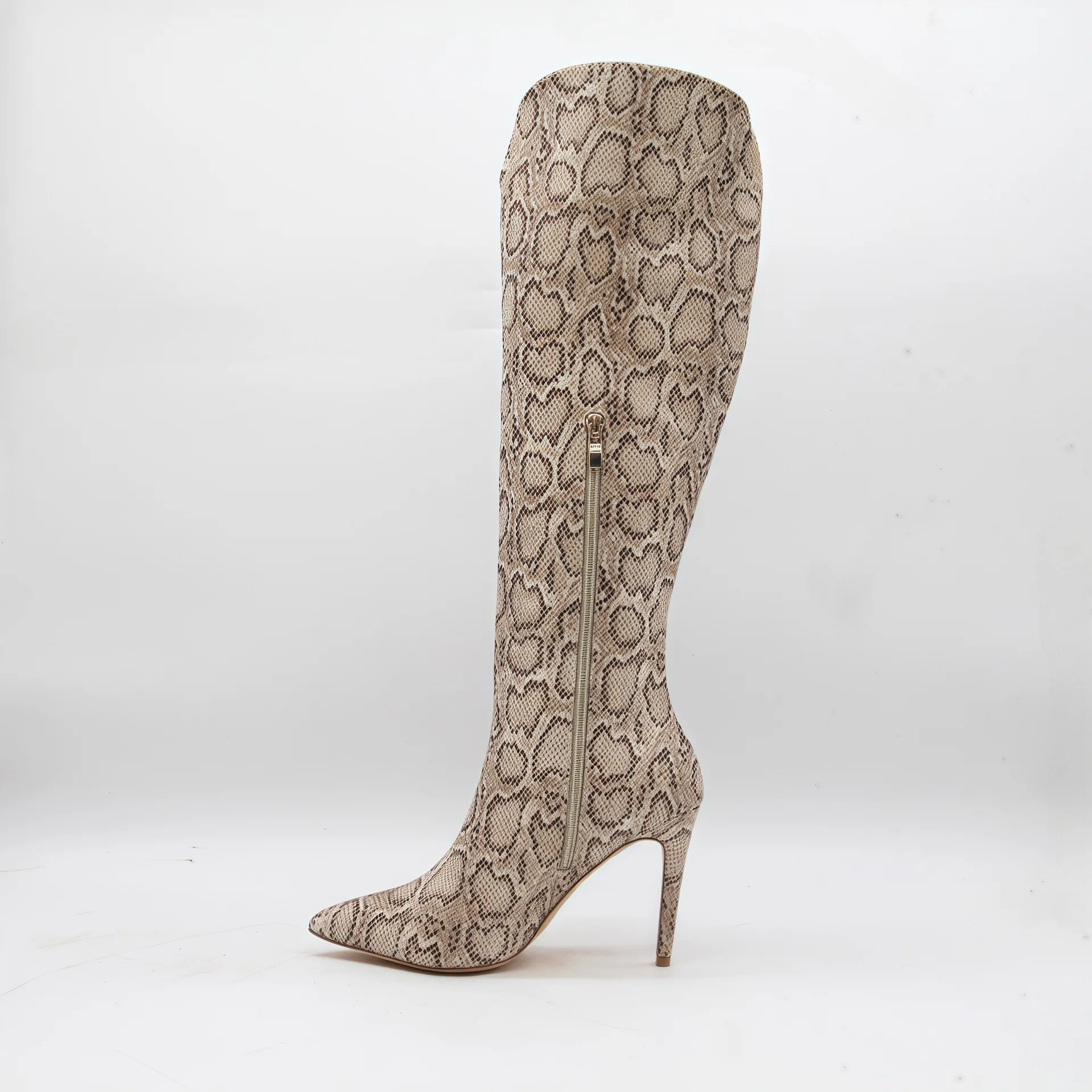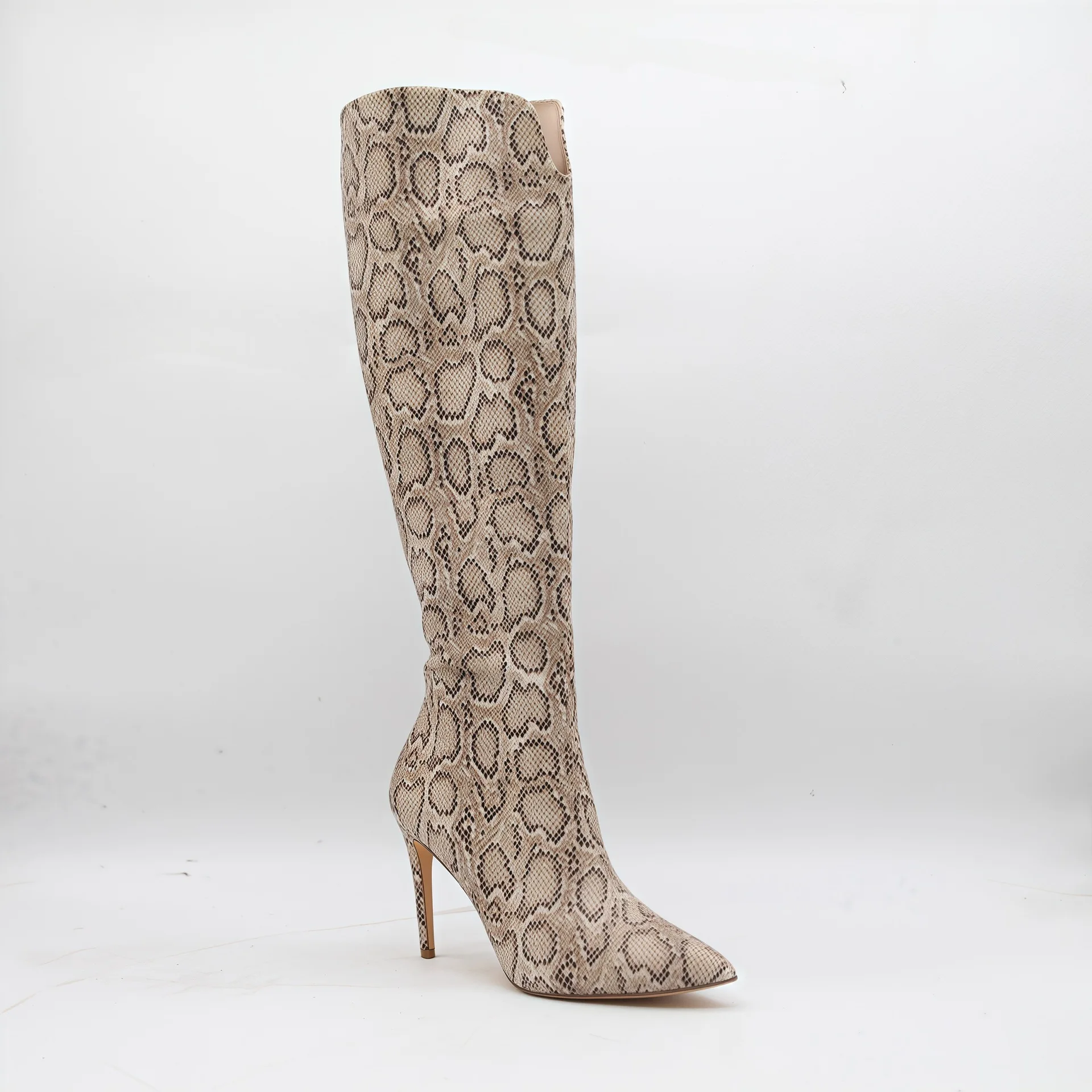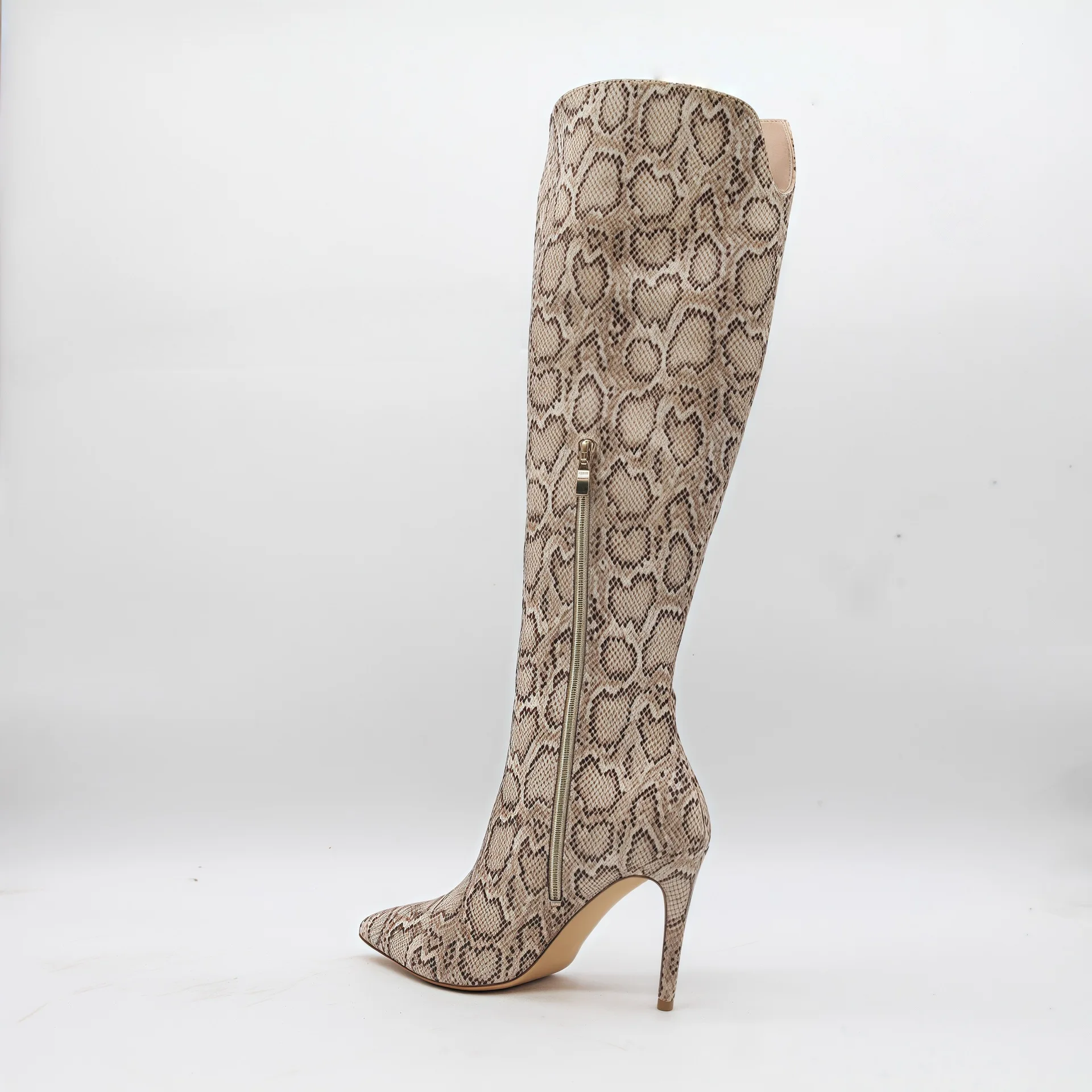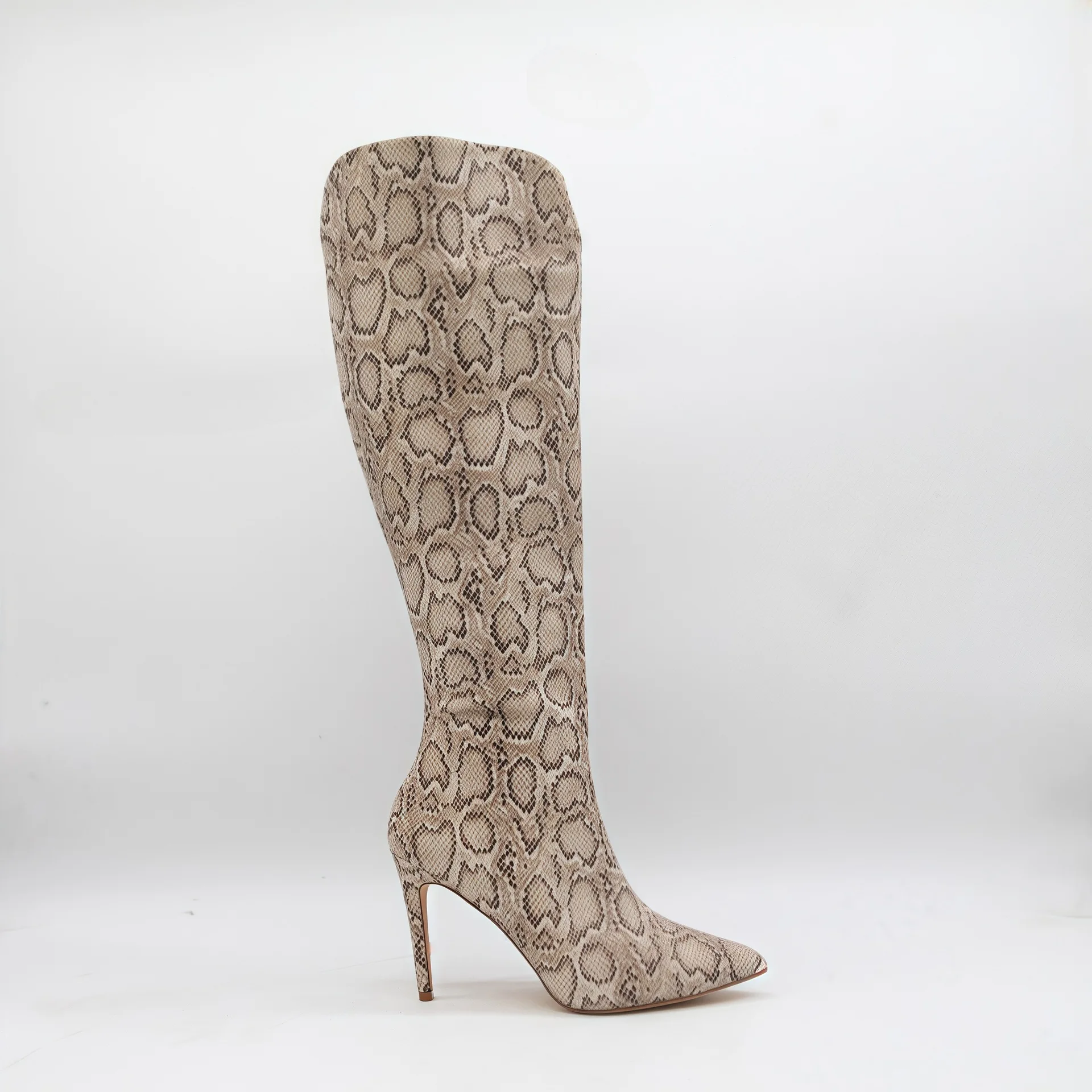 BUSY GIRL HQ1142 Wholesale Snake-print Sexy Stiletto Heel Women Boots Pointed Toe & Side Zipper High-top Knee High Women's Boots